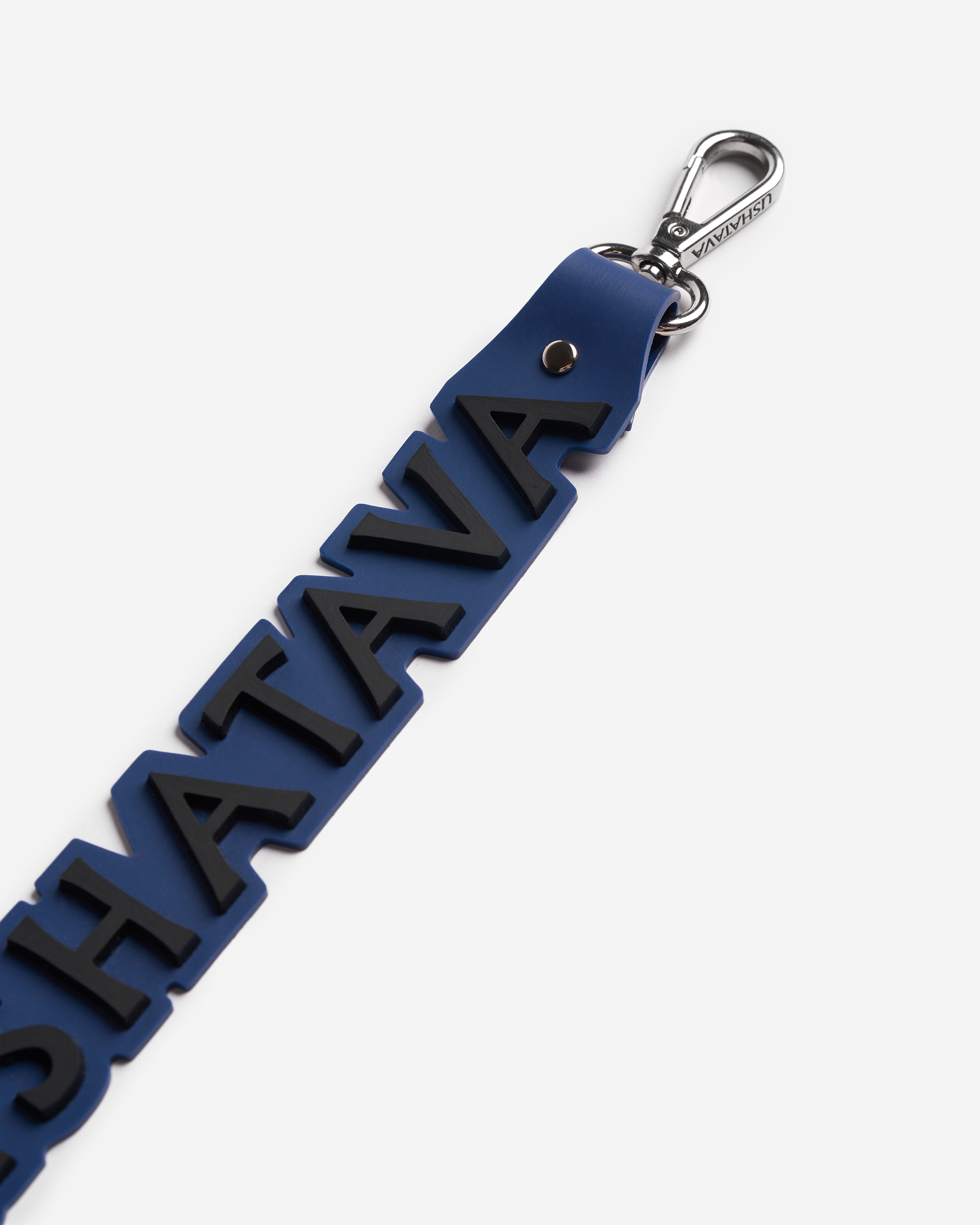 The current spelling of the fashion house's name is inspired by the very first Ushatava logo pulled from the archive. “It has a tinge of nostalgia, and at the same time it embodies our desire for the new,” says Nino Shamatava, the brand's creative director. A lobster clasp allows you to attach the silicone keychain to your keys, bag, or a jeans belt loop. It is light, durable, and pliable.
