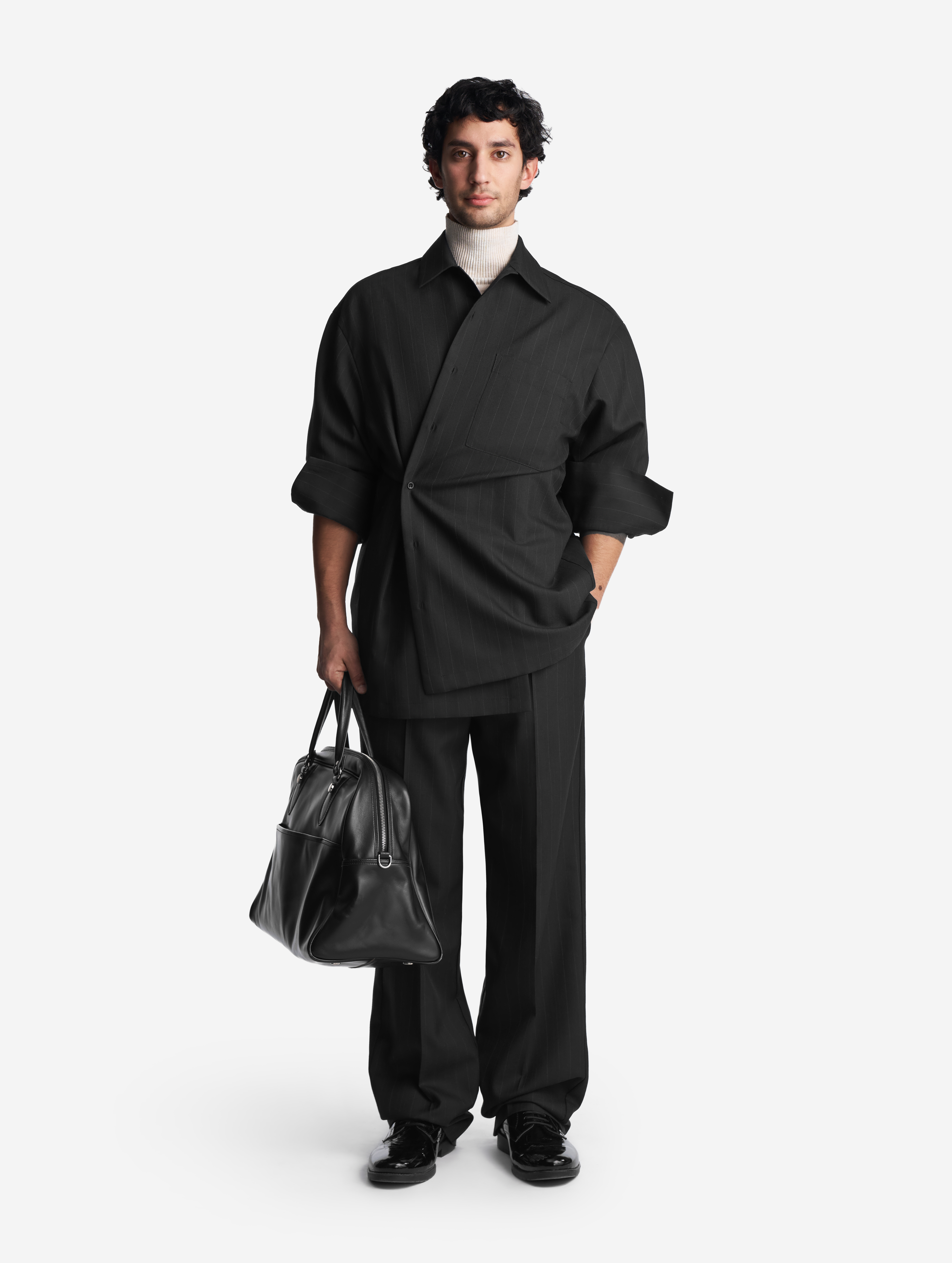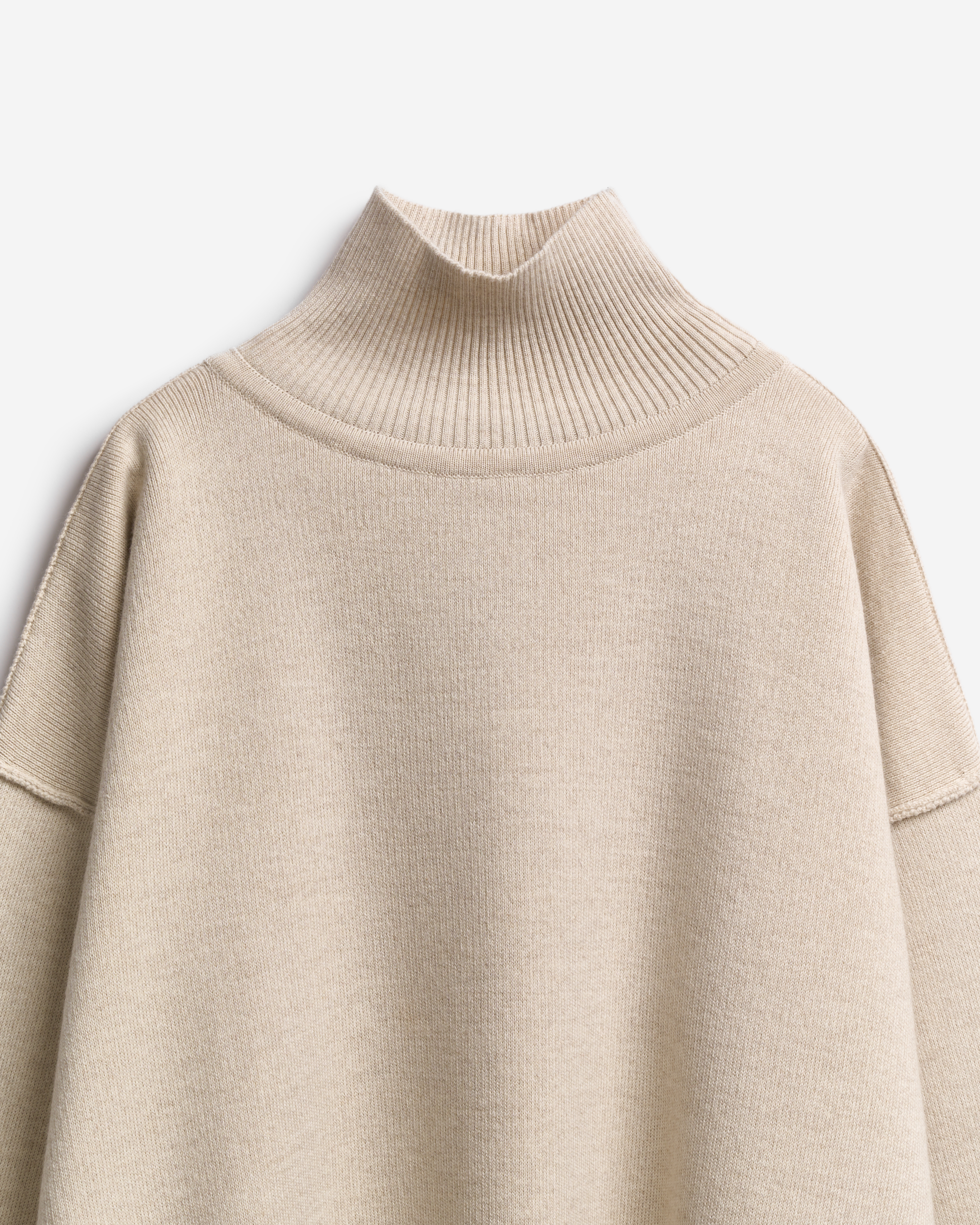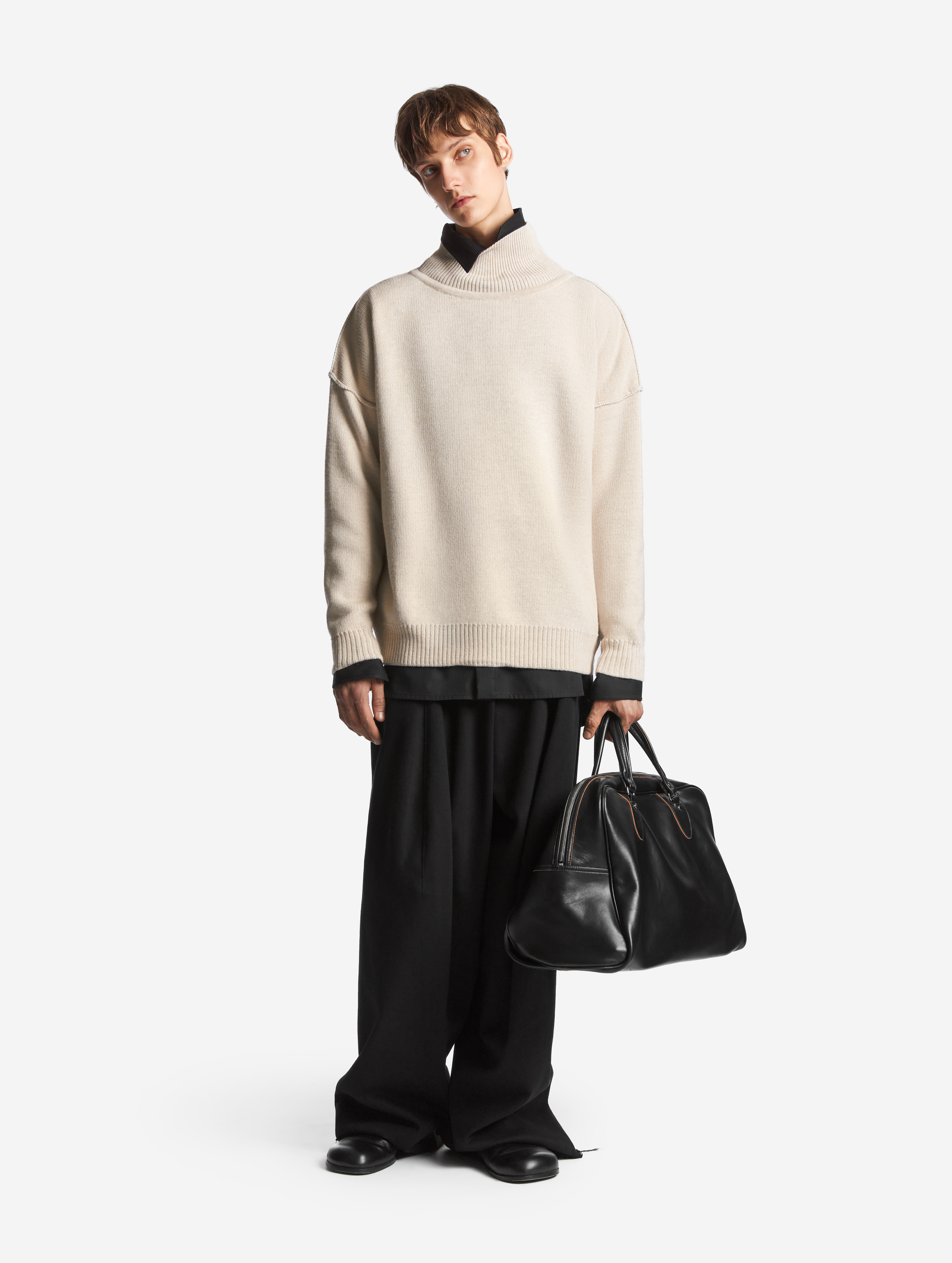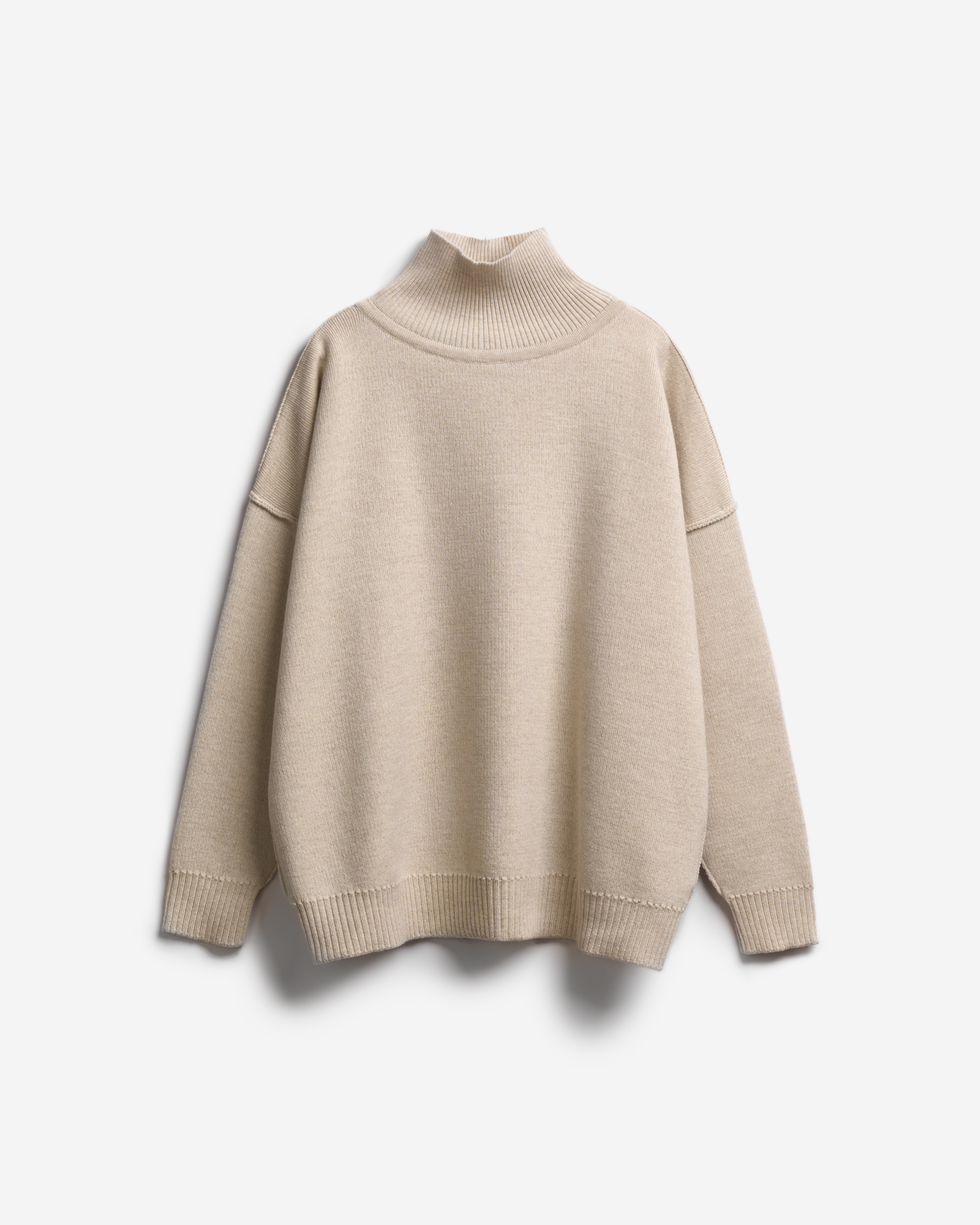 The name of the sweater speaks for itself. This item is made from a blend of merino wool and acrylic yarn, which makes it warm and easy to care for. The model has a comfortable neckline, low armholes with accent seams, and an optimal length. The Small size makes it easy to wear the sweater under a jacket or tuck it into trousers, while the Tall size turns it into a cozy oversized piece. In both cases, you can elegantly hide your hair inside the high collar.