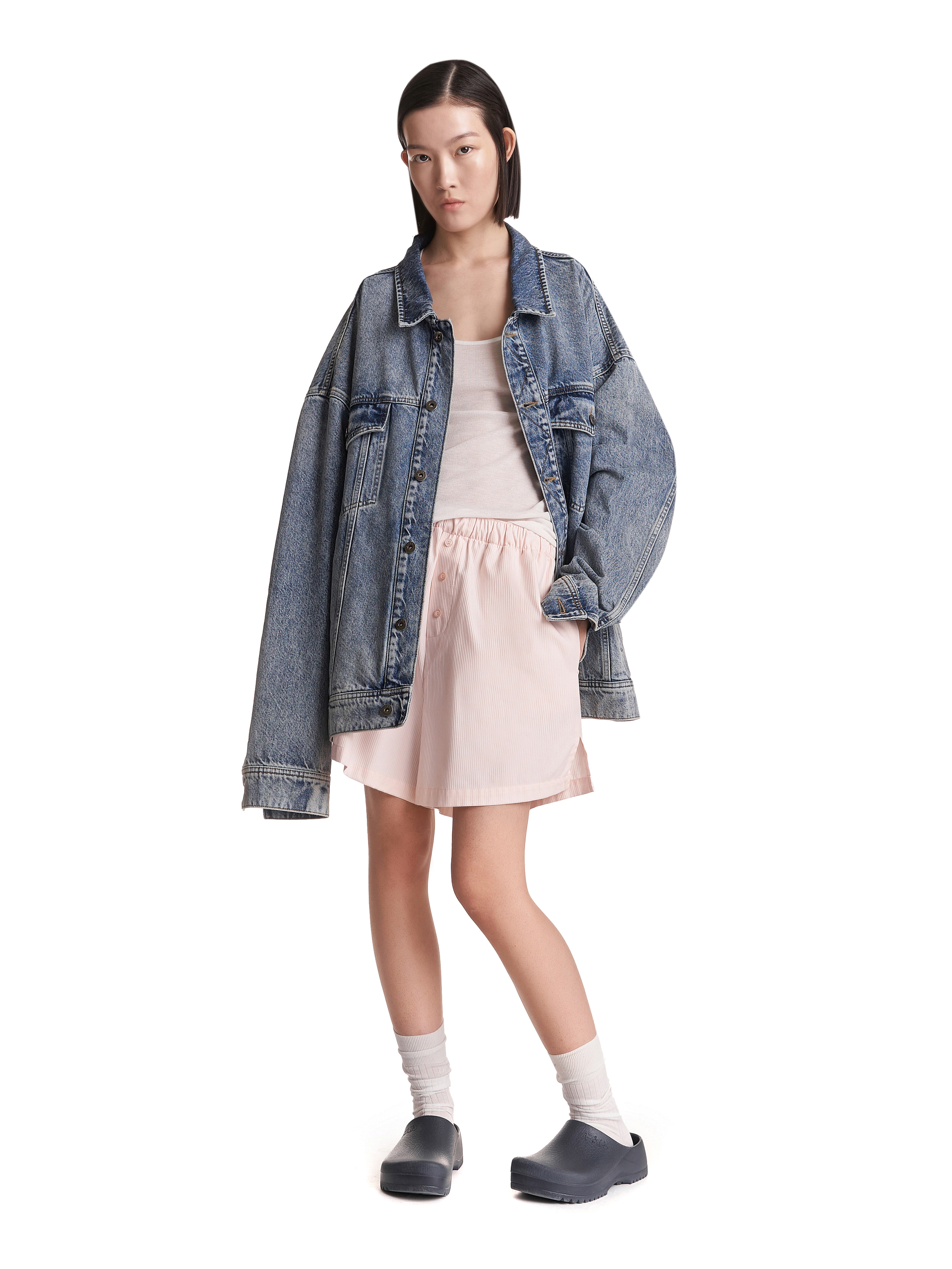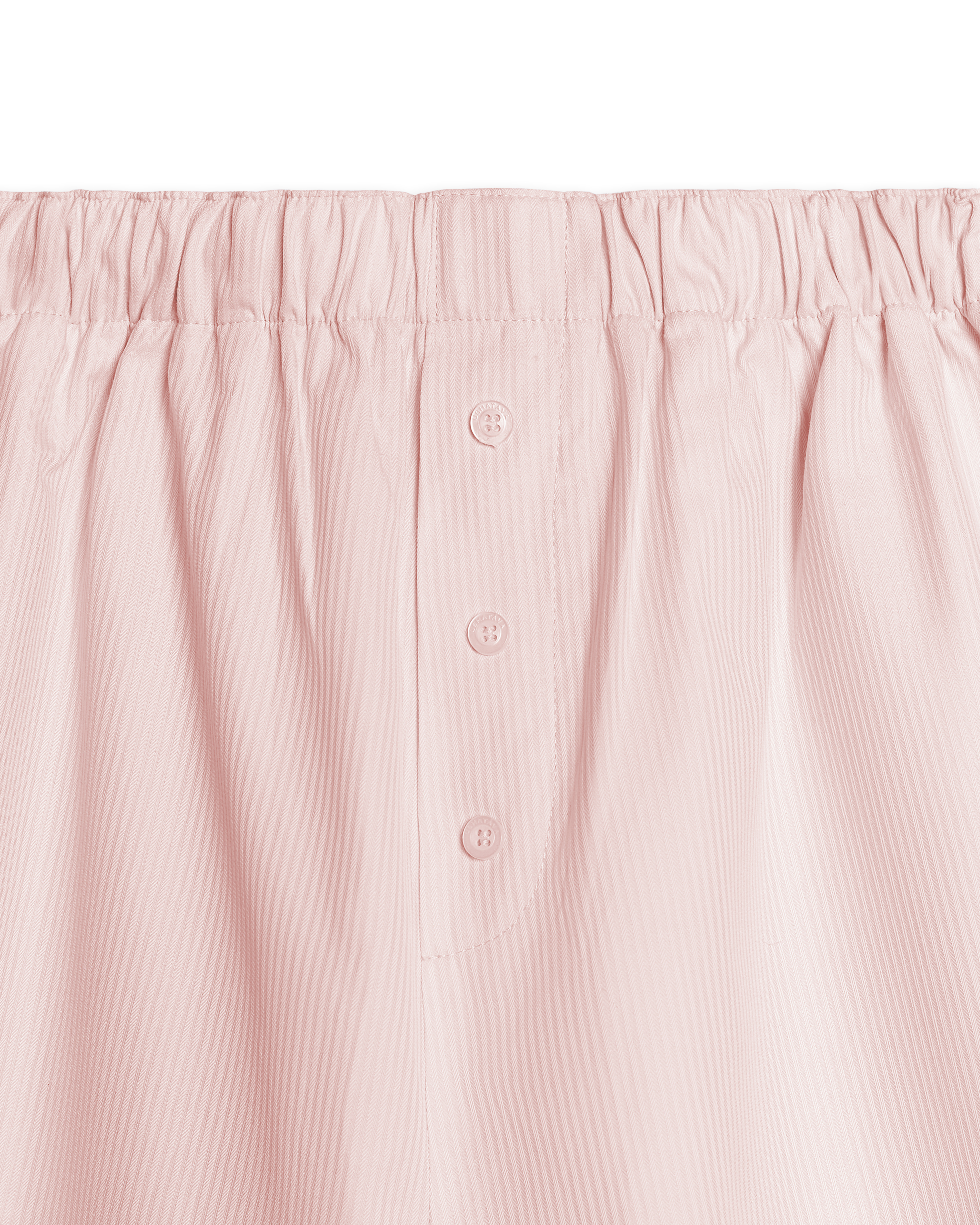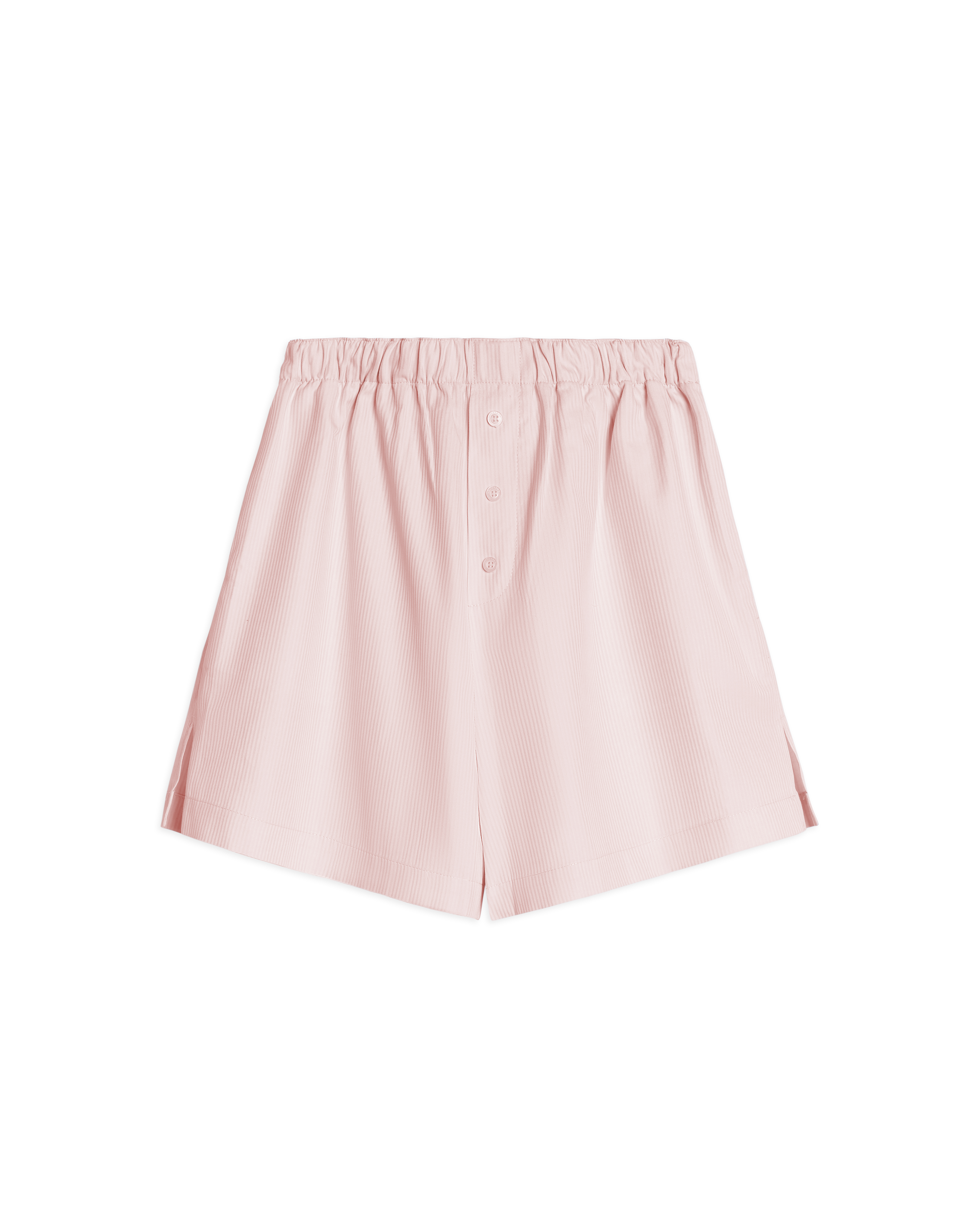 This is an Ushatava bestseller. We conceived of these loose-fit shorts on a soft elastic band as agender — they are suitable for both women and men. The piece is made of shape-stable, non-translucent cotton. The imitation of a blind fly with decorative buttons references classic men's boxers. There are two pockets and small slits with overlapping stitching on the sides.