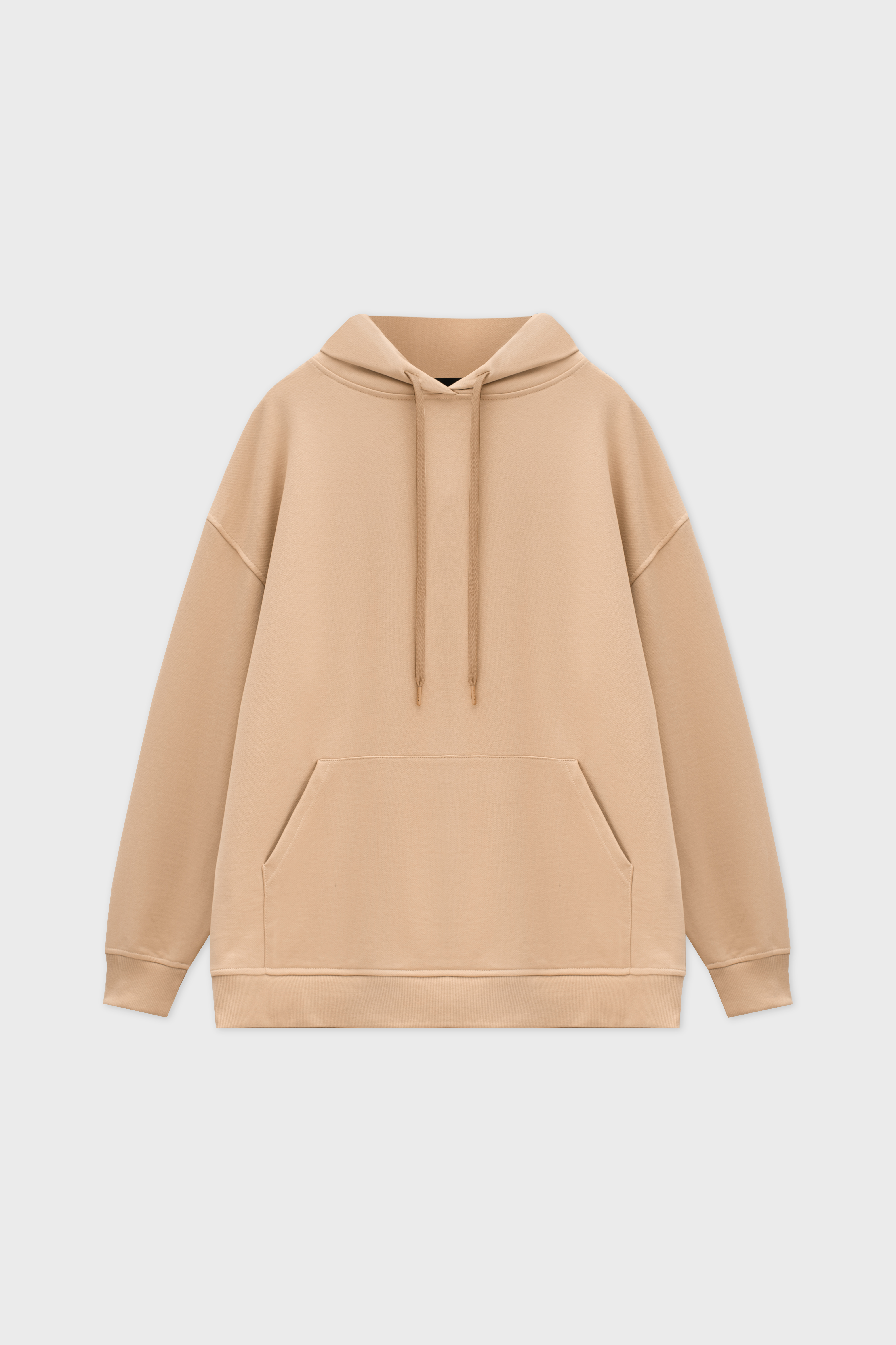 An oversized hoodie with a universal fit. The hem is finished with a wide elastic that keeps the voluminous silhouette in place. Details: elongated sleeves with elastic kashkorse cuffs, a kangaroo pocket, and a new hood design. Compared to the previous version, it is less bulky.