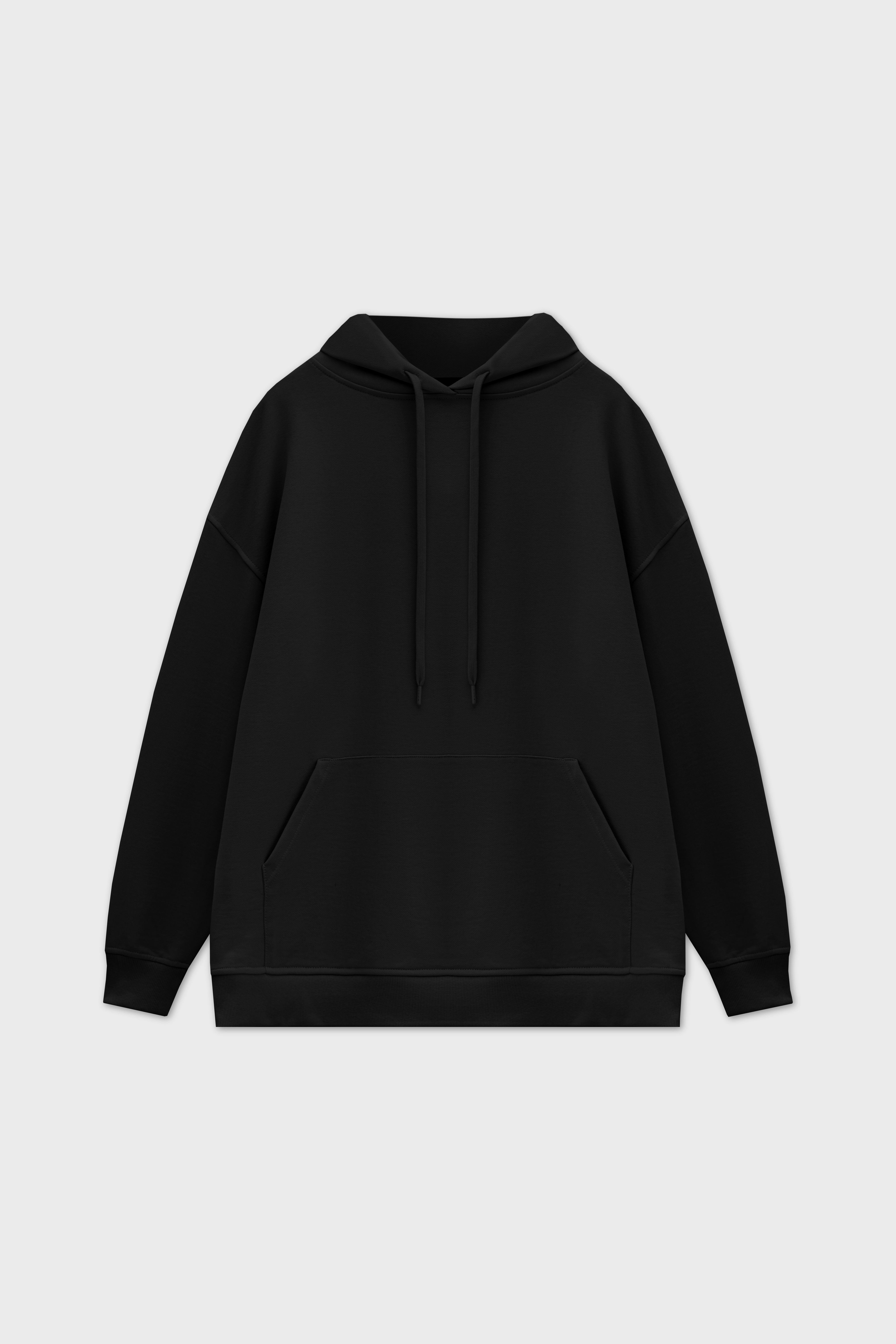This versatile oversize piece has a wide elastic waistband that keeps the voluminous silhouette in place. Details: elongated sleeves with elastic kashkorse cuffs, a kangaroo pocket, and a hood with a long drawstring.