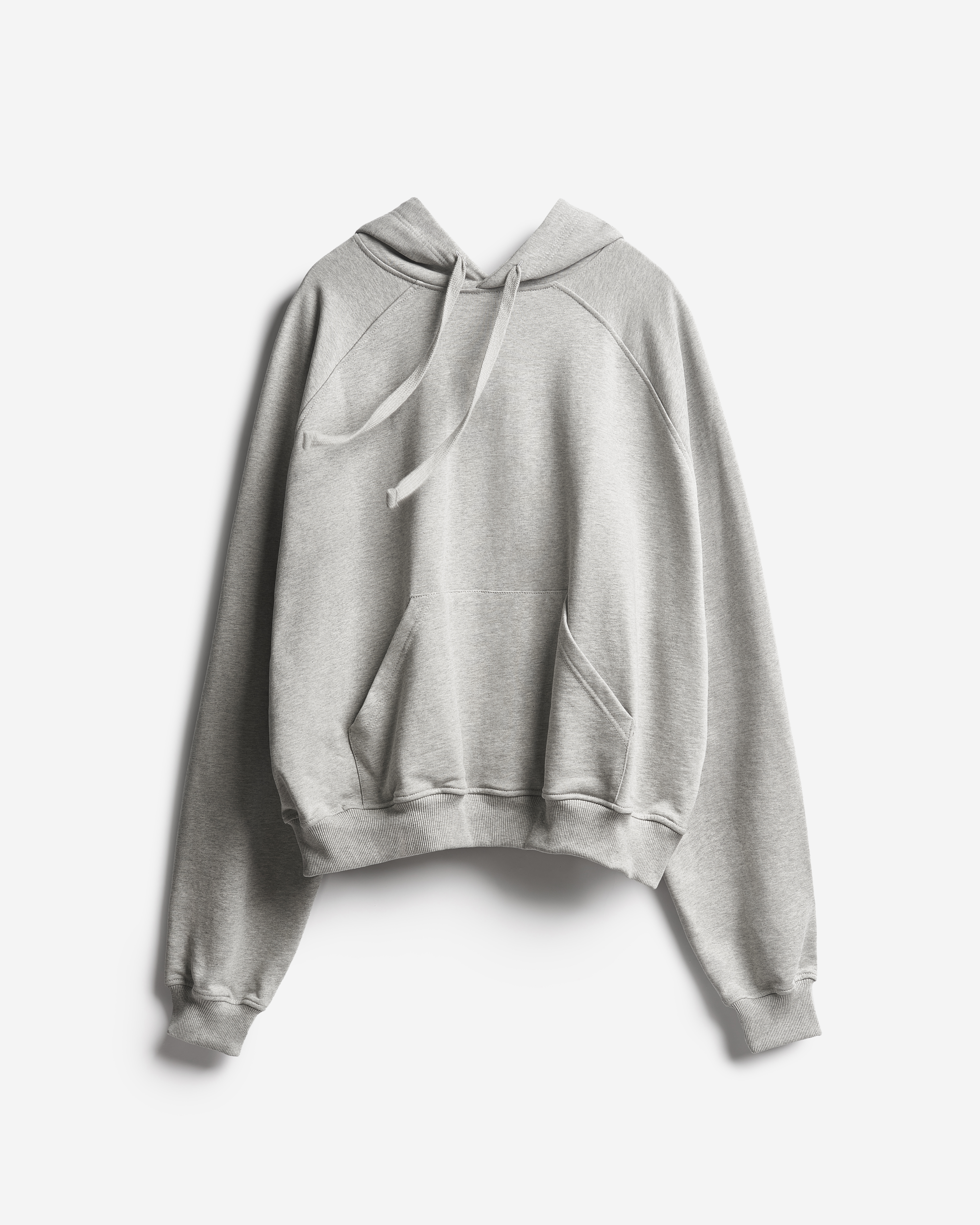 The oversized, moderate-length hoodie is made of dense, shape-retaining French terry. Its key feature is its exaggerated elongated sleeves. The model features a drawstring hood and a patch kangaroo pocket. The back is decorated with the signature Ushatava patch.
