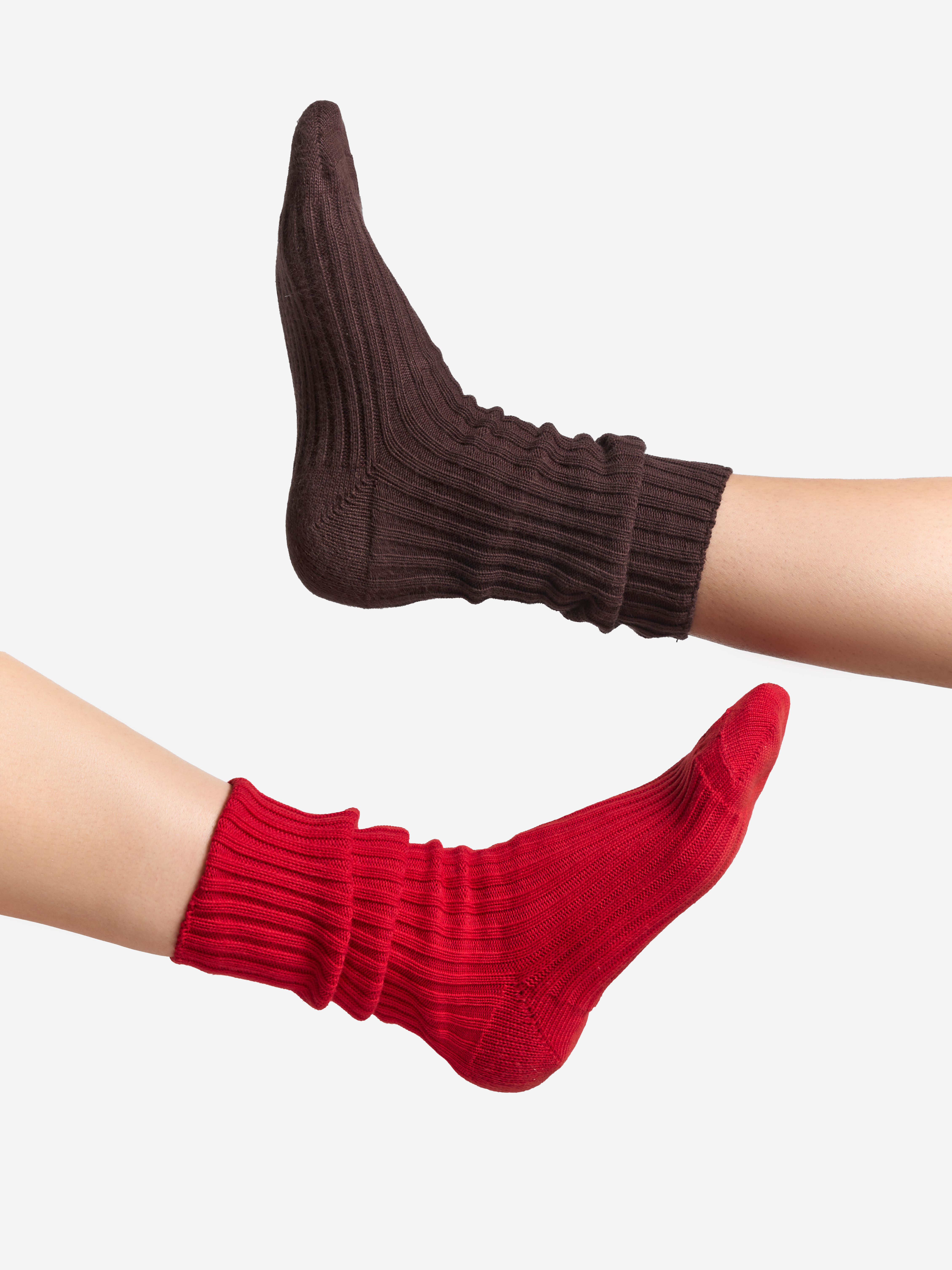 The key feature of these socks is a wide fold-over, the width of which can be adjusted. The toe and heel are reinforced for wear resistance. In addition to cotton, the yarn contains a small percentage of modal and polyamide, which make the thread strong and elastic simultaneously. We recommend wearing socks slouched with open sandals.