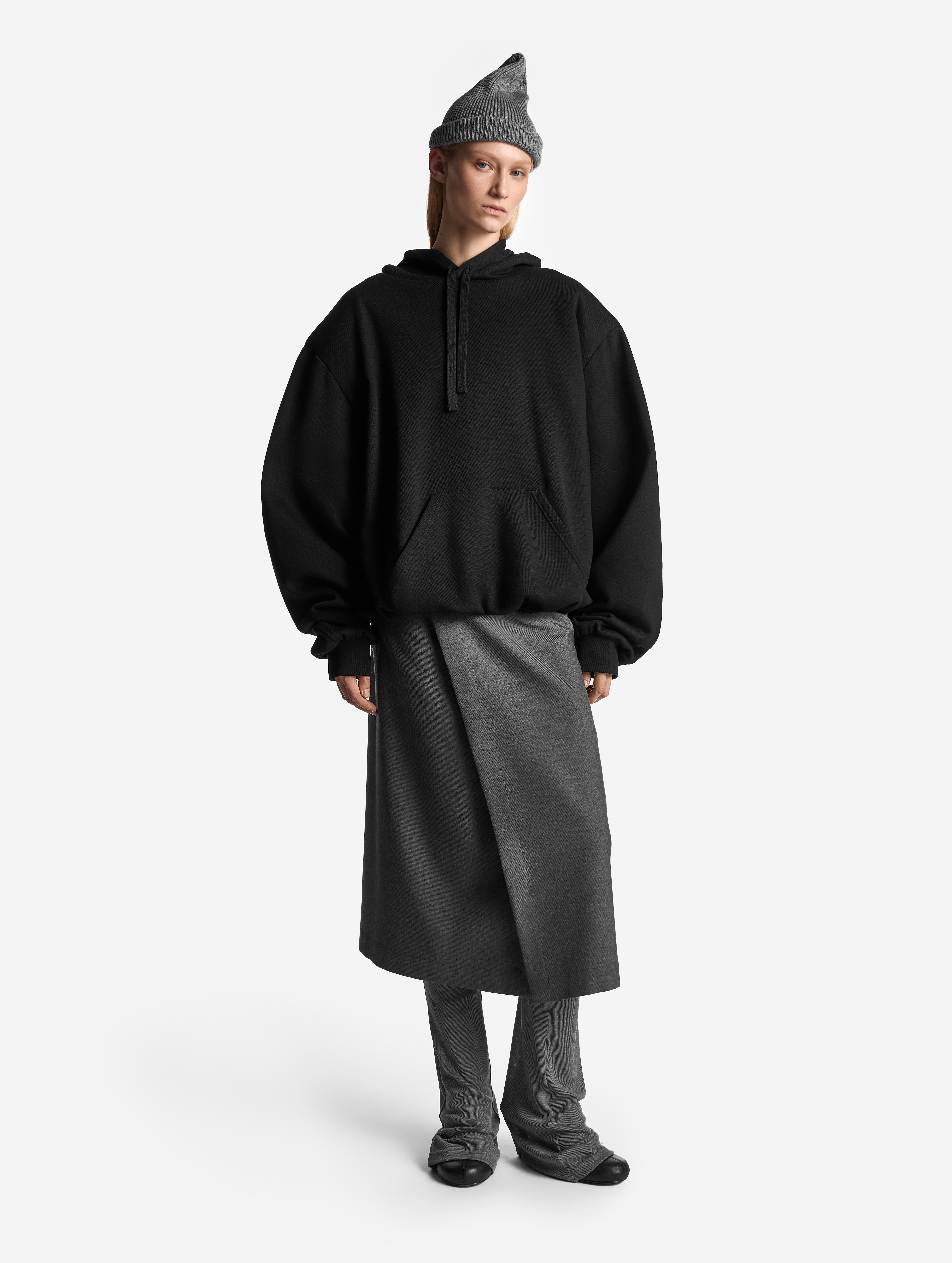 This is an Ushatava bestseller. The hat is made from mixed yarn (50% wool and 50% acrylic). Thanks to the composition, the garment is warm and easy to maintain, holds its shape well, and isn’t prone to static electricity. The hat's lapel is decorated with the Ushatava label.