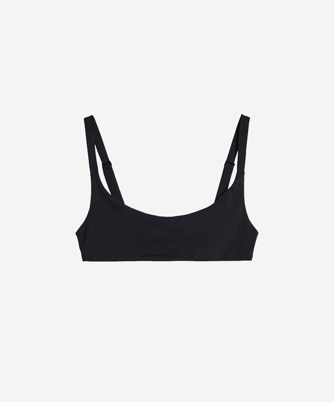 The swim top is in many ways similar to a sports bra. It has a minimalistic design: there are no fasteners or cups, and thin straps can be adjusted. The piece is made of biflex fabric, which does not fade in the sun or deform from frequent contact with chlorinated water. The top can be paired with the Ushatava swim bottom made of the same material.