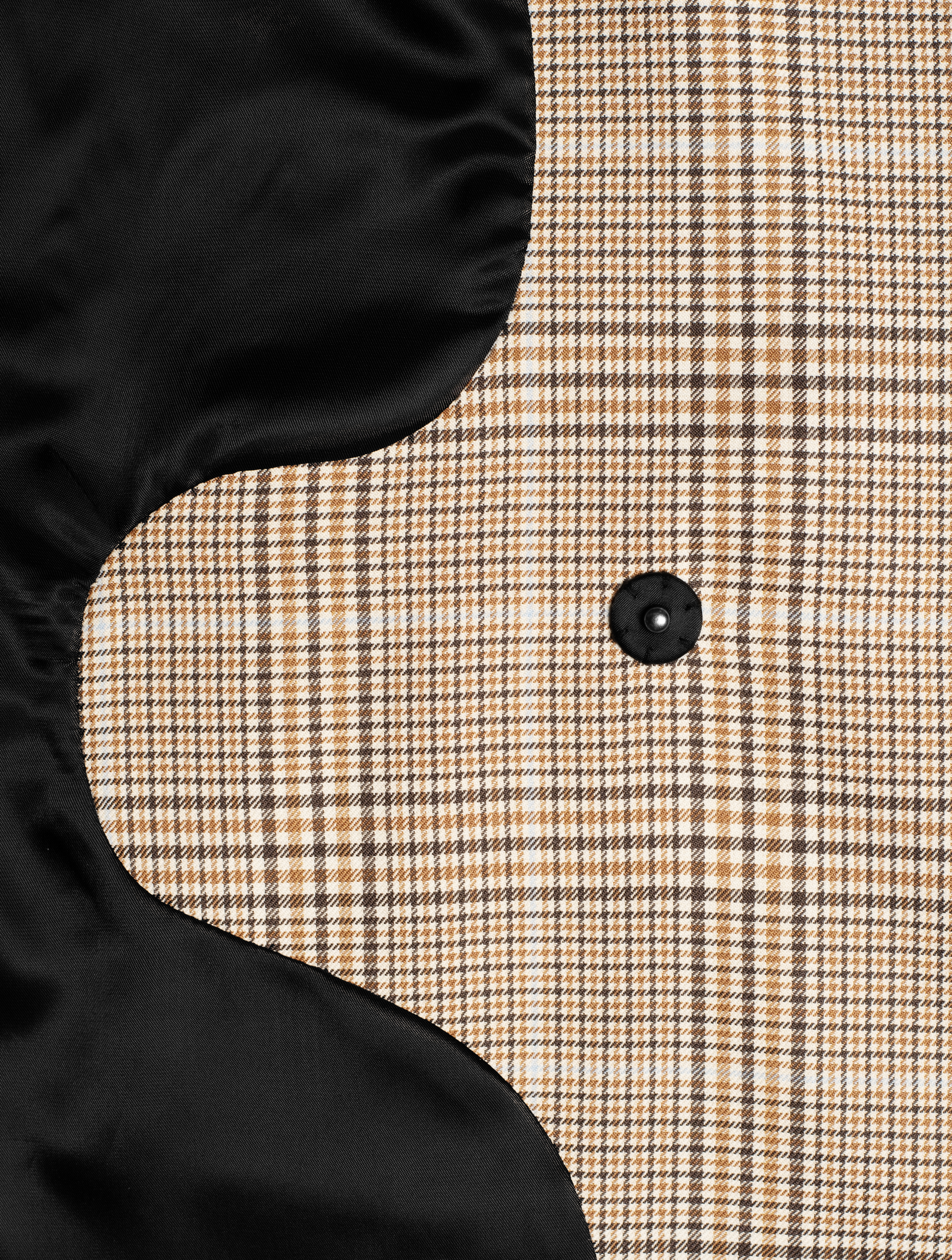 Small: length —75,5 cm, chest —114,5 cm, hips — 115 cm, sleeve length — 87,7 cm.