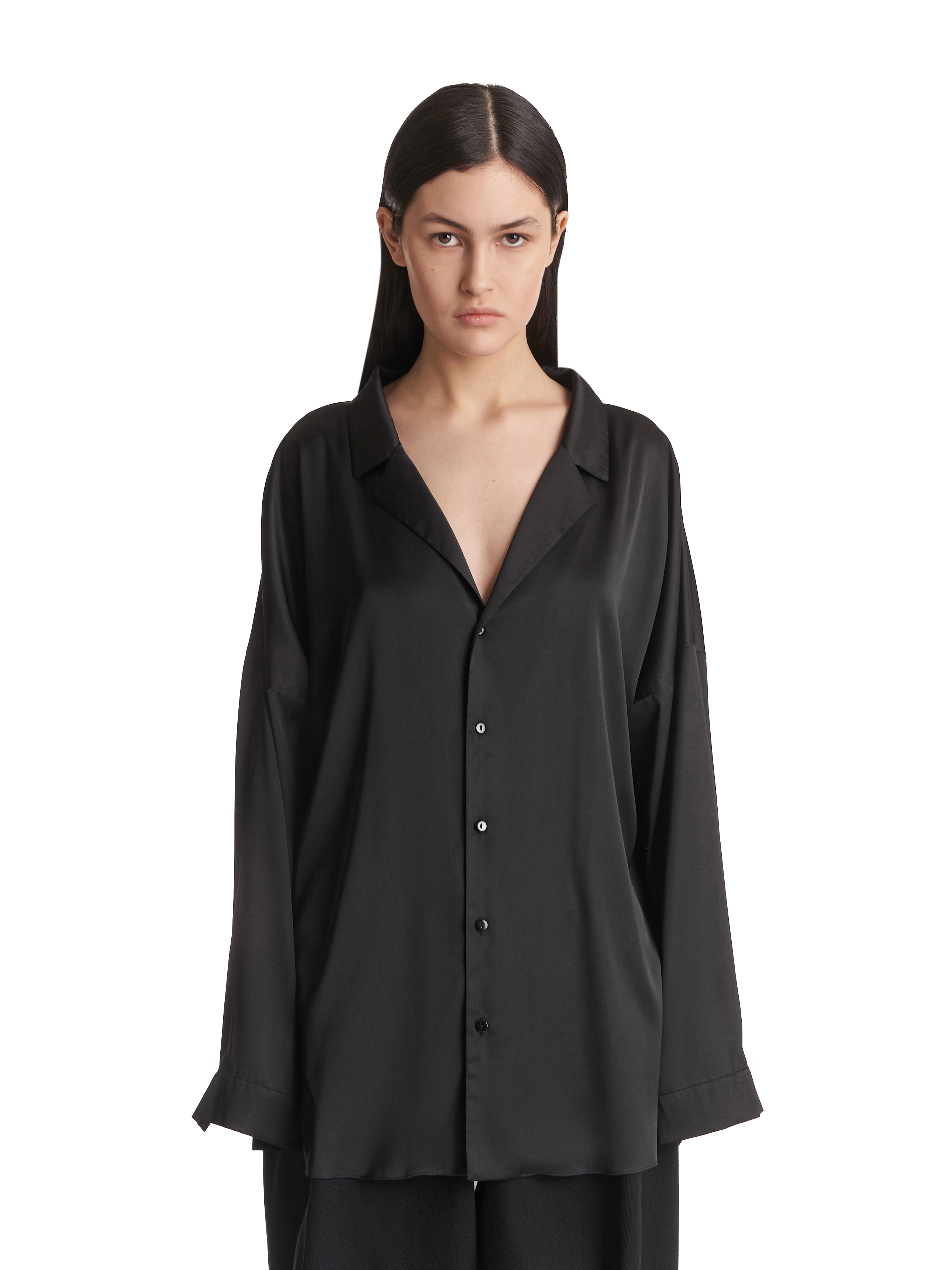 This shirt has a slightly slimmed silhouette and a universal fit, which makes it perfect both for women and men. The piece features a relaxed collar, sloped shoulders, and long cuffed sleeves — an element that’s become a long-standing Ushatava classic. The shirt fastens with branded buttons.