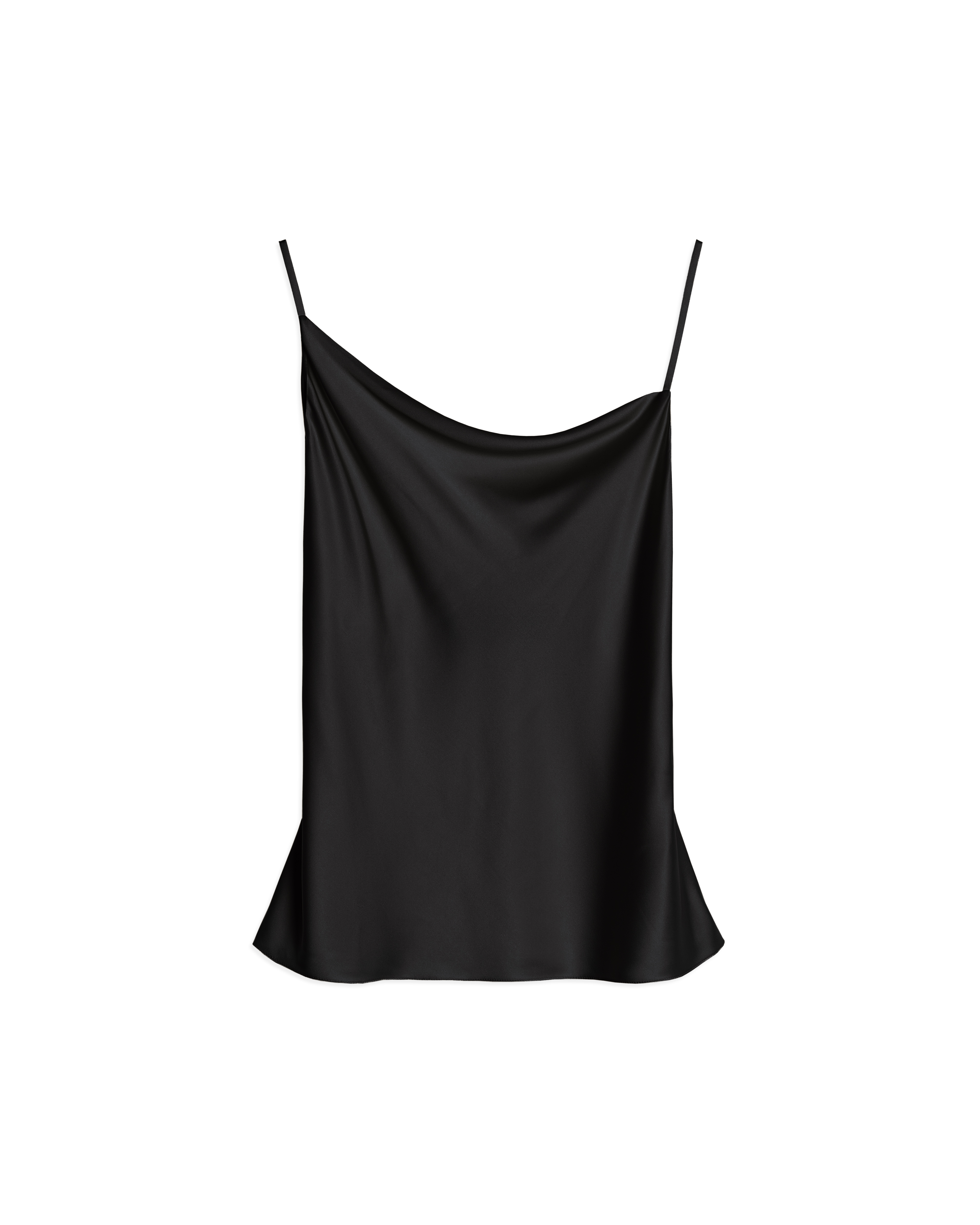 This is an Ushatava bestseller. The top is made of fine flowing satin. The key feature of this piece is the asymmetrical cascading neckline, which provides a complimentary fit in the chest area. The thin straps have adjusters, allowing you to change the fit of the top to your body and create a more relaxed or elegant look.