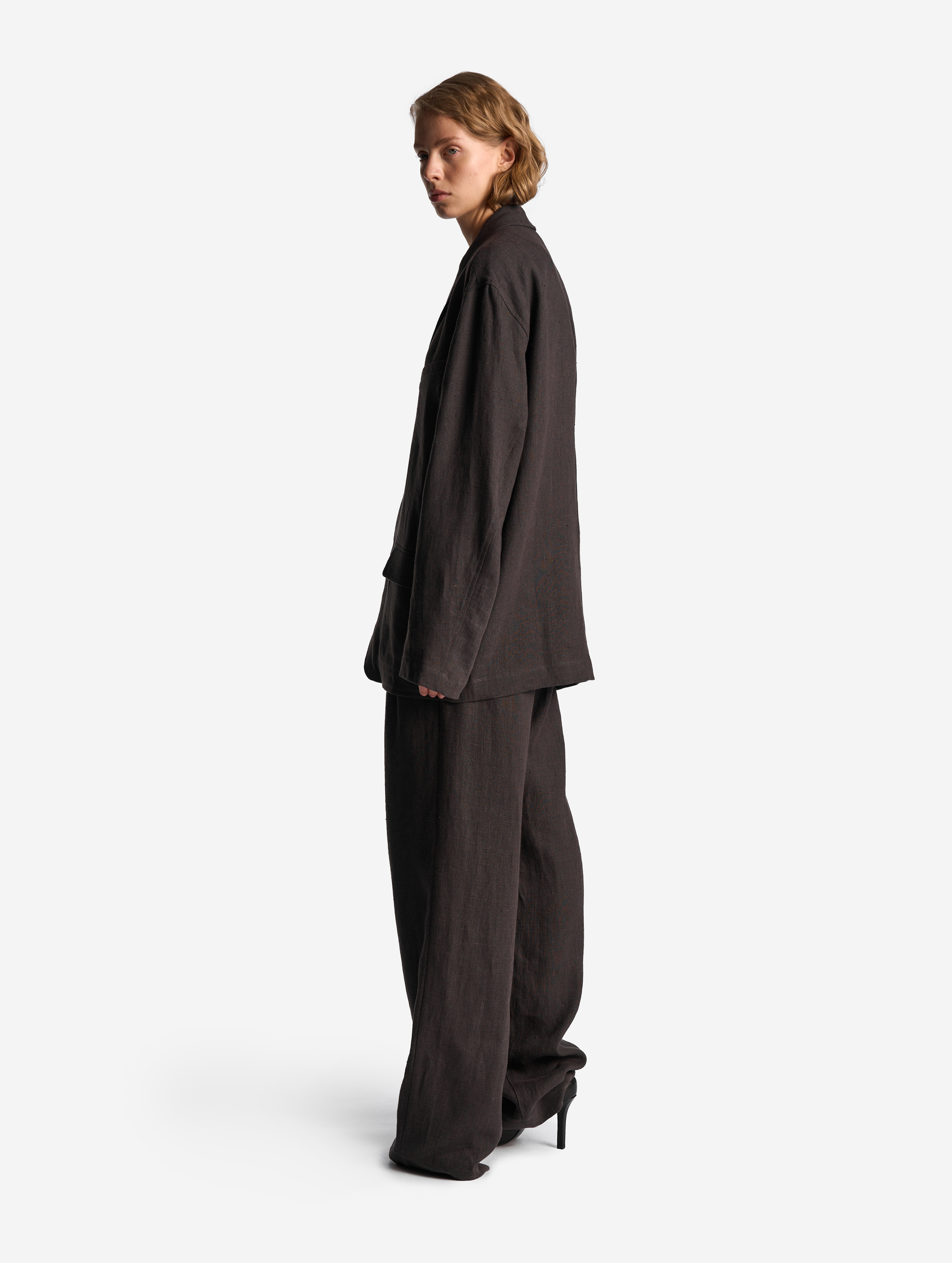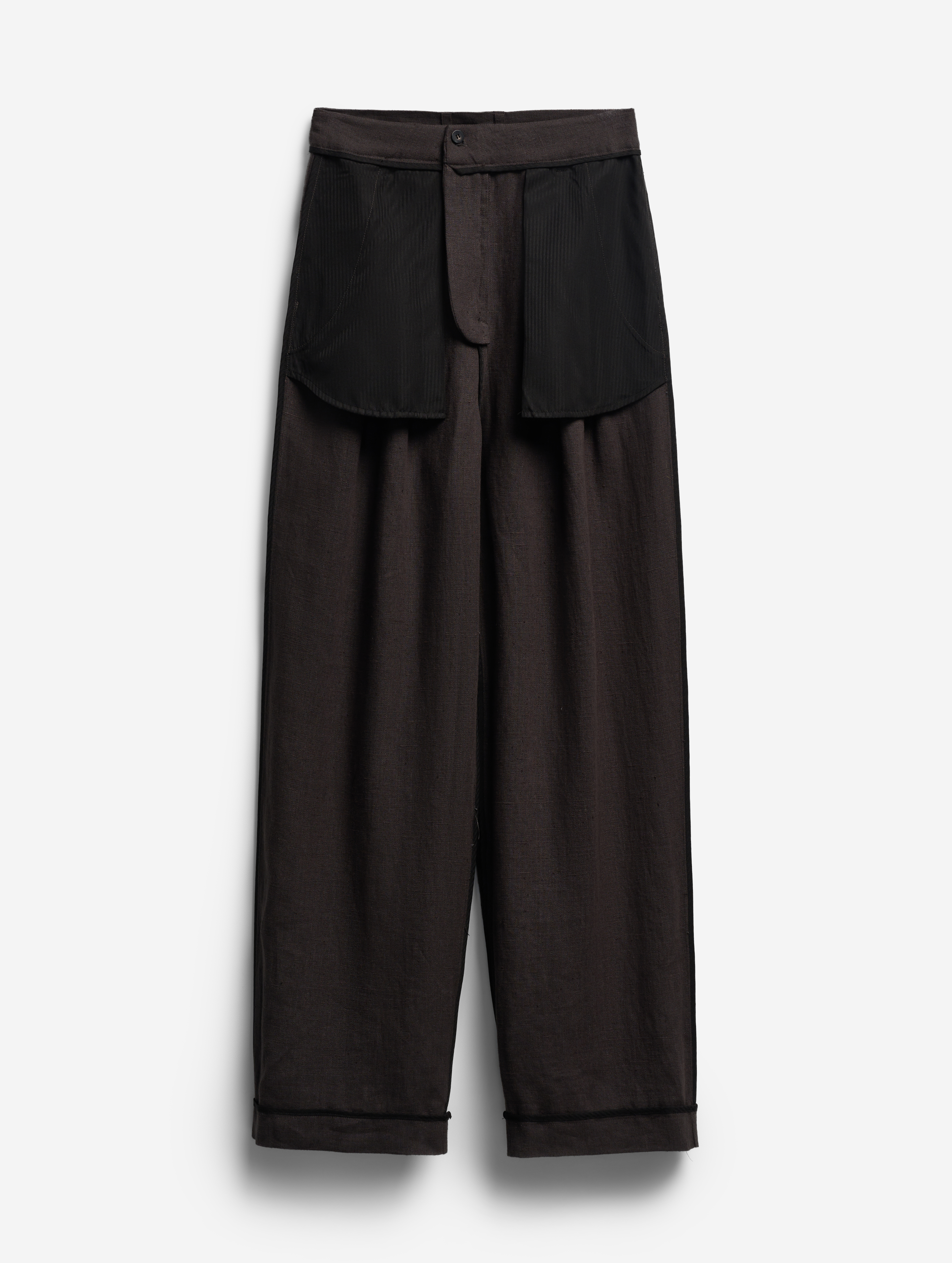 L: длина изделия — 119 см, обхват талии — 90 см, обхват бёдер — 129 см, длина шагового шва — 90 см.