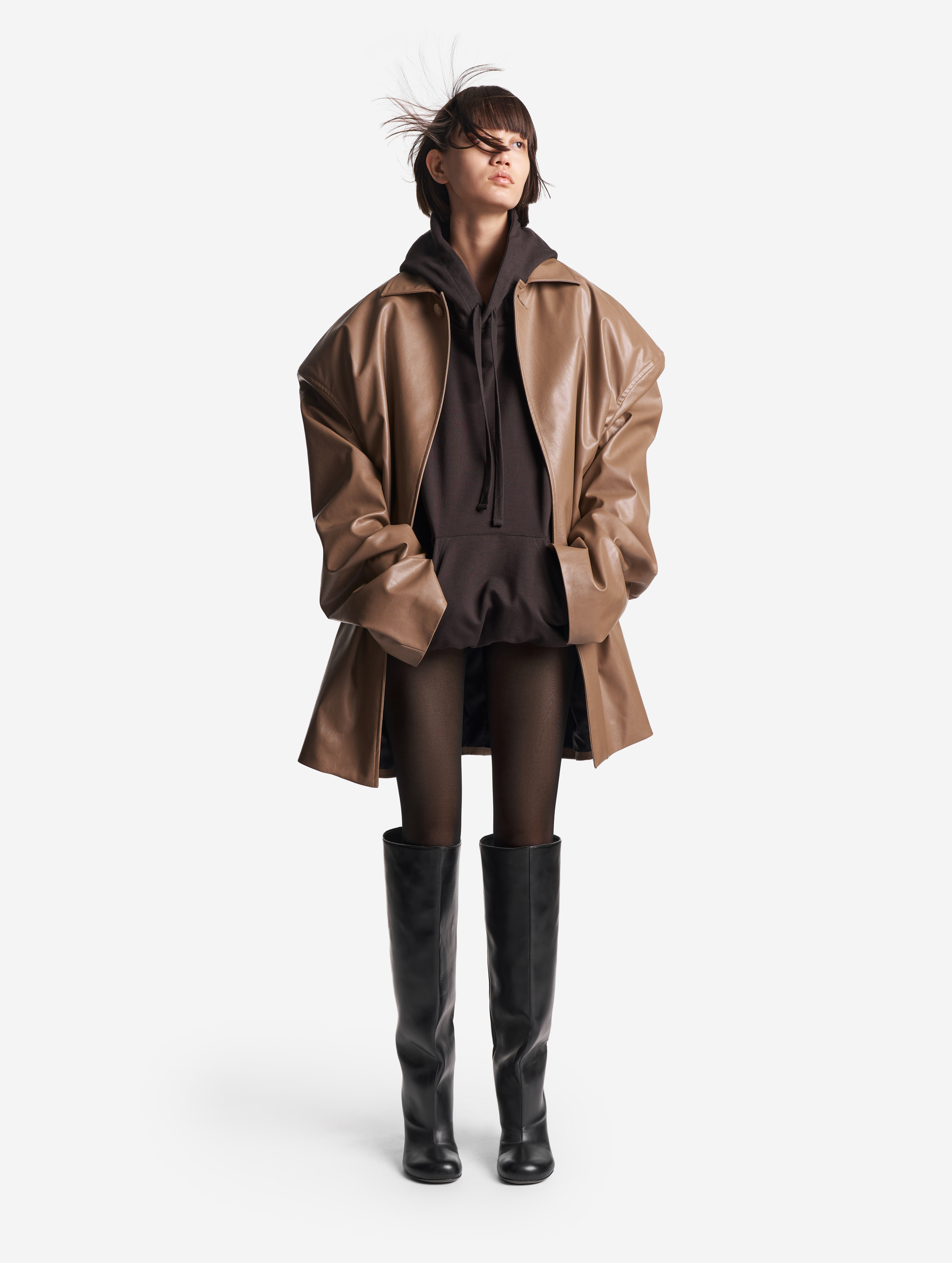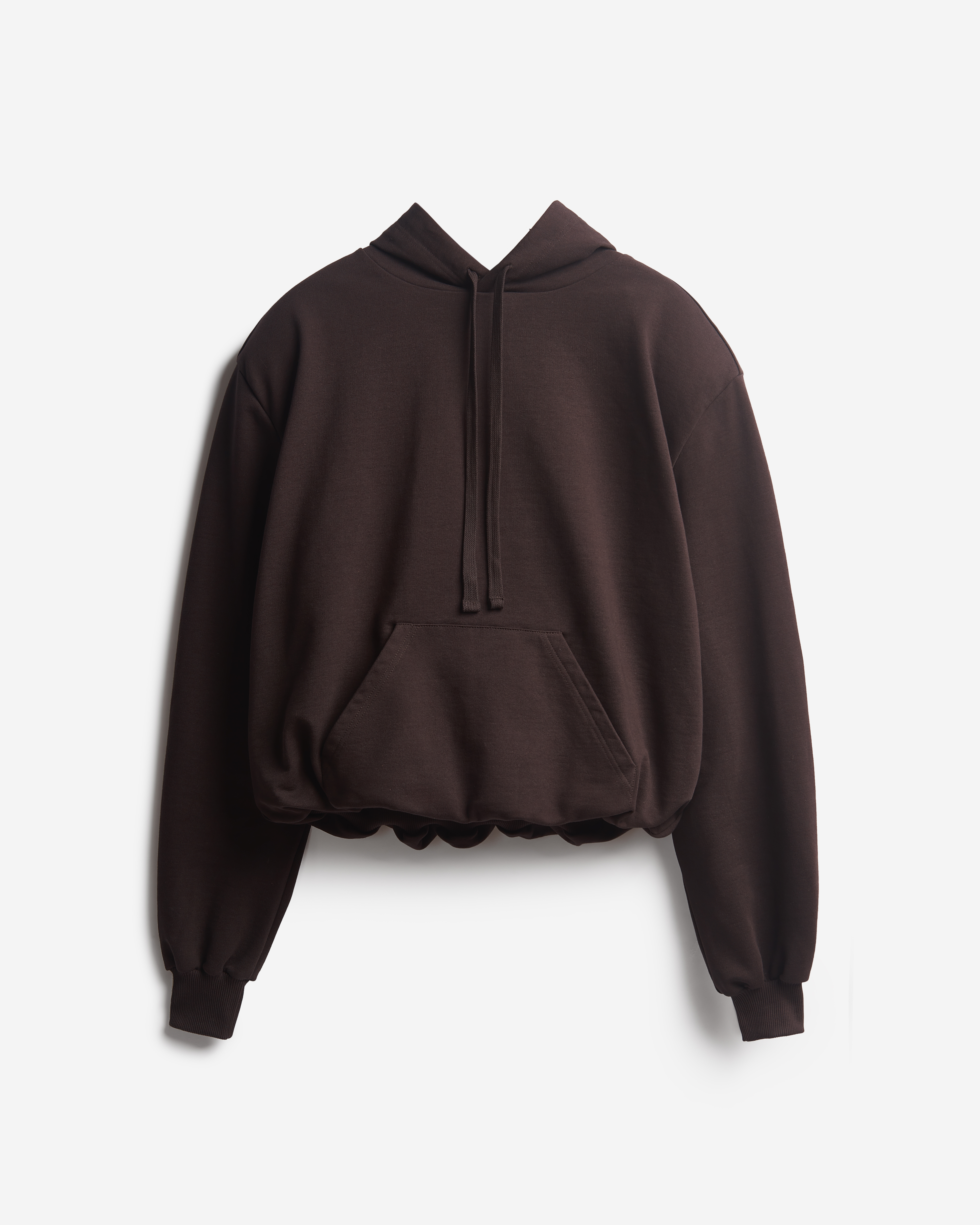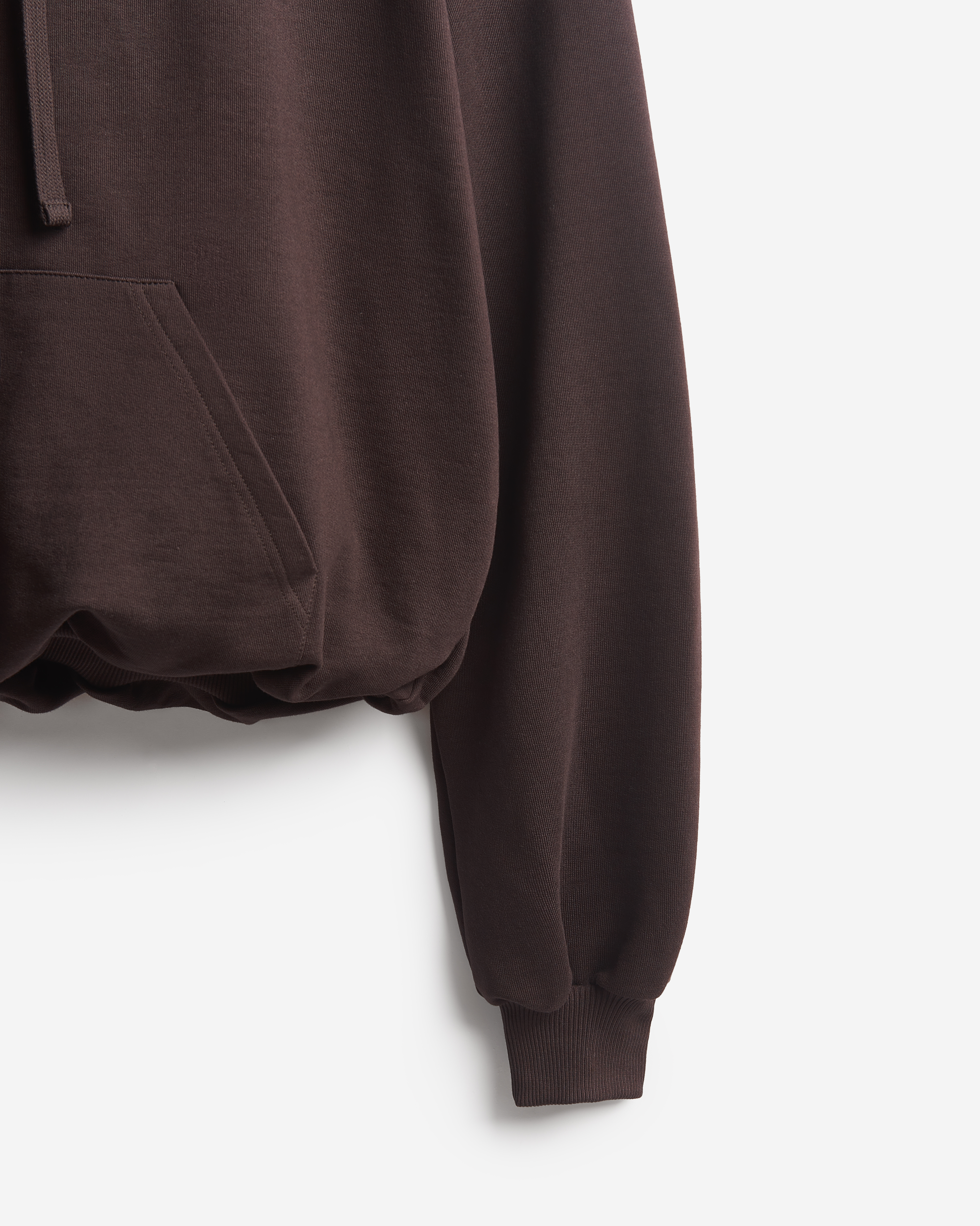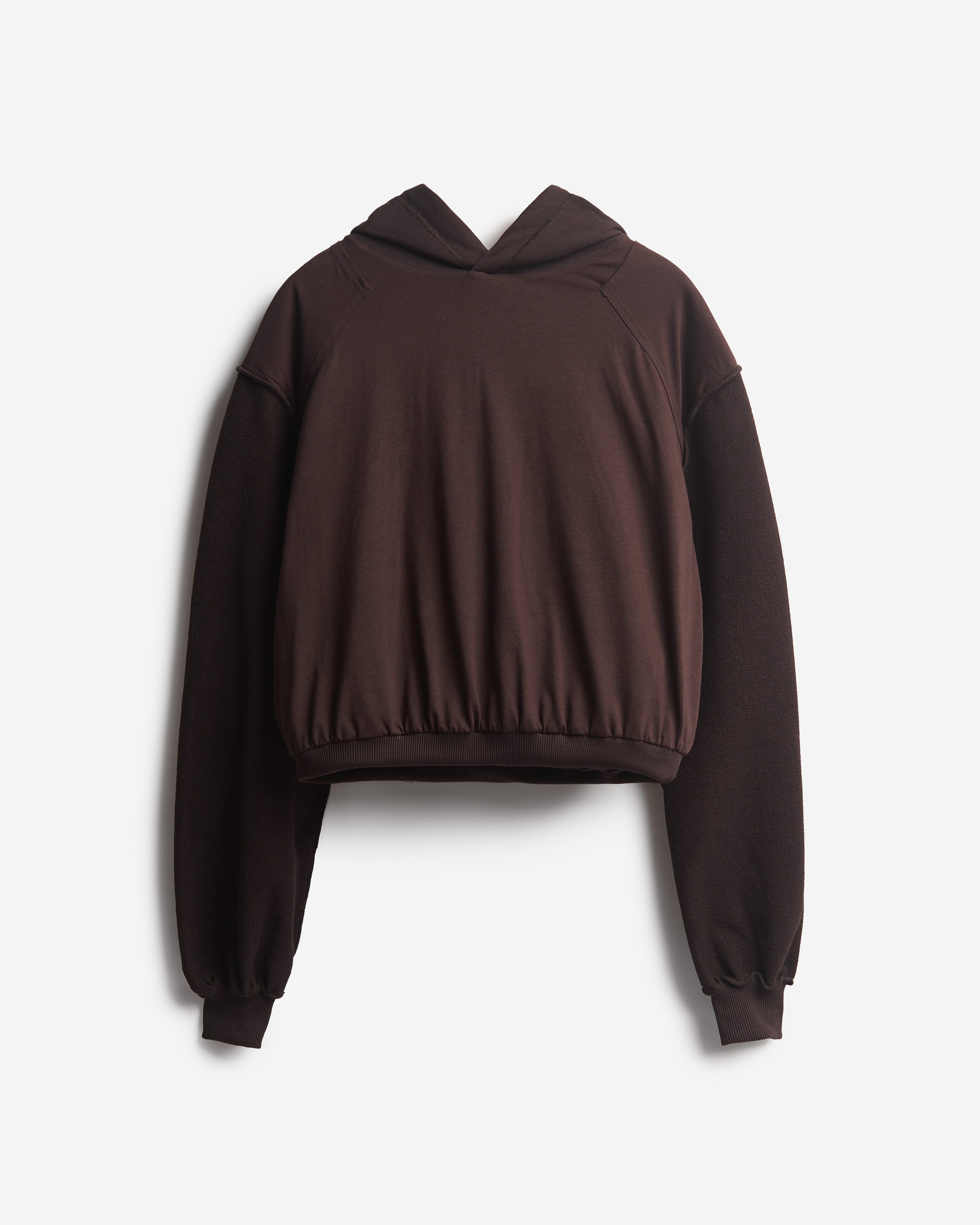 Это худи оверсайз-силуэта можно носить на две стороны. Изделие выполнено из футера, а внутри обработано тонким трикотажем. Вывернутая наизнанку, эта вещь выглядит так, будто поверх худи надели футболку. На подкладке находятся плечевые карманы, предназначенные для фиксации мягких подплечников, которые при желании можно убрать. Удлиненный рукав и низ изделия обработаны резинкой из кашкорсе. Спинка худи украшена фирменной нашивкой Ushatava. Из деталей: карман-кенгуру, капюшон на шнурке.