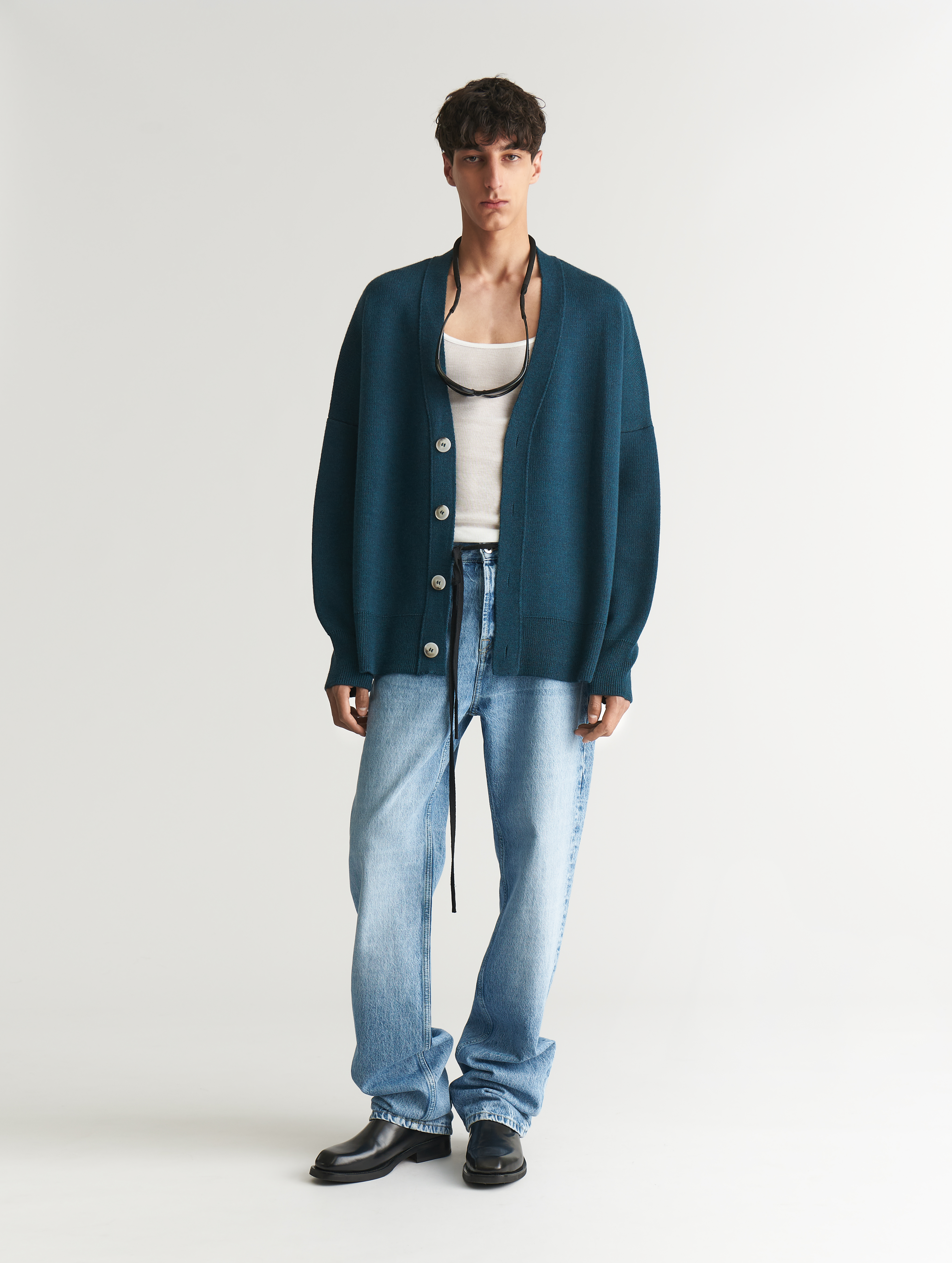 Классические джинсы прямого кроя. Спереди есть два больших кармана и один маленький для зажигалки, сзади — еще два. Посадка варьируется в зависимости от выбора размера, джинсы рассчитаны как на женскую, так и на мужскую фигуру. Застегиваются на металлические джинсовые пуговицы.