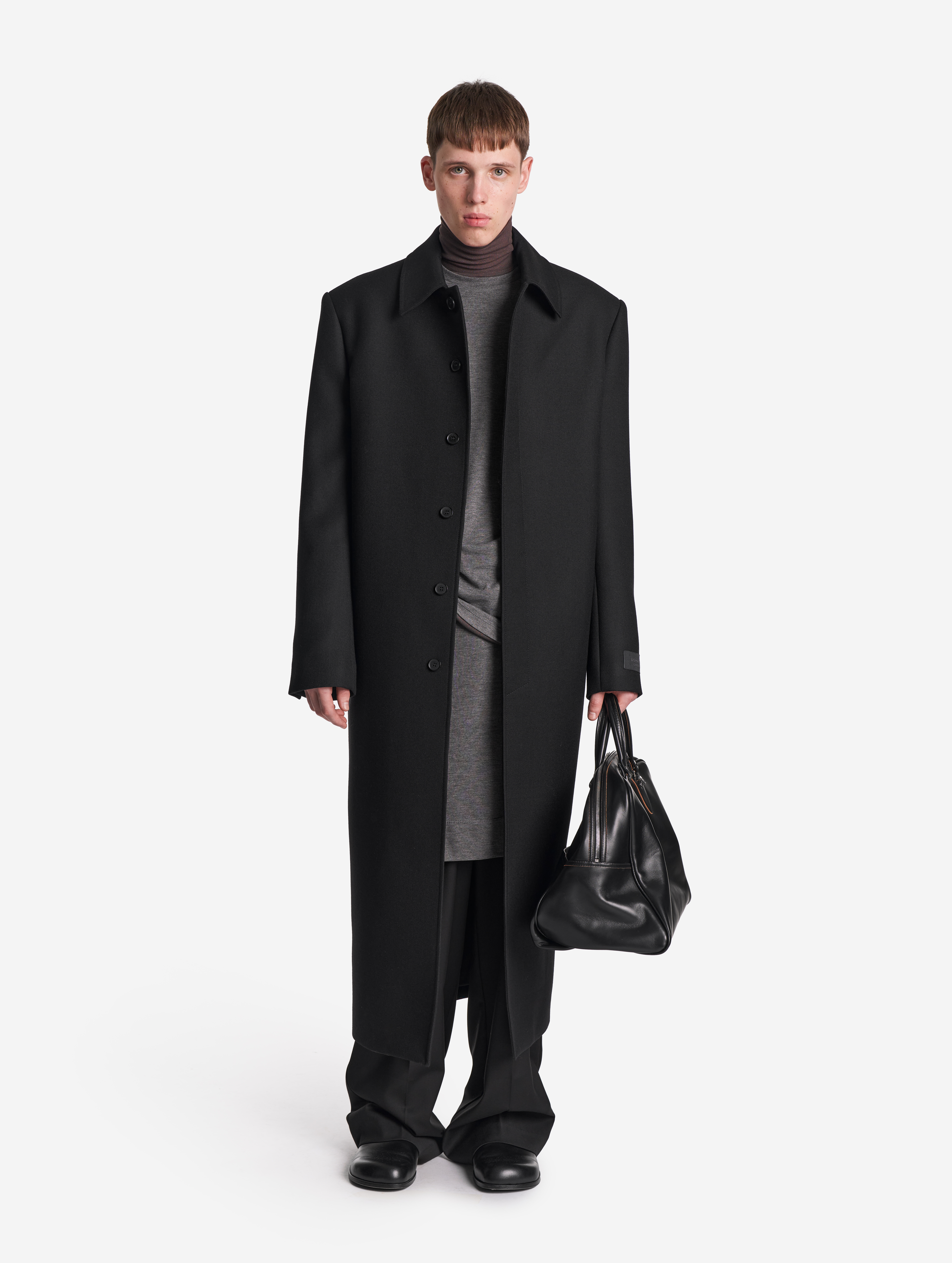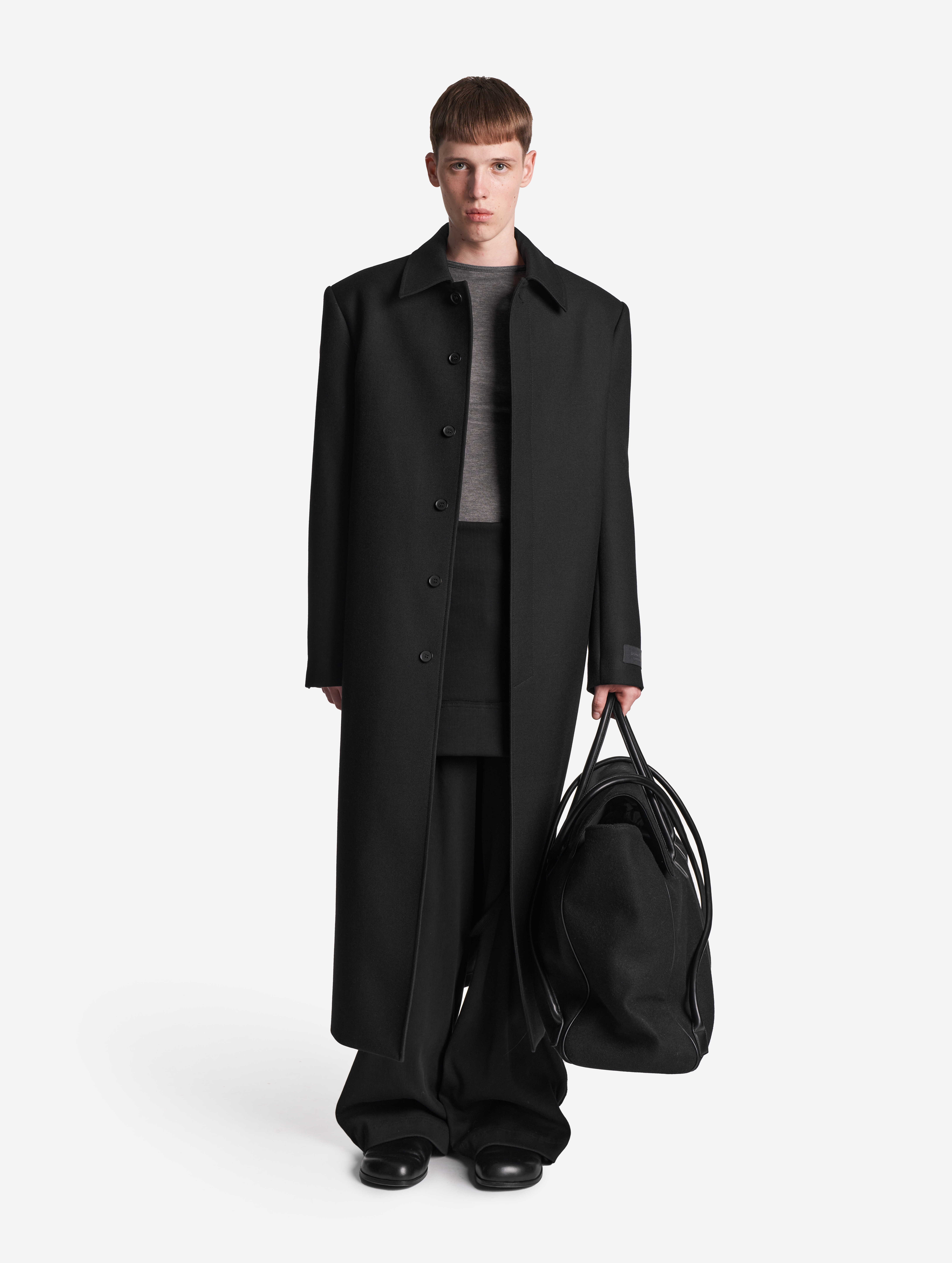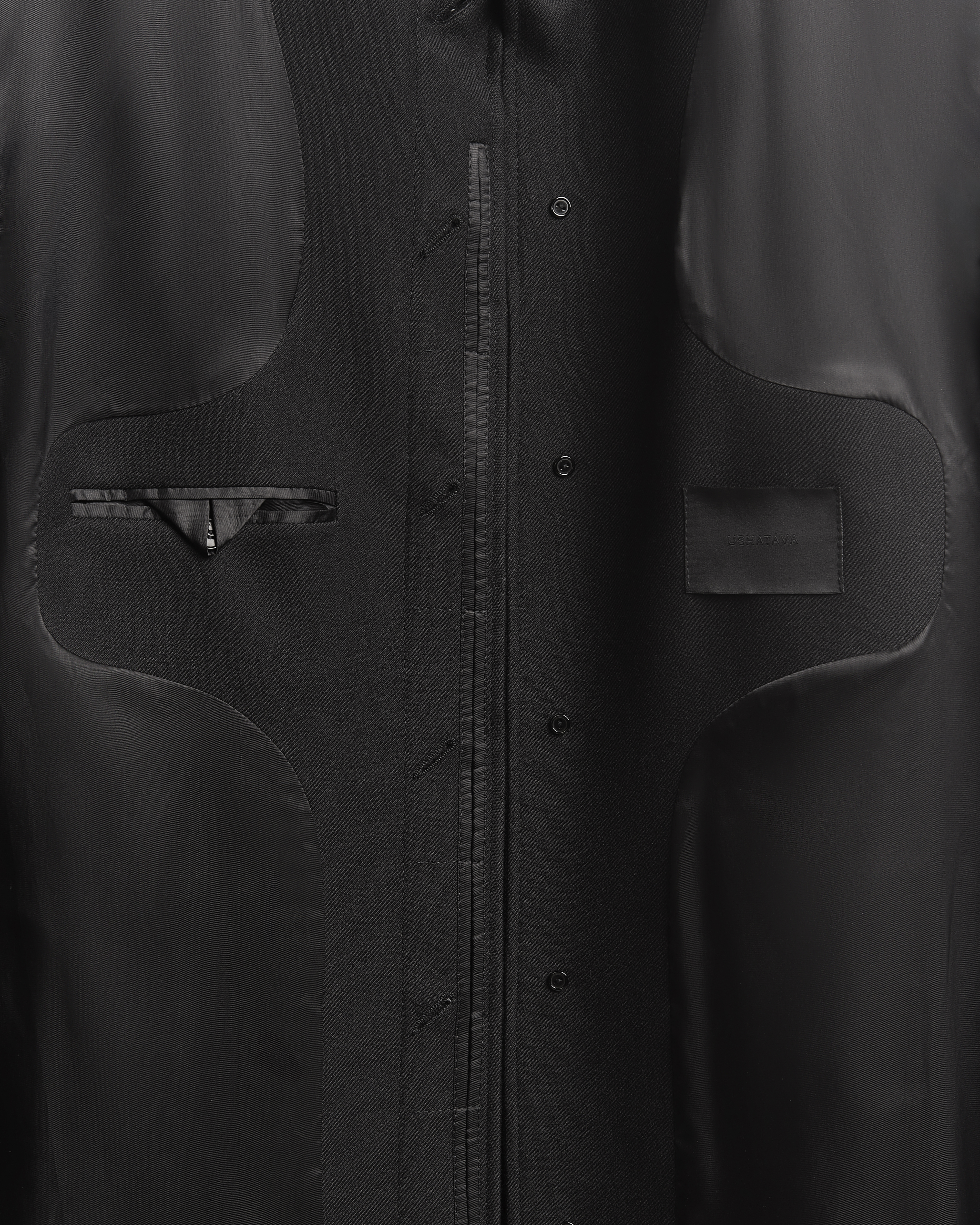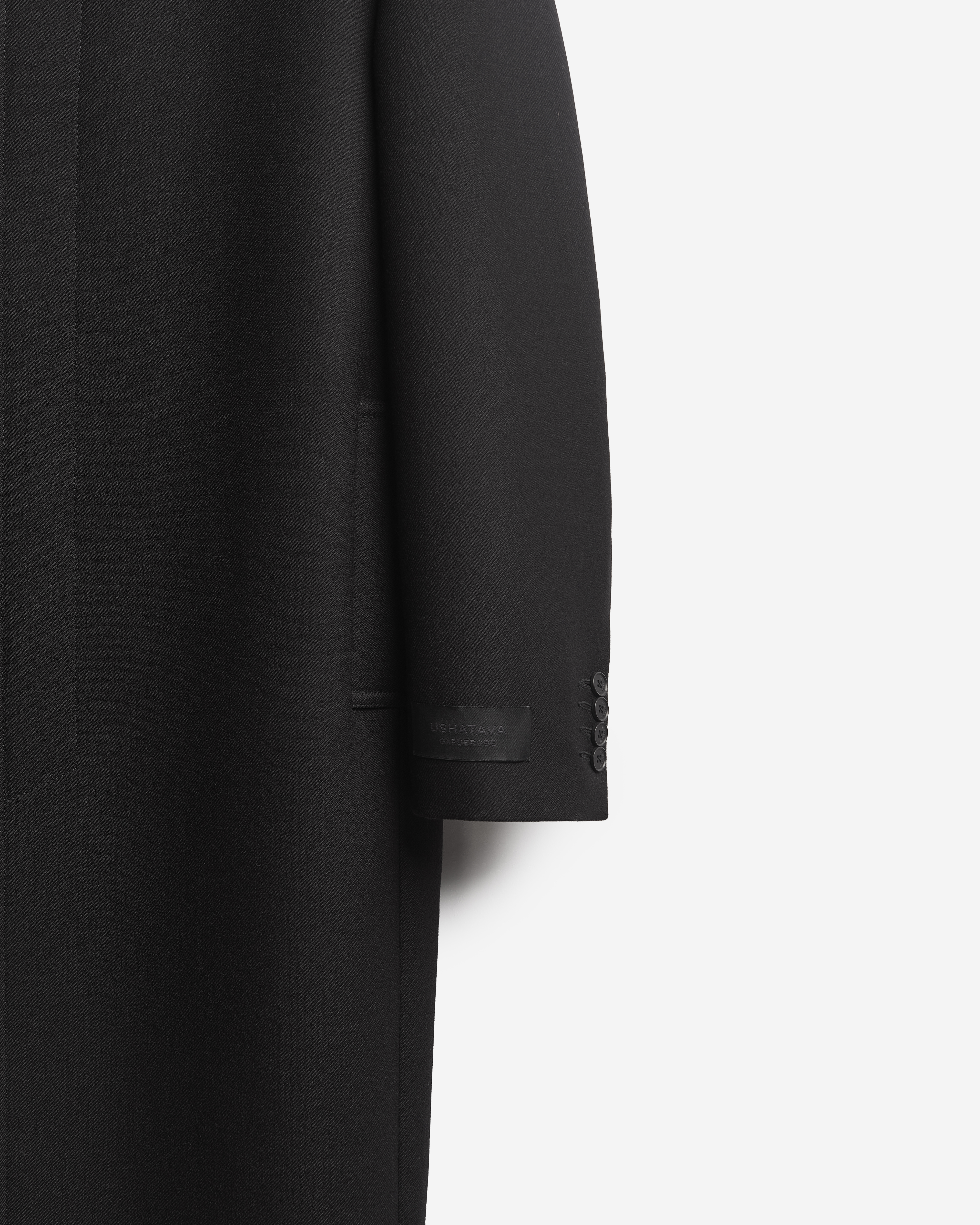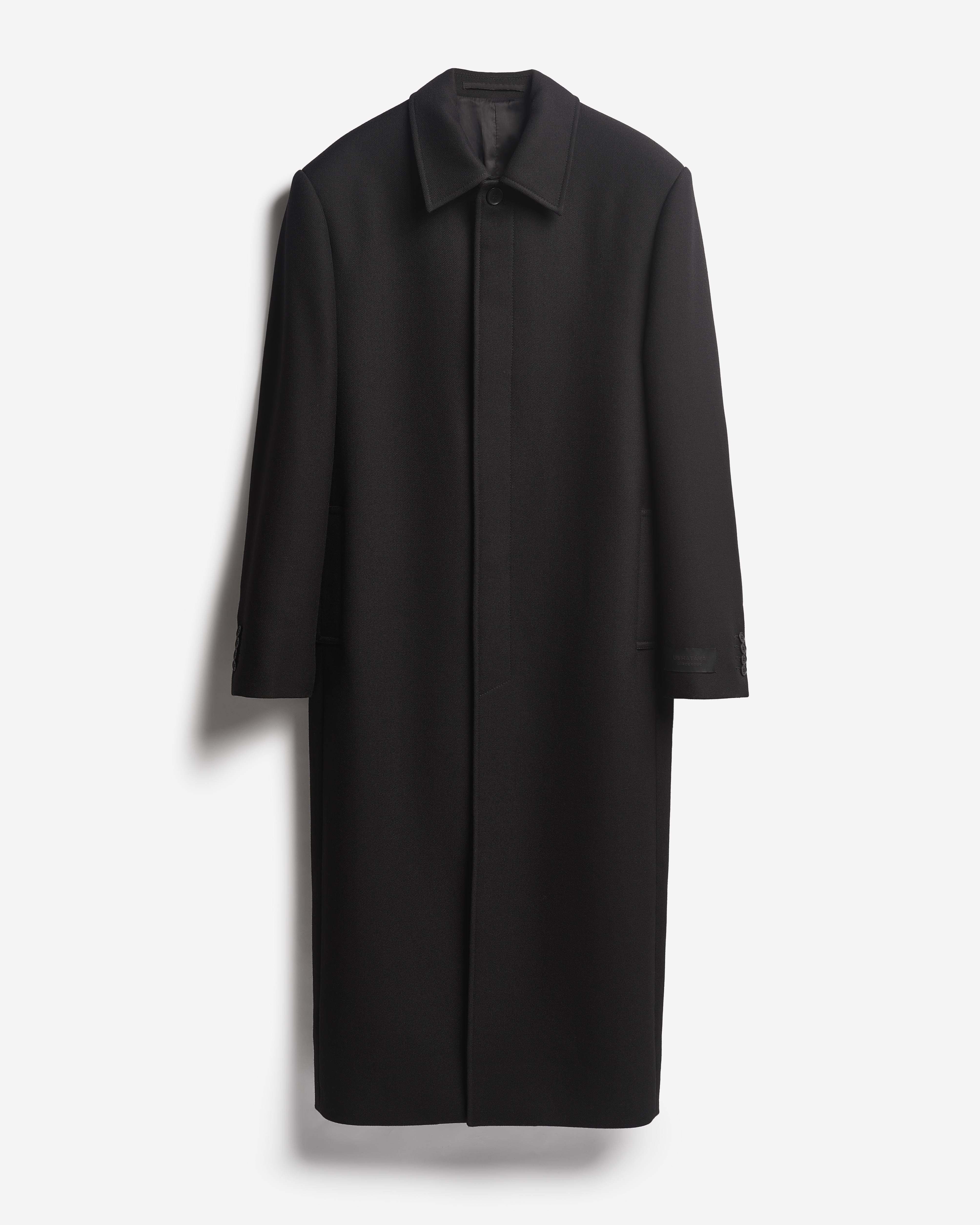 «Лаконичное и выдержанное в своей строгости пальто. В нем нет ничего лишнего — pure Garderobe», — говорит креативный директор Ushatava Нино Шаматава. У этого изделия прямой силуэт, строгая, очерченная линия плеч, удлиненный анатомический рукав, длина макси. Универсальная модель, которая будет одинаково хорошо сидеть на женской и мужской фигуре. Минималистичный рубашечный воротник, есть два функциональных кармана.