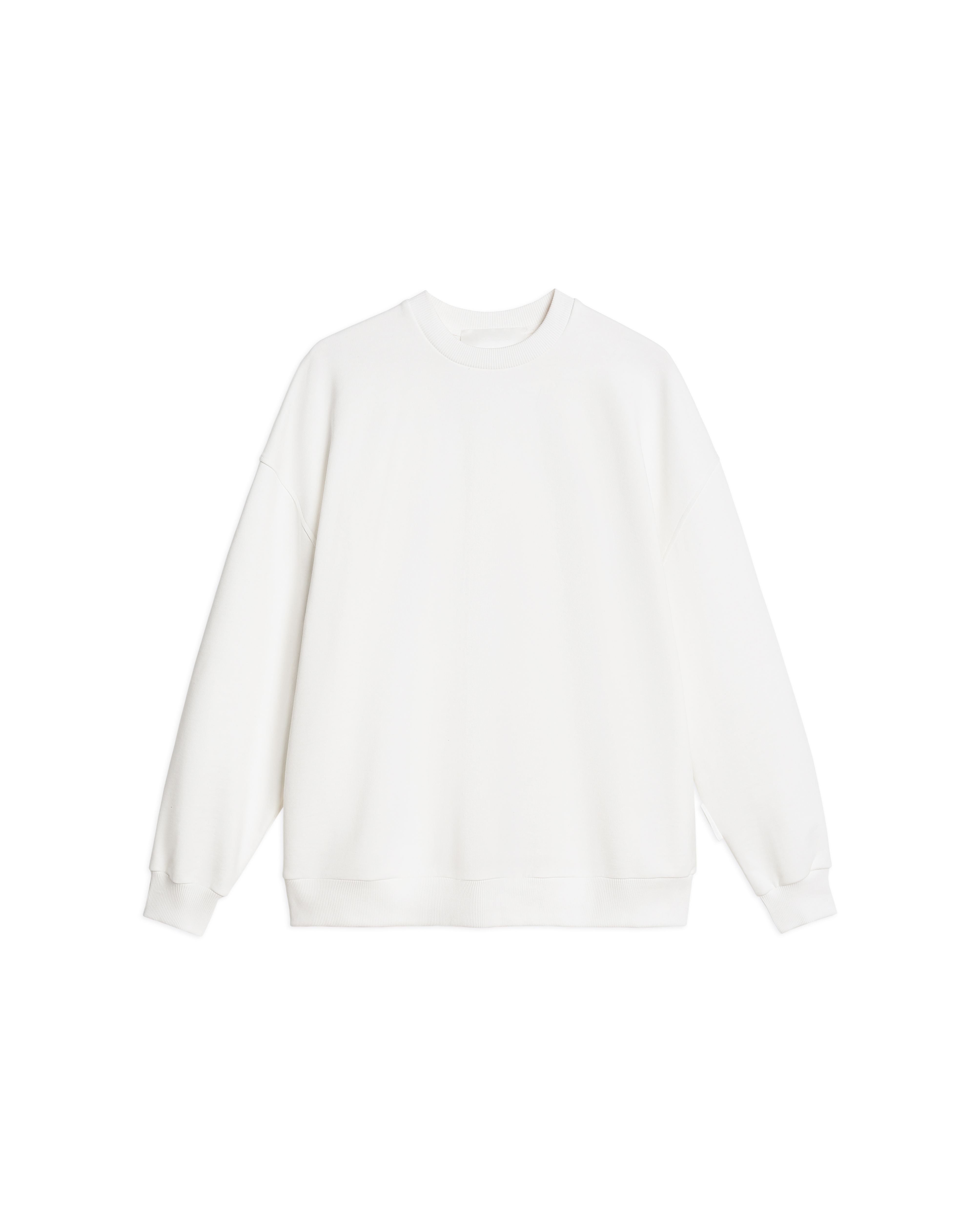 Классический свитшот оверсайз-силуэта. Низ изделия, удлиненные рукава и узкая горловина обработаны эластичной резинкой из кашкорсе. У изделия универсальная посадка, оно будет хорошо сидеть как на женской, так и на мужской фигуре.