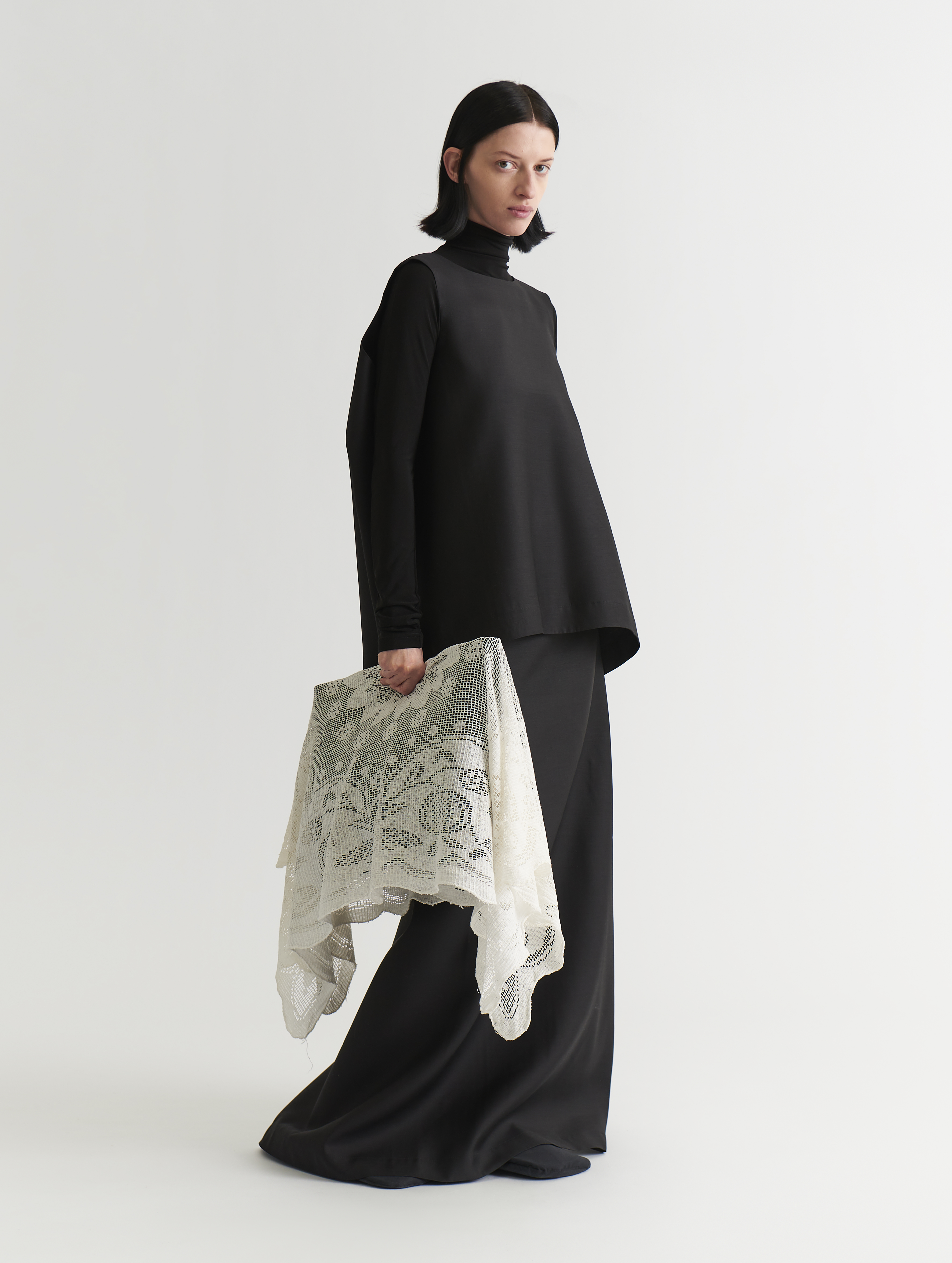 Кружевные салфетки обычно служат элементом декора праздничного стола. Такие накидки появились и в FESTIVE MESS, но уже в роли аксессуара для сумки-подушки, еще одного очень домашнего предмета. Каждая салфетка в коллекции — уникальный образец прикладного искусства, который когда-то украшал реальный интерьер. Они собраны из разных уголков страны и отличаются рисунком плетения. Салфетки не крепятся к сумке, а просто накидываются сверху, красиво обрамляя ее.