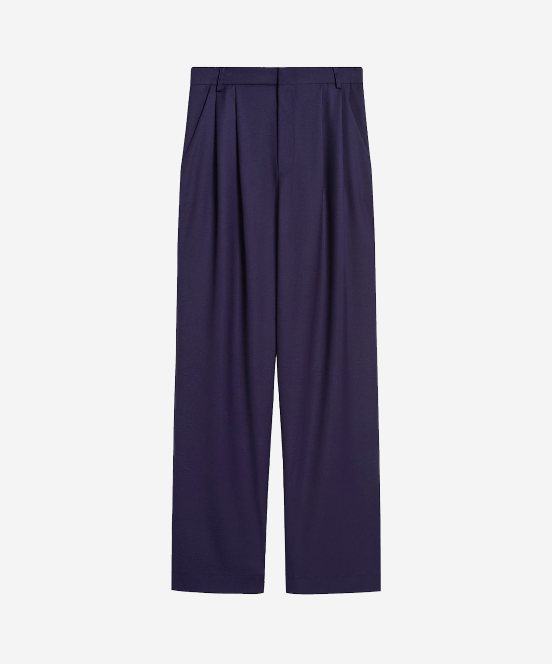 Классические брюки-бананы. Свободные и немного заужены книзу, с завышенной линией талии — благодаря такой пропорции изделие визуально вытягивает фигуру. Складки, зафиксированные в области бедер, создают спереди характерный для этой модели объем. Есть два передних кармана и один задний, присутствуют шлевки для ремня. Брюки застегиваются на молнию и крючок.