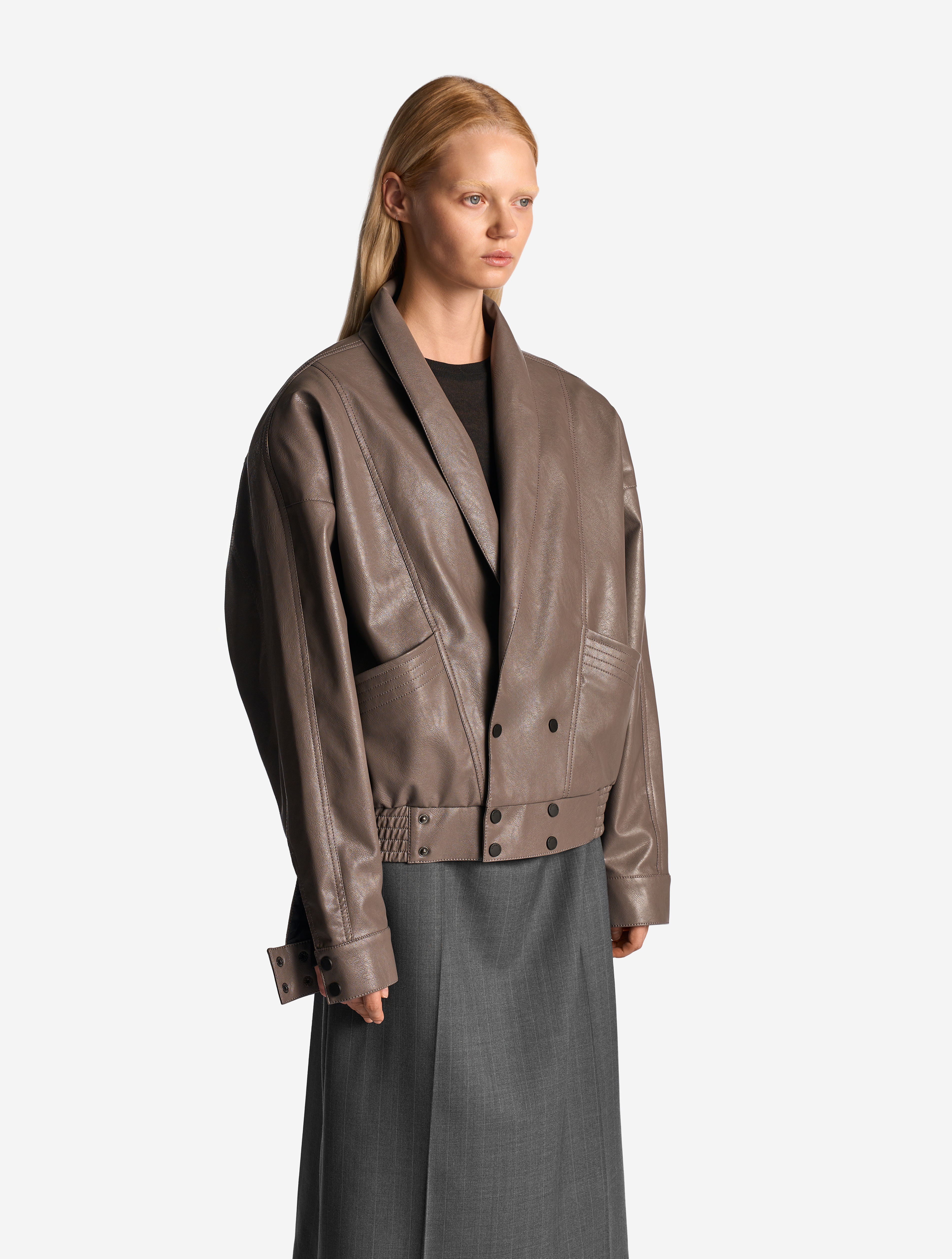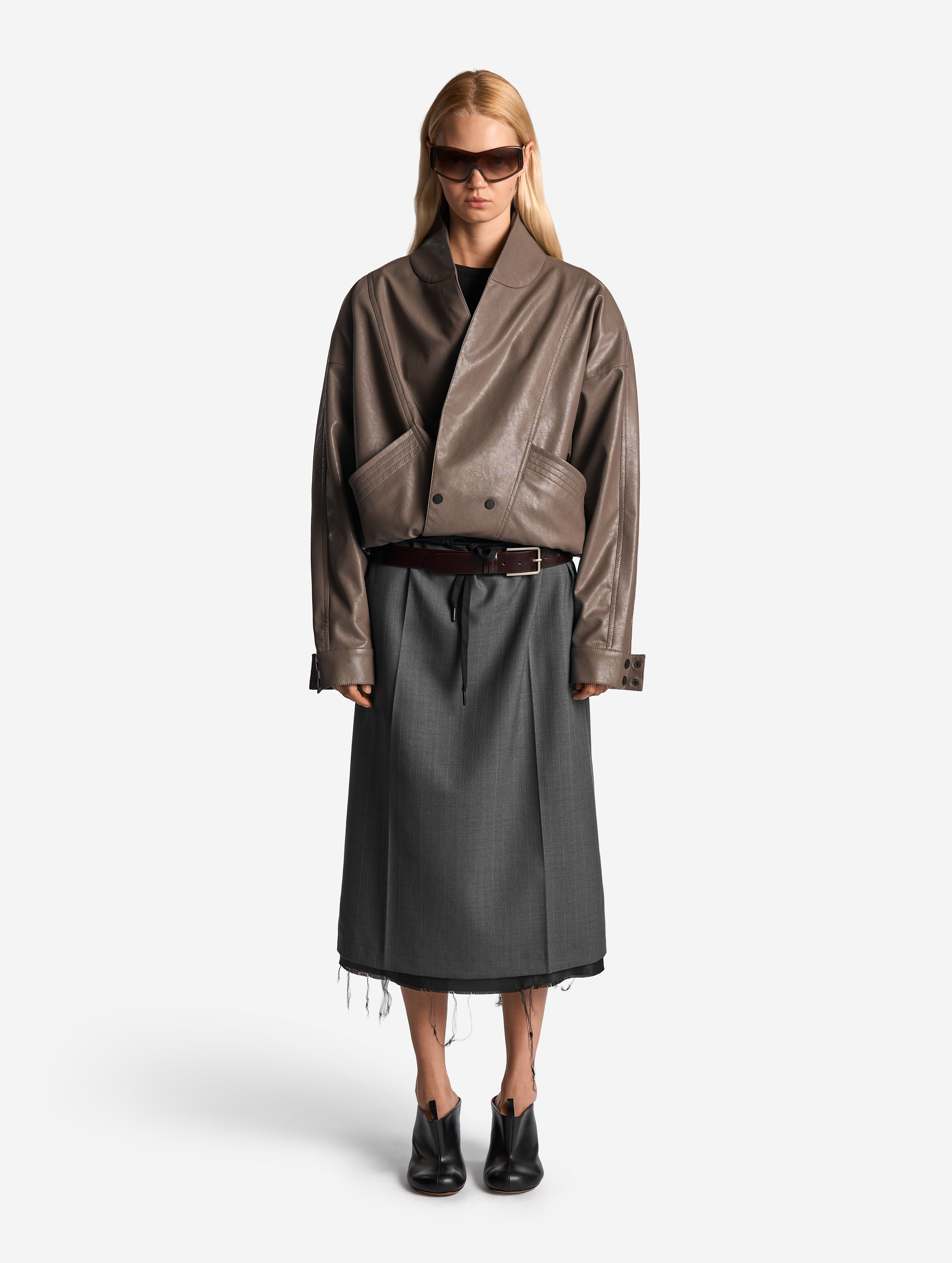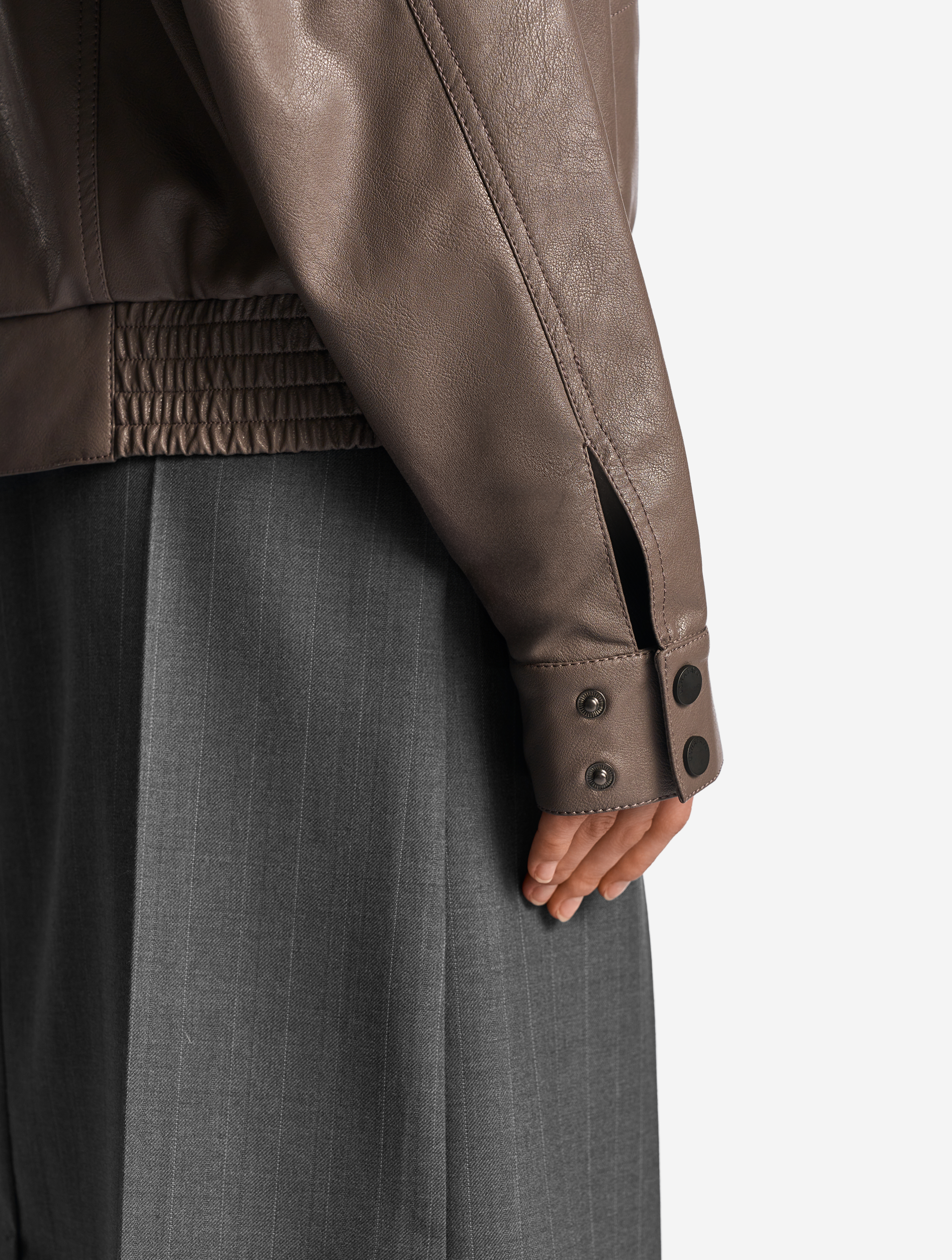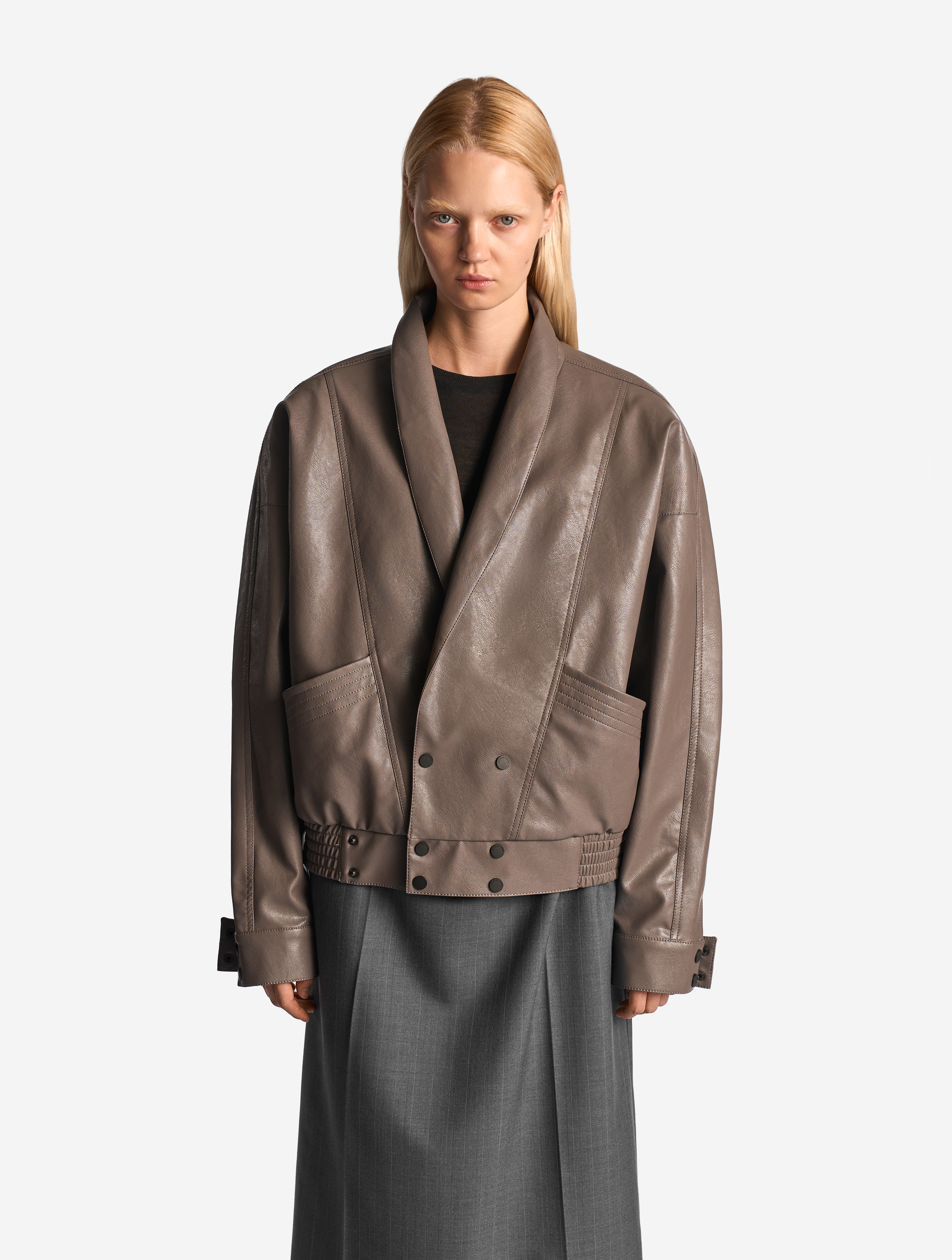 Dad's Fit — новое понятие в словаре линии Garderobe. Этот силуэт вдохновлен воспоминаниями дизайн-команды Ushatava о гардеробе родителей. Бомбер Dad's Fit наследует ключевые черты мужской куртки с винтажным характером: укороченный фасон, скатное плечо, утрированно широкие присборенные рукава, шалевый воротник, накладные карманы с декоративными отстрочками. У бомбера универсальная посадка, поэтому его могут носить не только женщины, но и мужчины. Внутри модель обработана подкладкой, присутствует карман. Застегивается на кнопки.