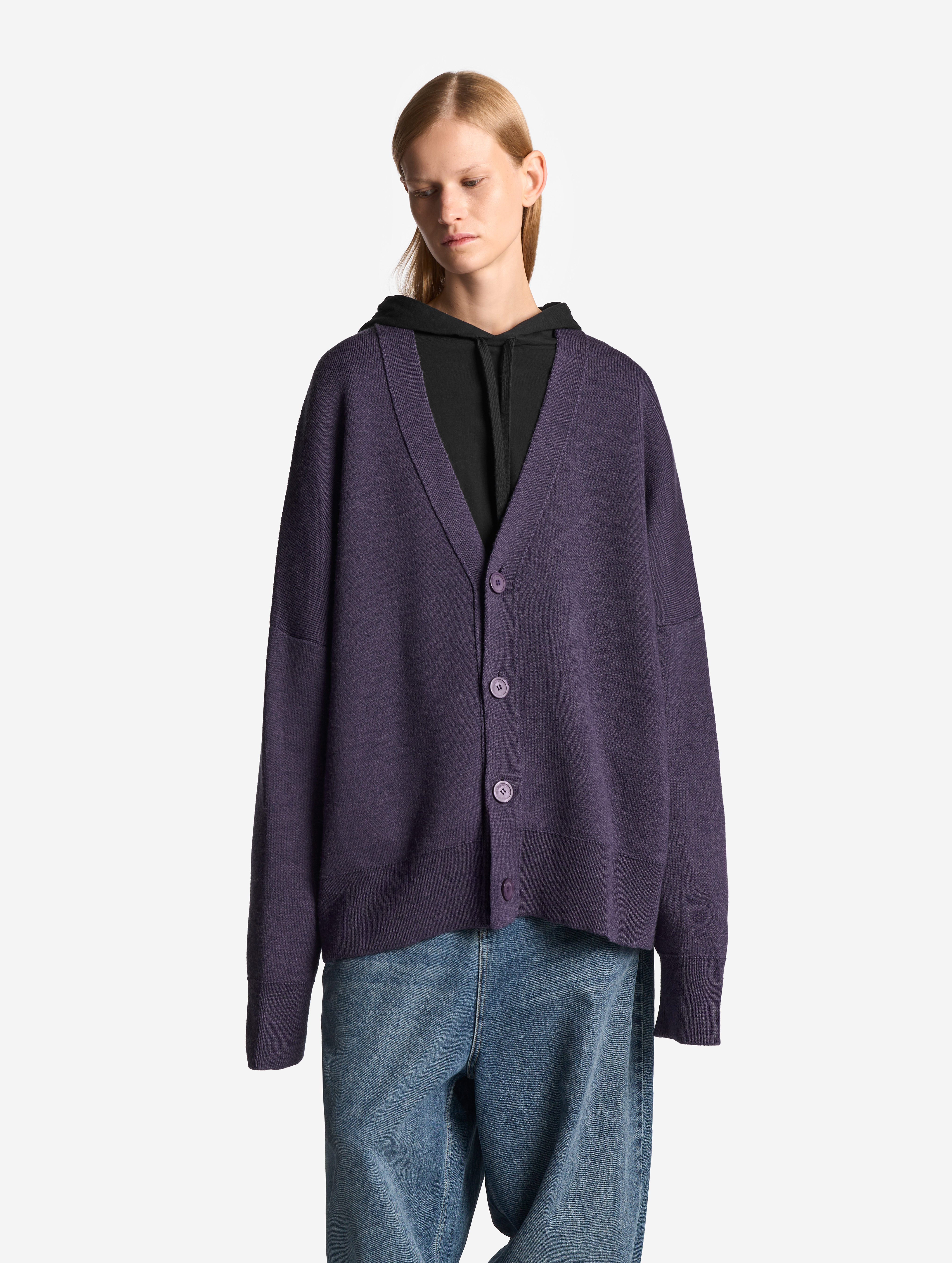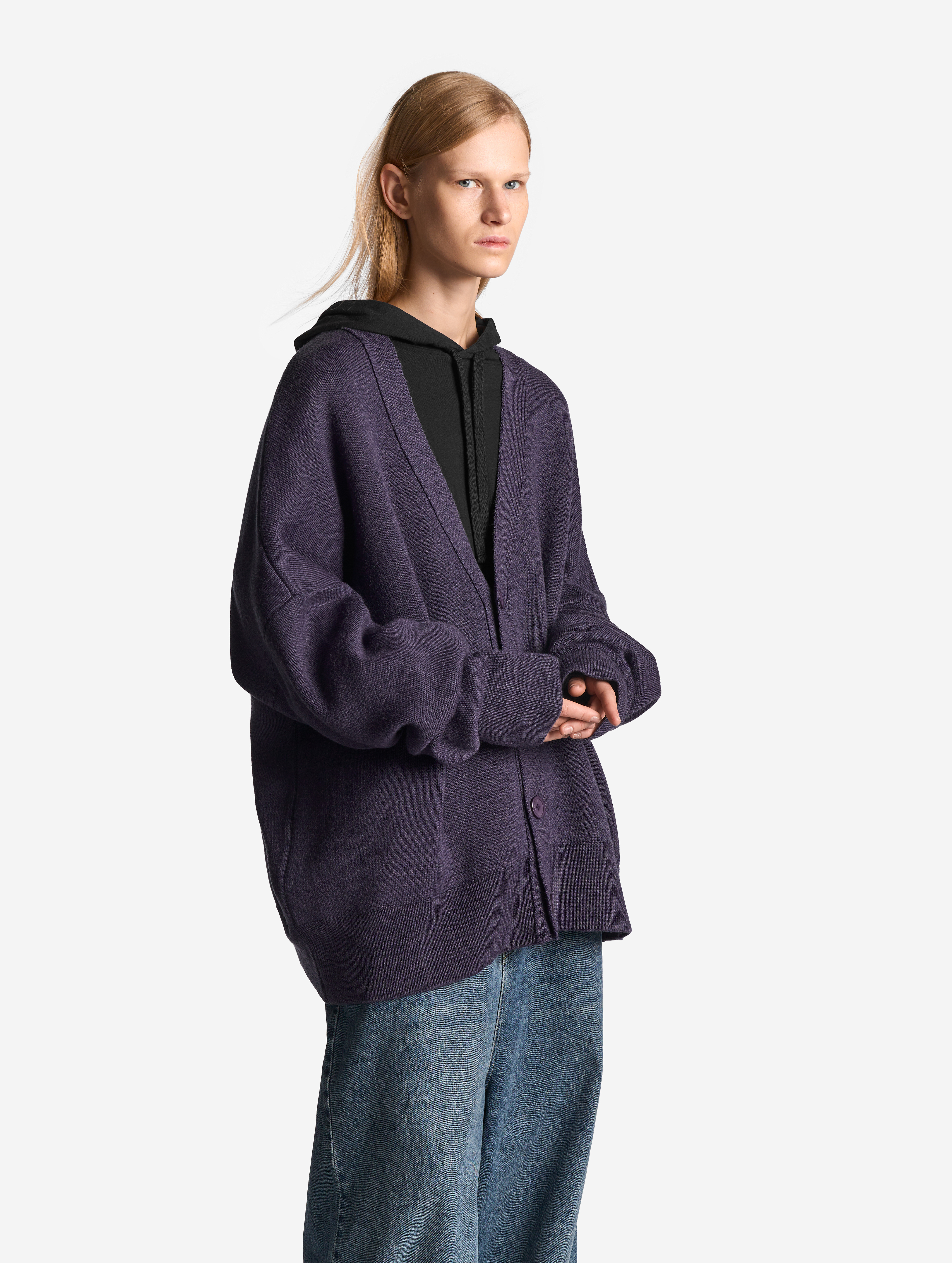 Вязаный кардиган удлиненного оверсайз-силуэта. Одинаково хорошо сидит на мужской и женской фигуре. Застегивается на роговые брендированные пуговицы. Благодаря наличию в составе акрила кардиган не пиллингуется и не деформируется со временем.
