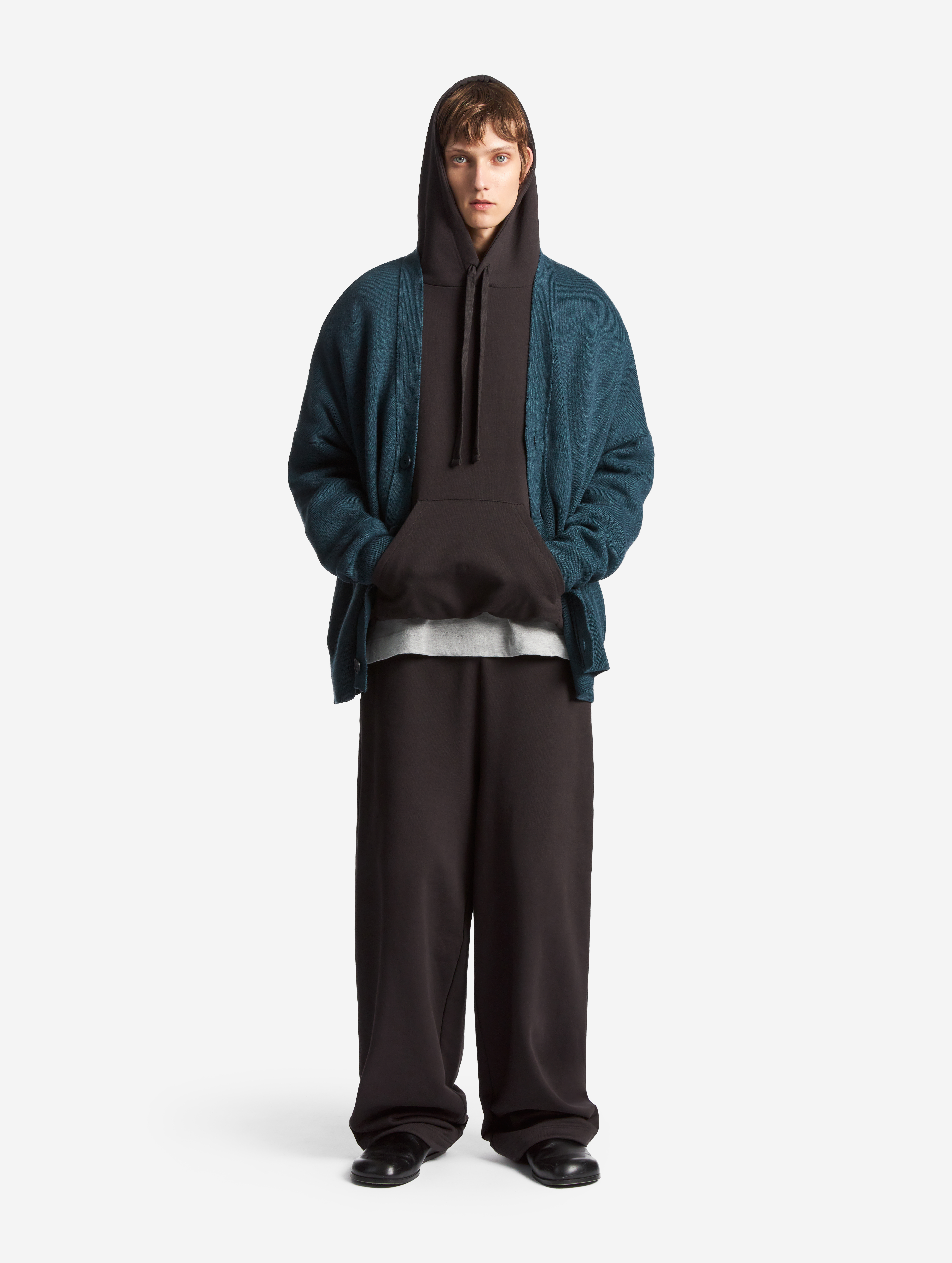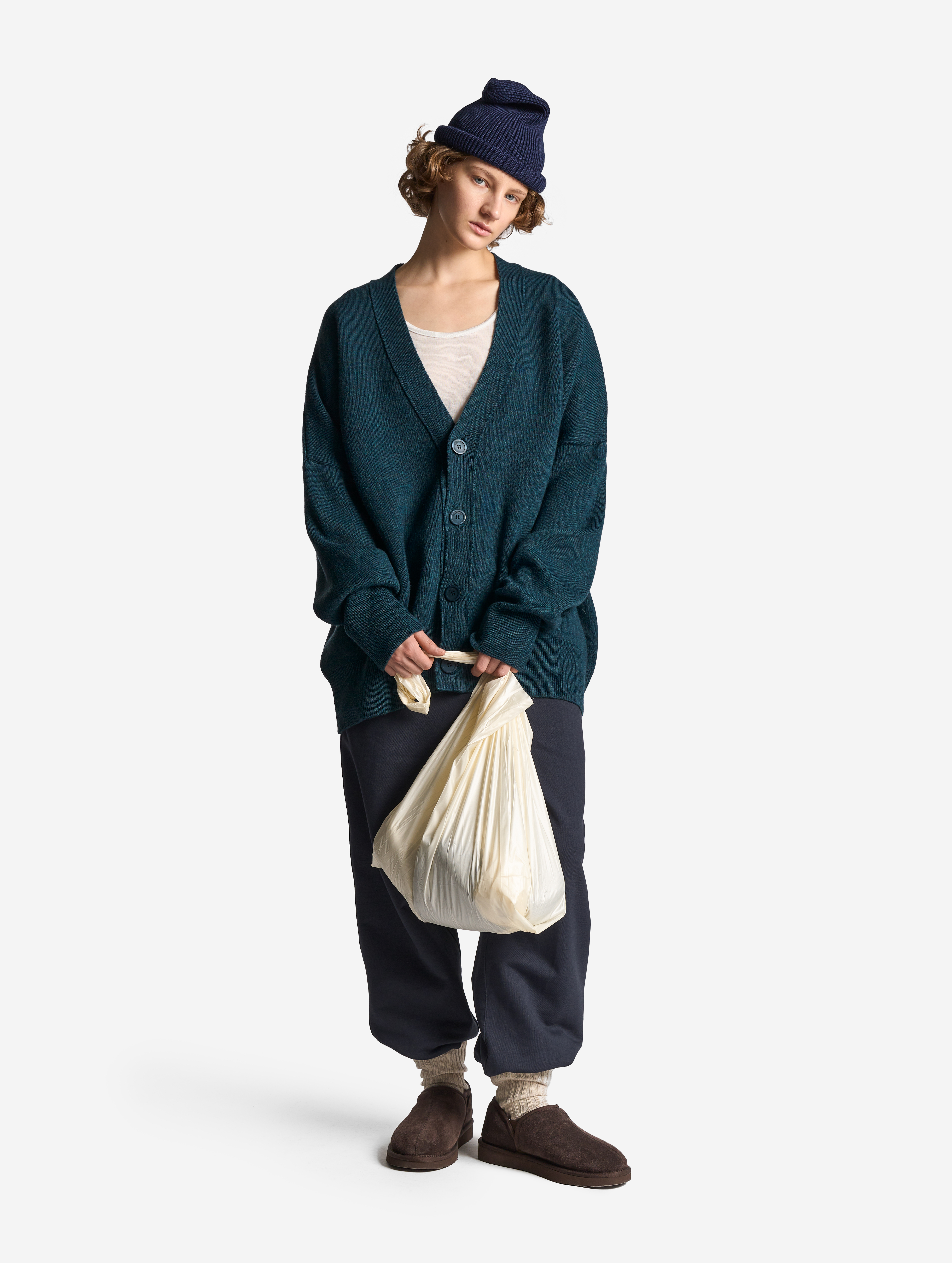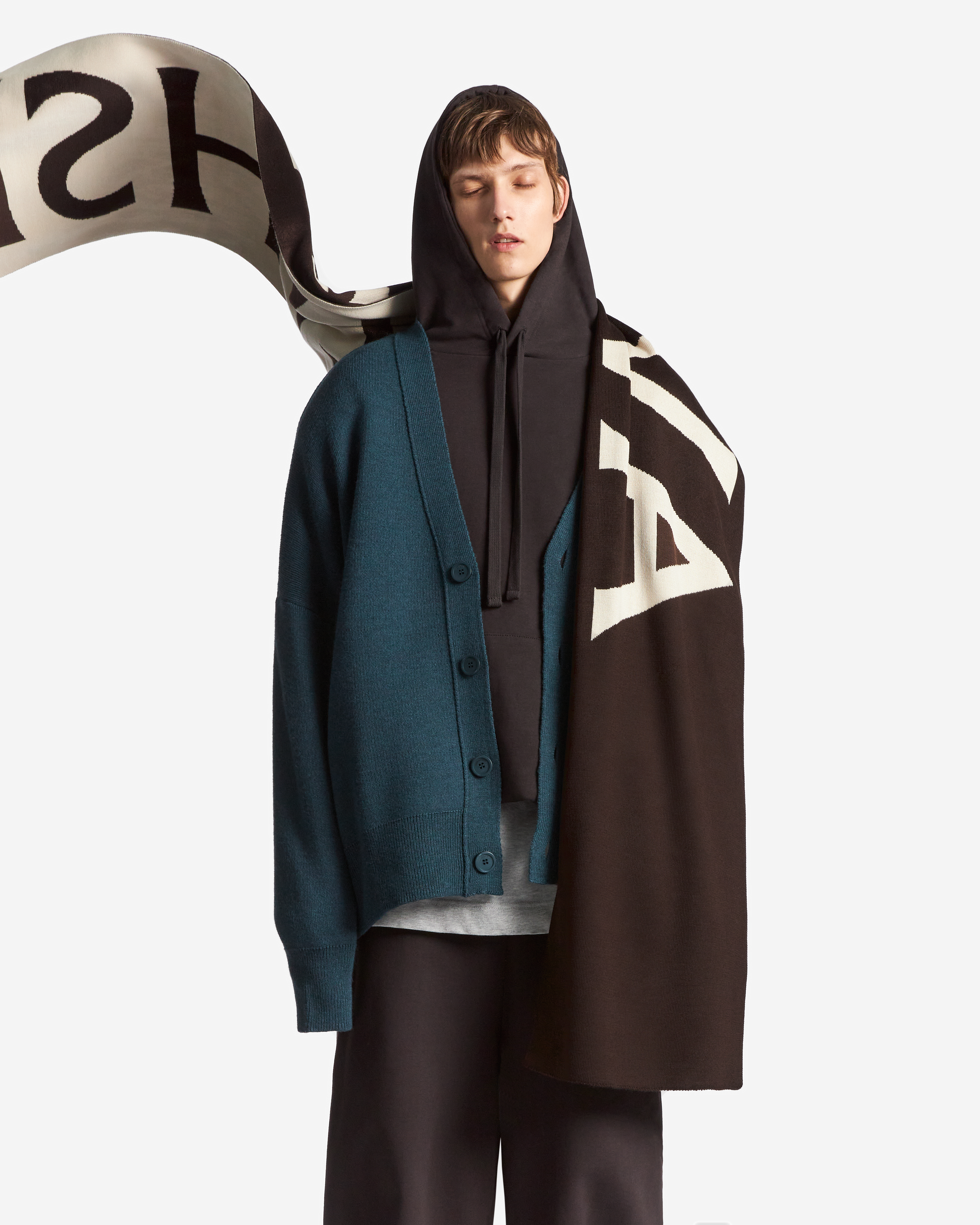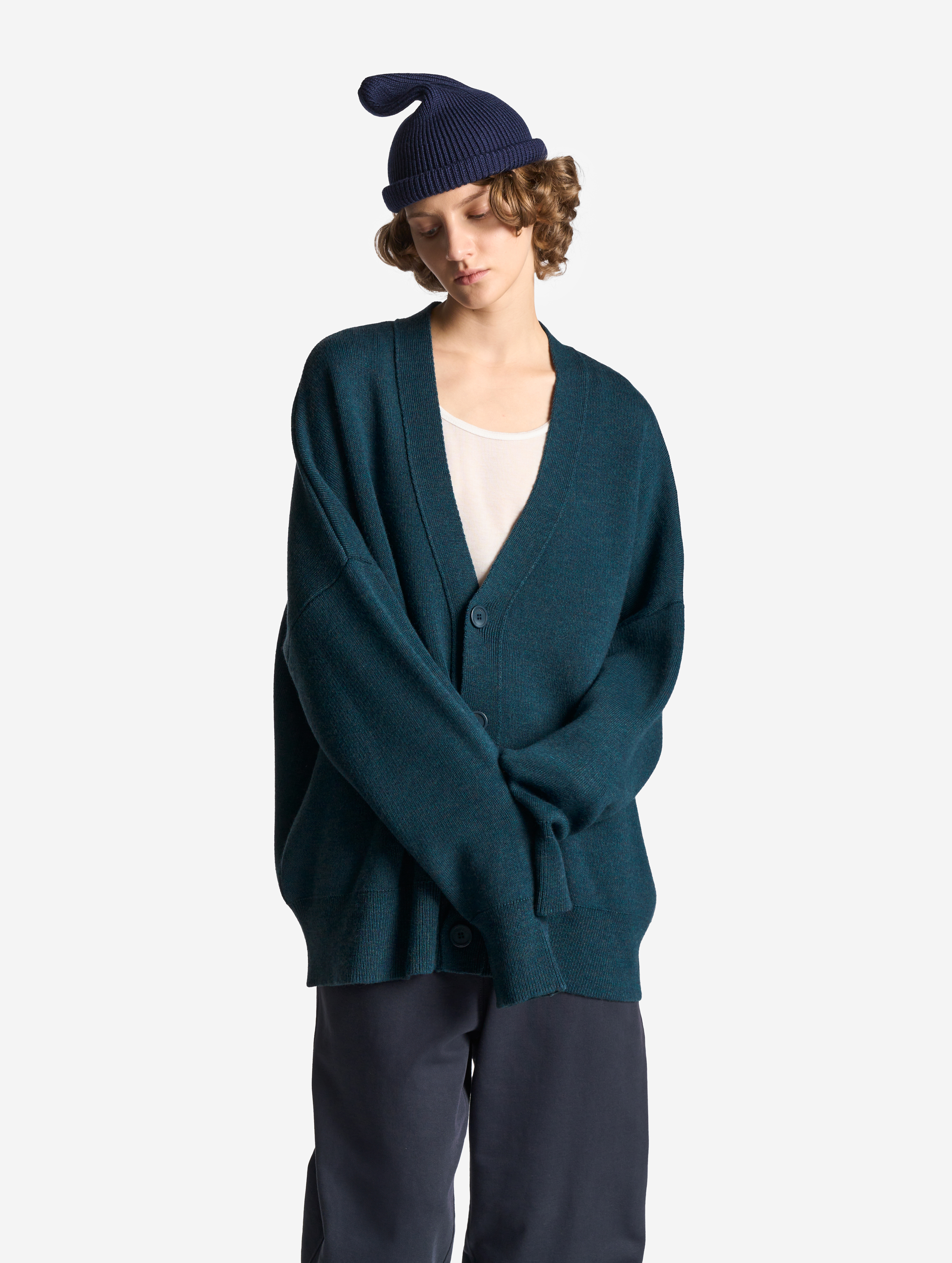 Вязаный кардиган удлиненного оверсайз-силуэта. Одинаково хорошо сидит на мужской и женской фигуре. Застегивается на роговые брендированные пуговицы. Благодаря наличию в составе акрила кардиган не пиллингуется и не деформируется со временем.