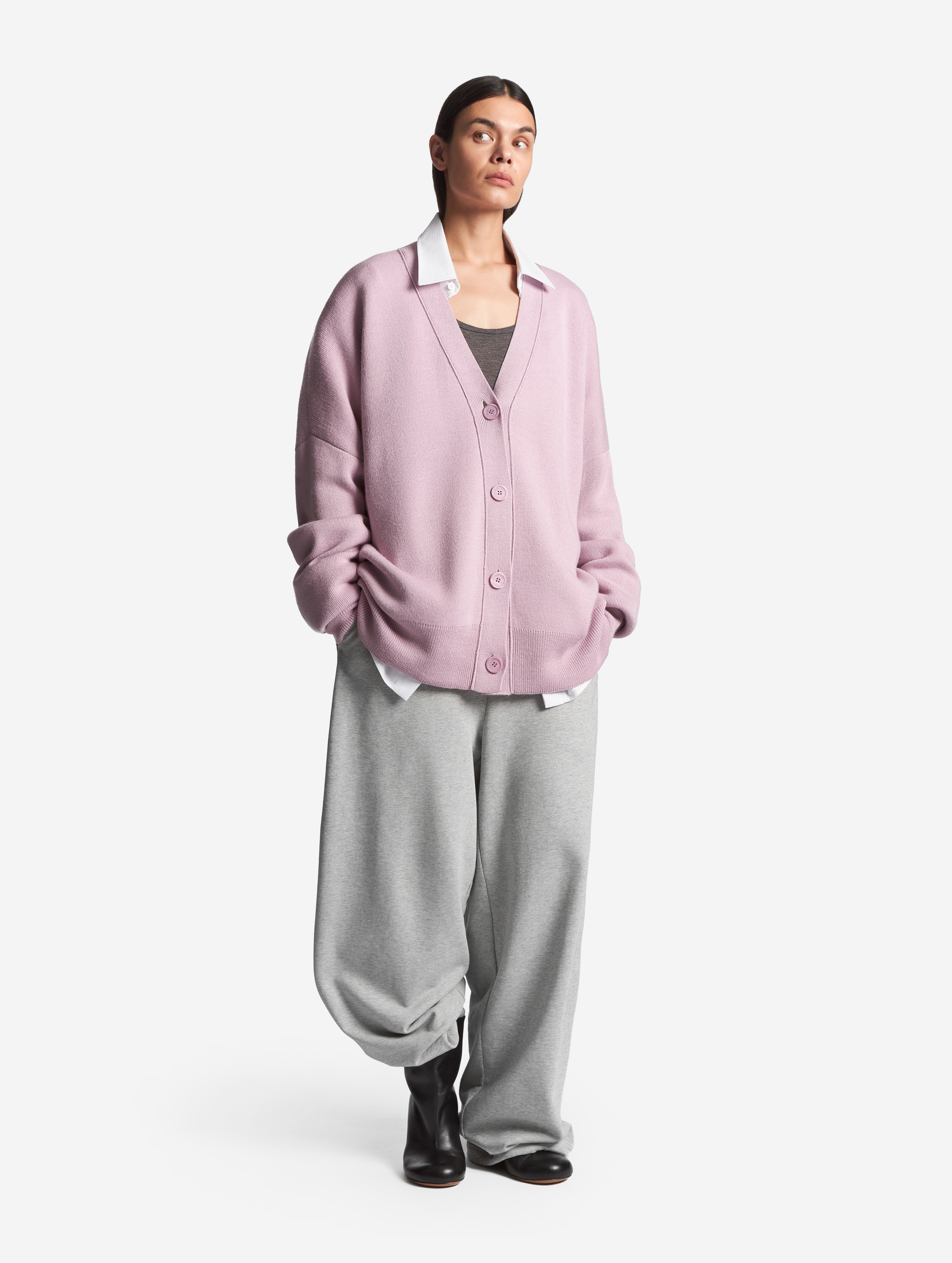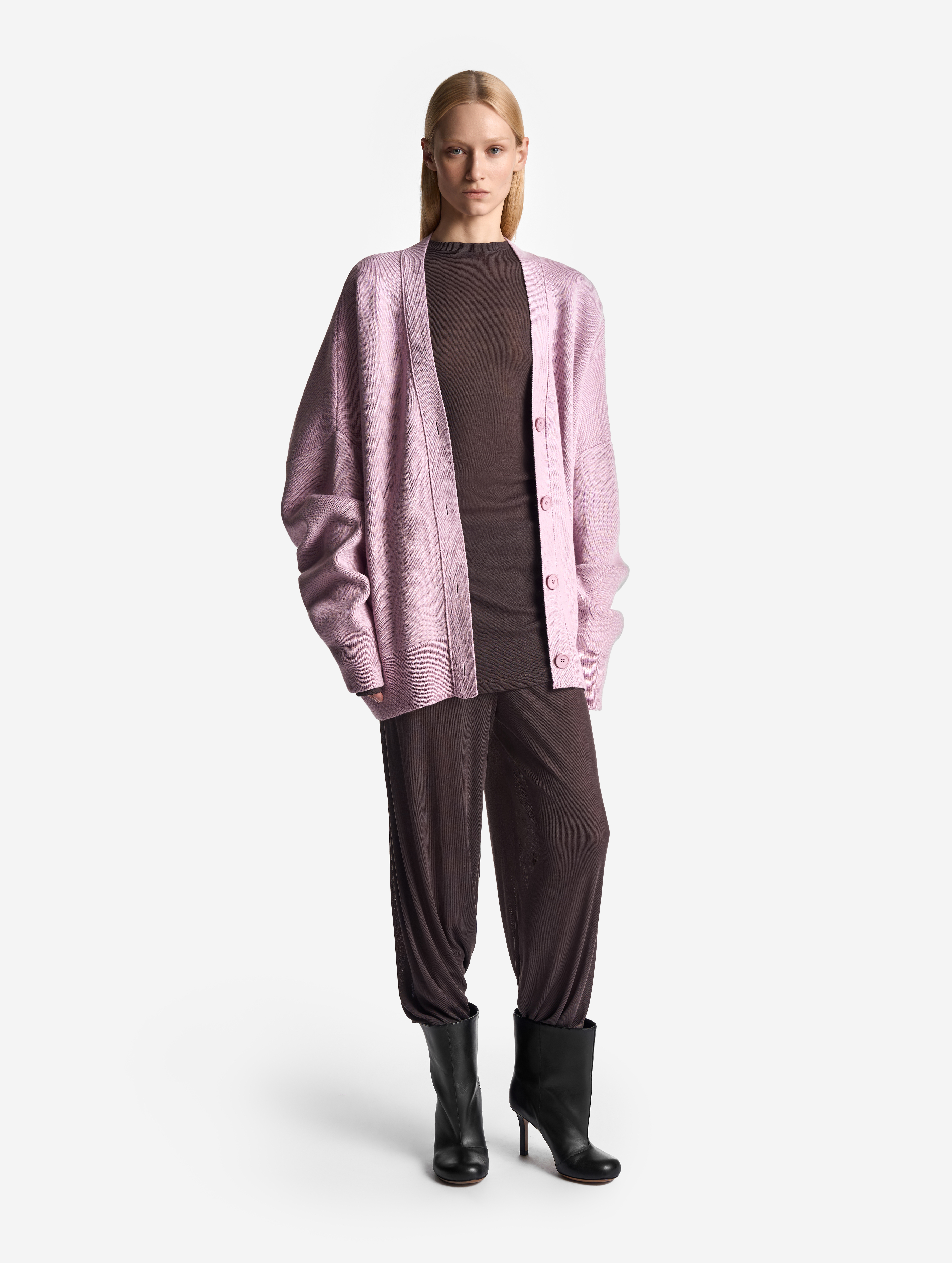 Вязаный кардиган удлиненного оверсайз-силуэта. Одинаково хорошо сидит на мужской и женской фигуре. Застегивается на роговые брендированные пуговицы. Благодаря наличию в составе акрила кардиган не пиллингуется и не деформируется со временем.