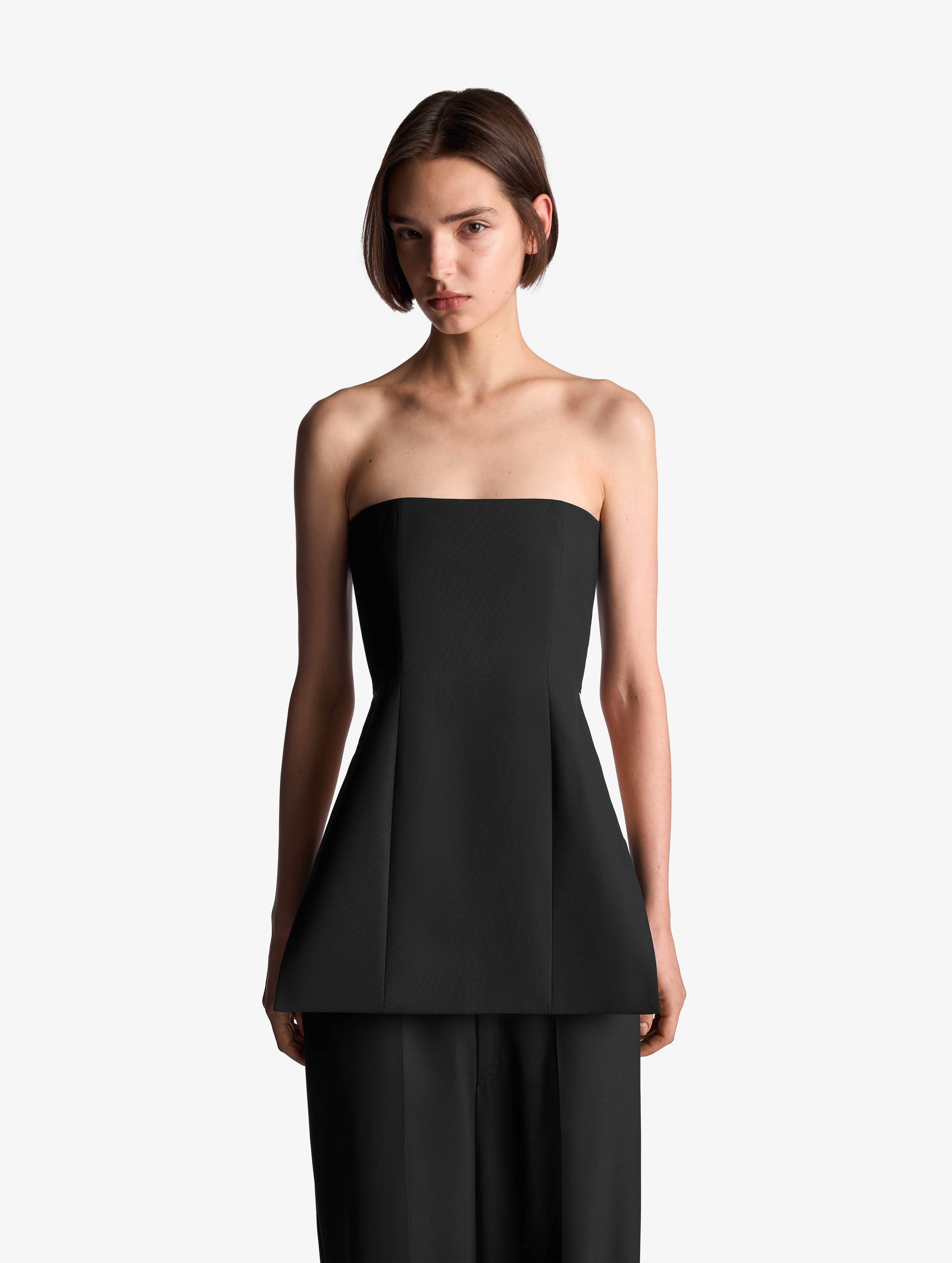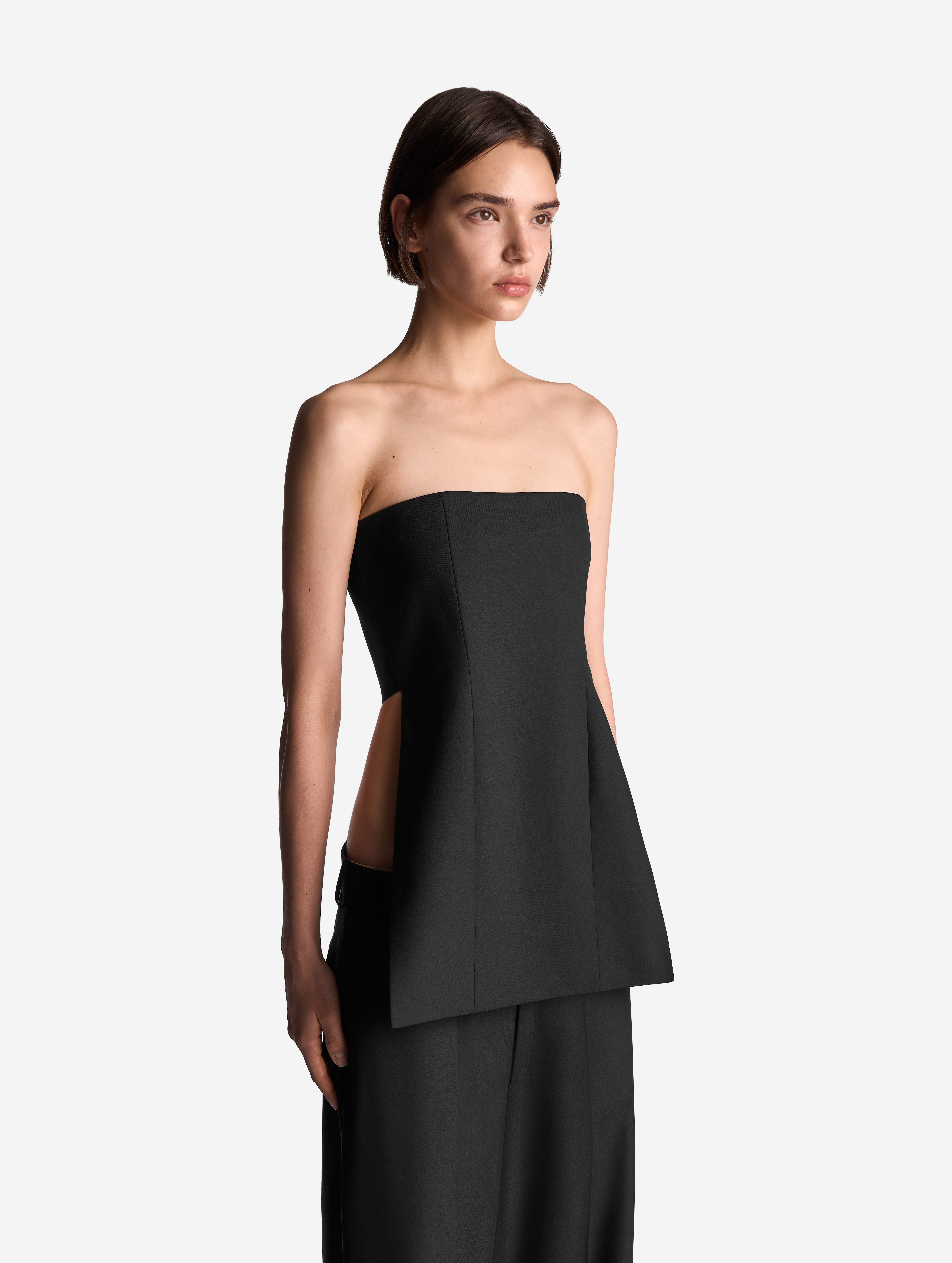 Особое внимание дизайн-команда модного Дома уделила форме и длине, при которых в корсете будет комфортно сидеть и двигаться. У изделия асимметричная конструкция: его передняя часть представляет собой силуэтное полотно с рельефными швами, а задняя — широкую эластичную резинку. Мы позаботились о том, чтобы корсет было приятно носить и на голое тело, поэтому область груди обработана подкладом из хлопка. Изделие застегивается на молнию и крючок.