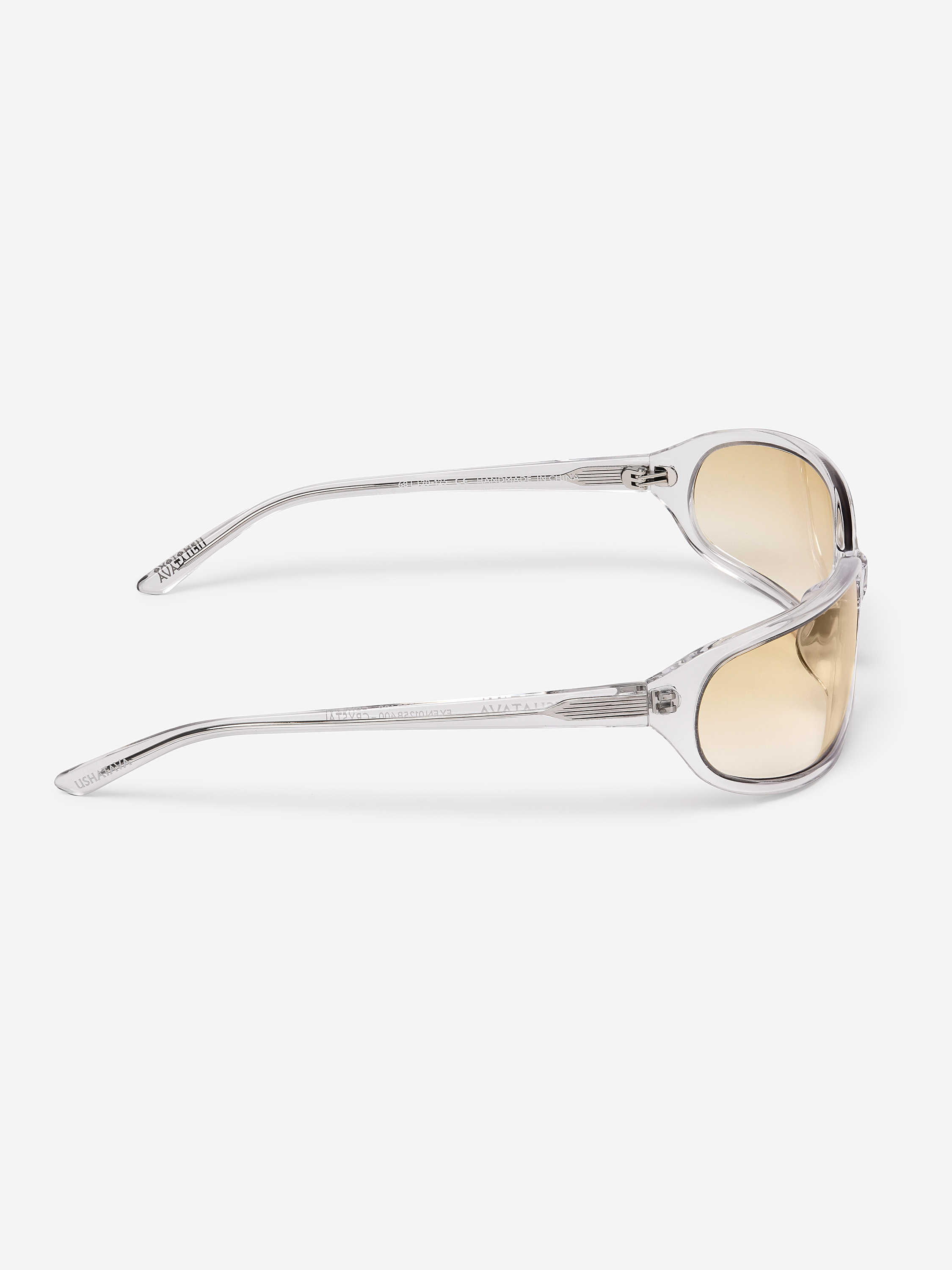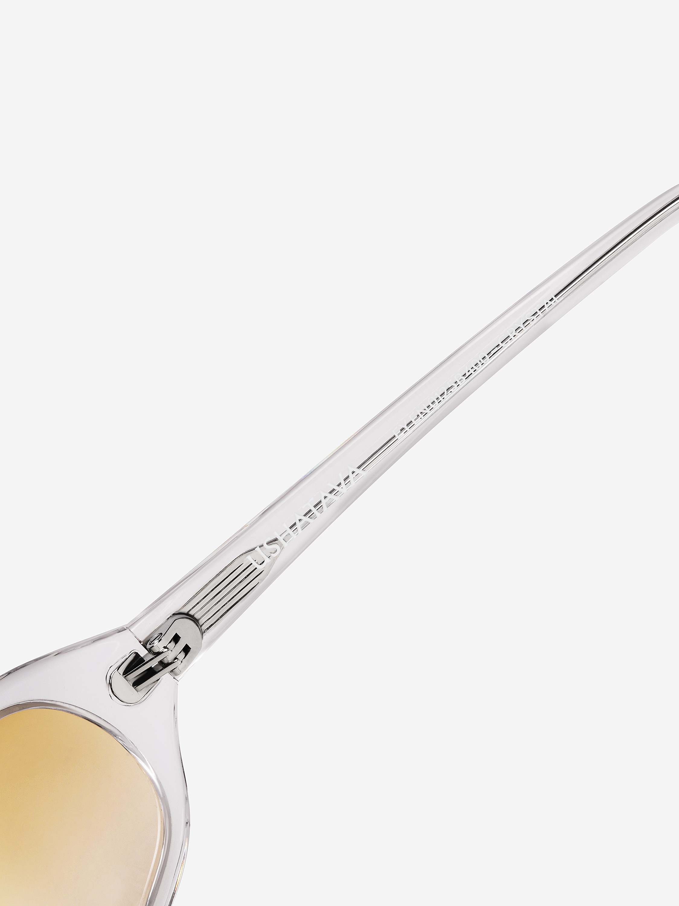 Модель выполнена в трех цветах: черном, коричневом и прозрачном. Каждому варианту соответствует свой оттенок нейлоновой линзы. Этот материал легче стекла, устойчив к механическим воздействиям и подходит на каждый день. Такие линзы соответствуют стандарту UV400 и полностью блокируют UVA-, UVB- и UVC-лучи, надежно защищая от яркого солнца. На широкие дужки нанесена гравировка с логотипом модного Дома.
