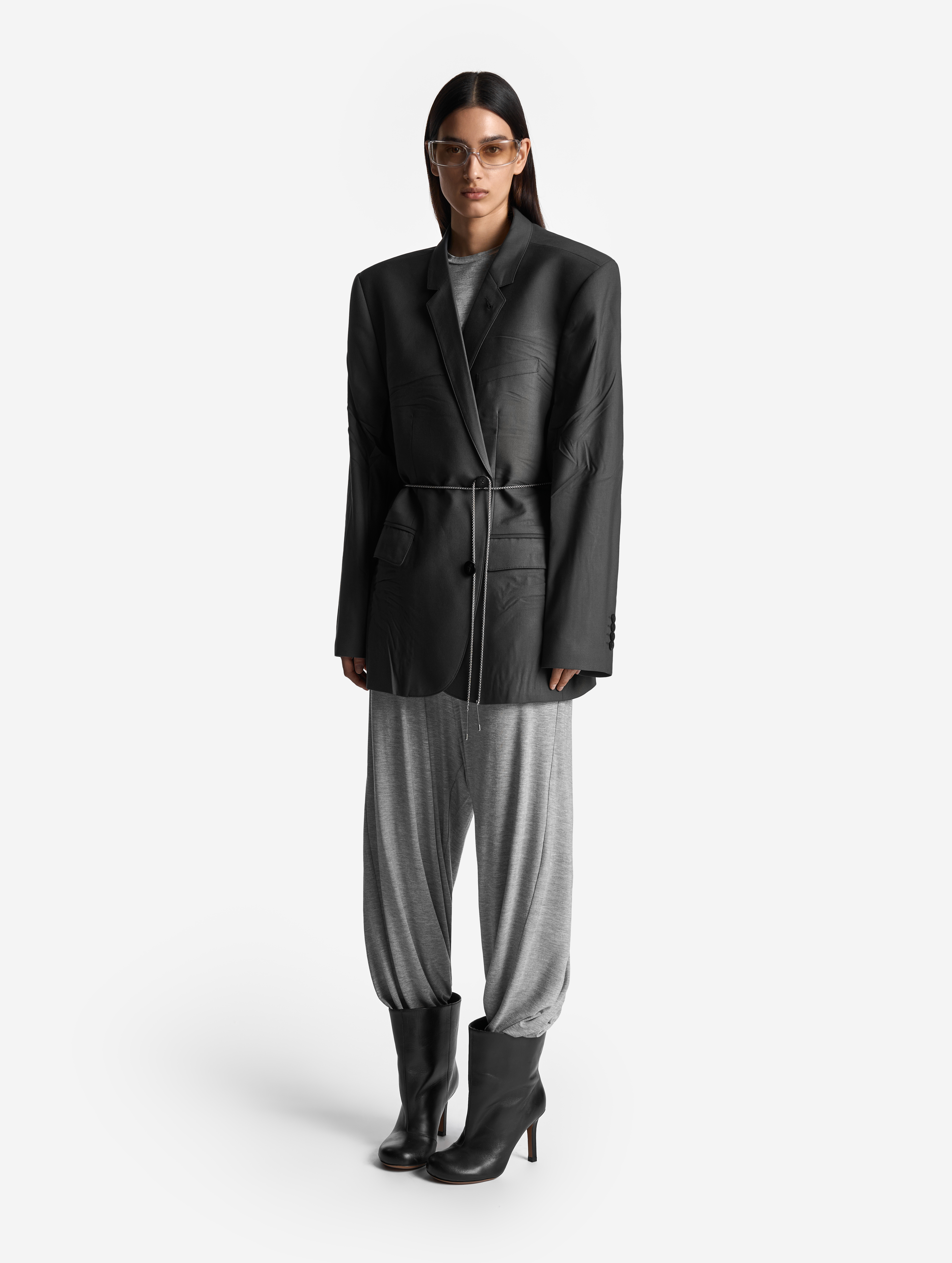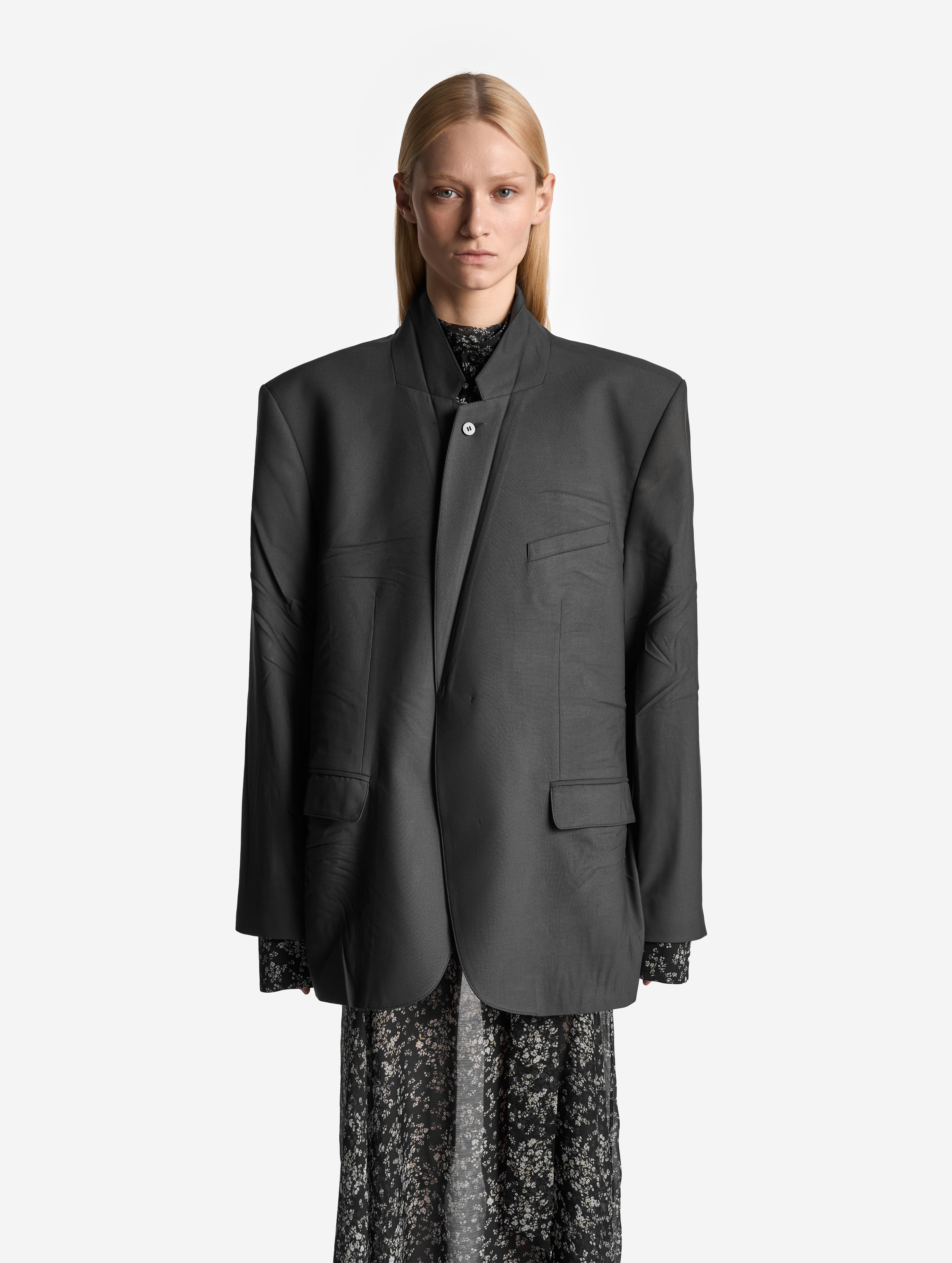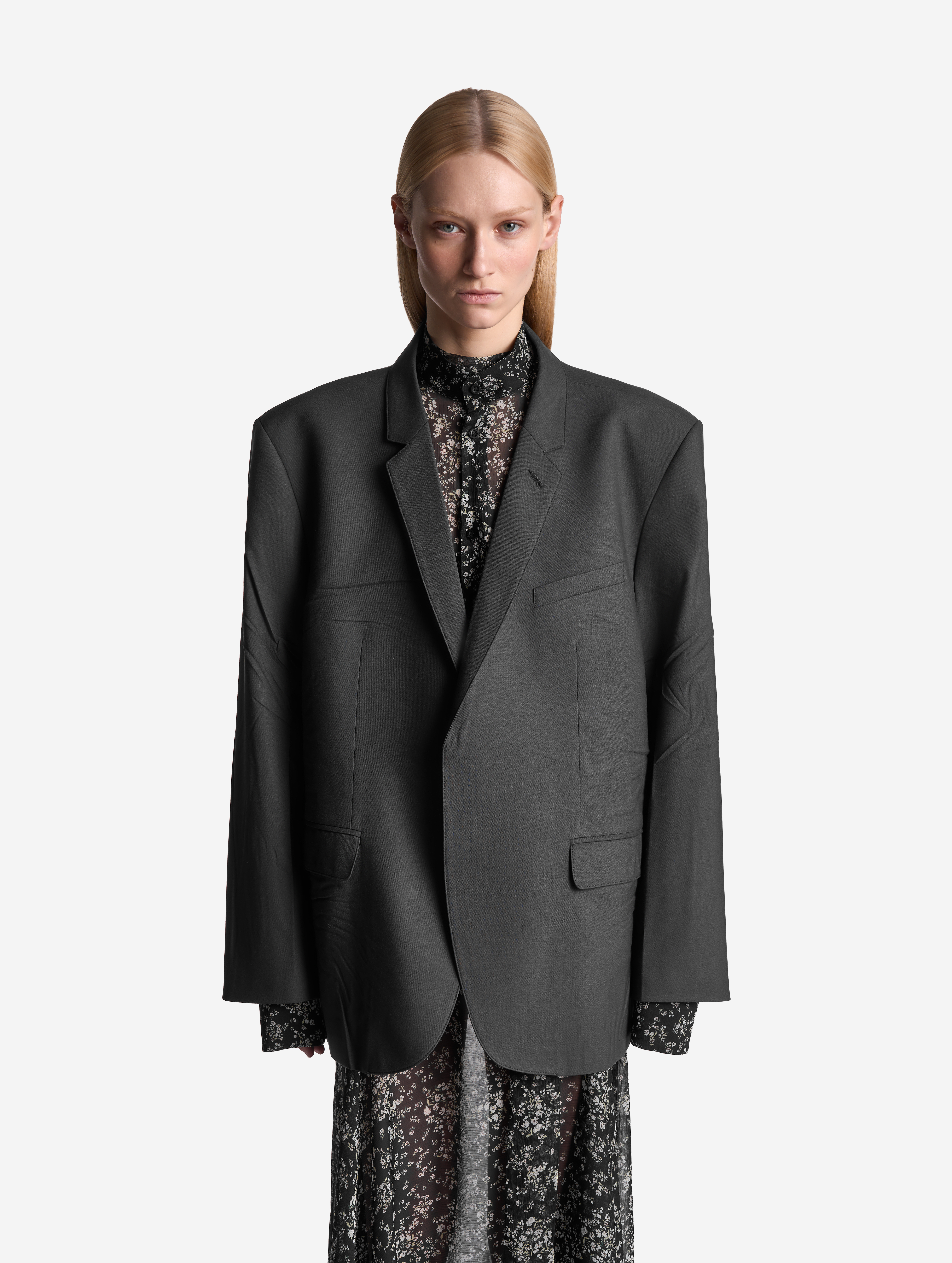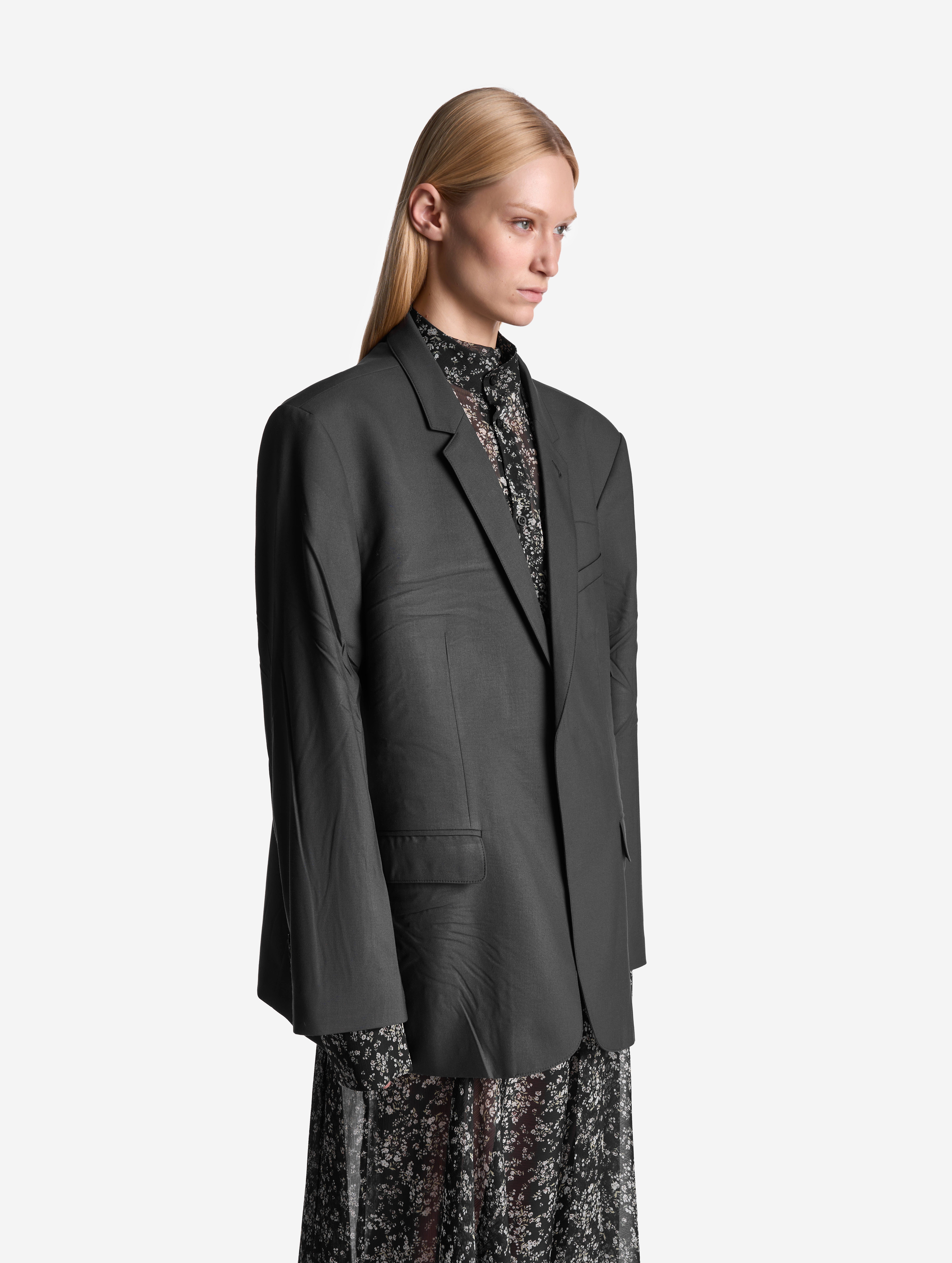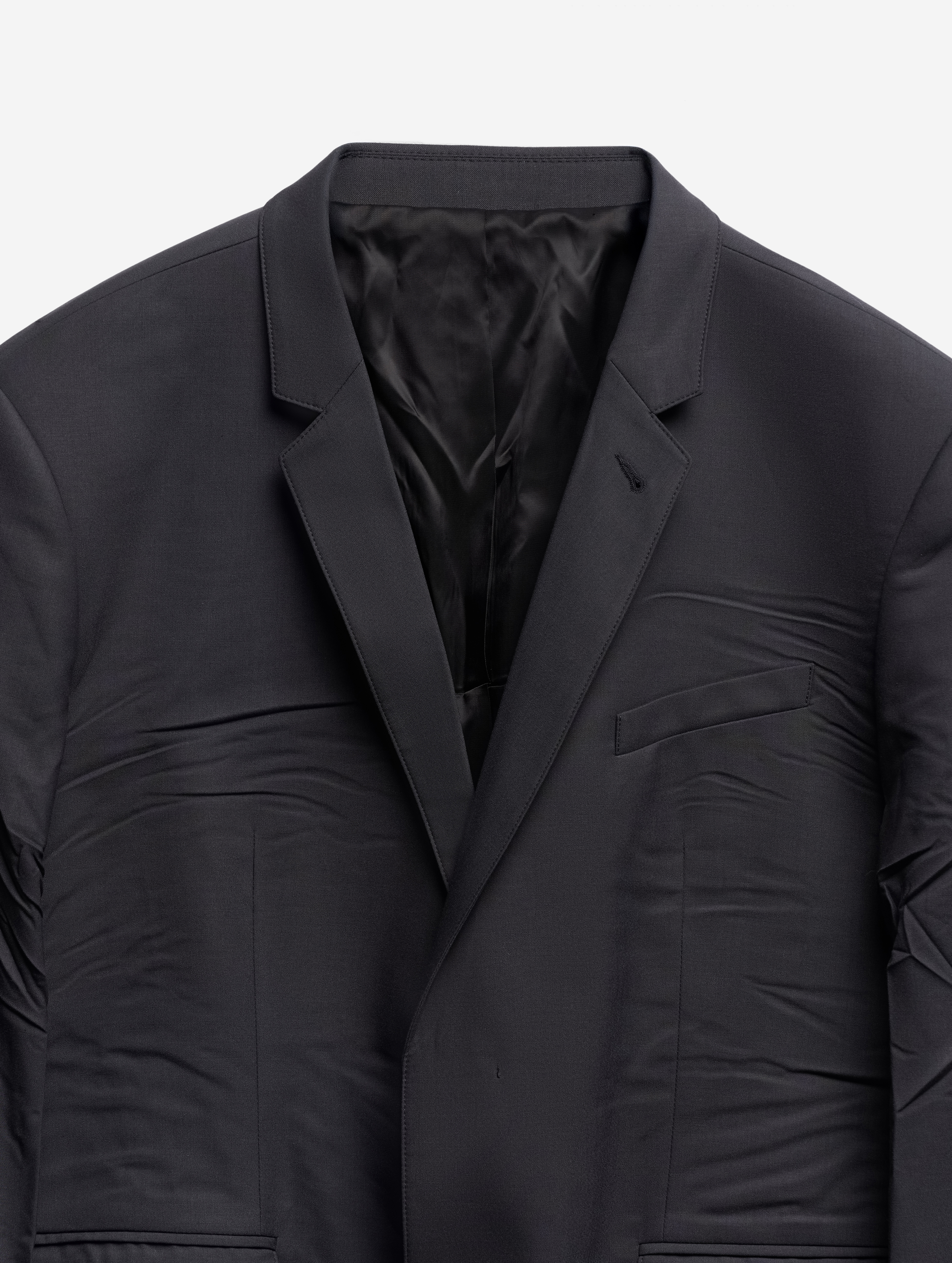 Relaxed Fit — новое понятие в словаре линии Garderobe. В переводе c английского слово relaxed означает «расслабленный», что хорошо описывает силуэт этого пиджака. Готовое изделие прошло испытание горячим прессом: в самых подвижных местах — на спинке, локтях и по плечевому поясу — присутствуют заломы, близкие к анатомическим. Нам хотелось создать эффект следов жизни, которые часто появляются на любимых вещах. Этот пиджак будет интуитивно подстраиваться под вашу фигуру, будто он всегда был с вами. Внутри изделие полностью обработано легкой подкладкой. По спинке сделана шлица. Есть два кармана с клапанами и один нагрудный — по канонам портновского мастерства он застрочен.