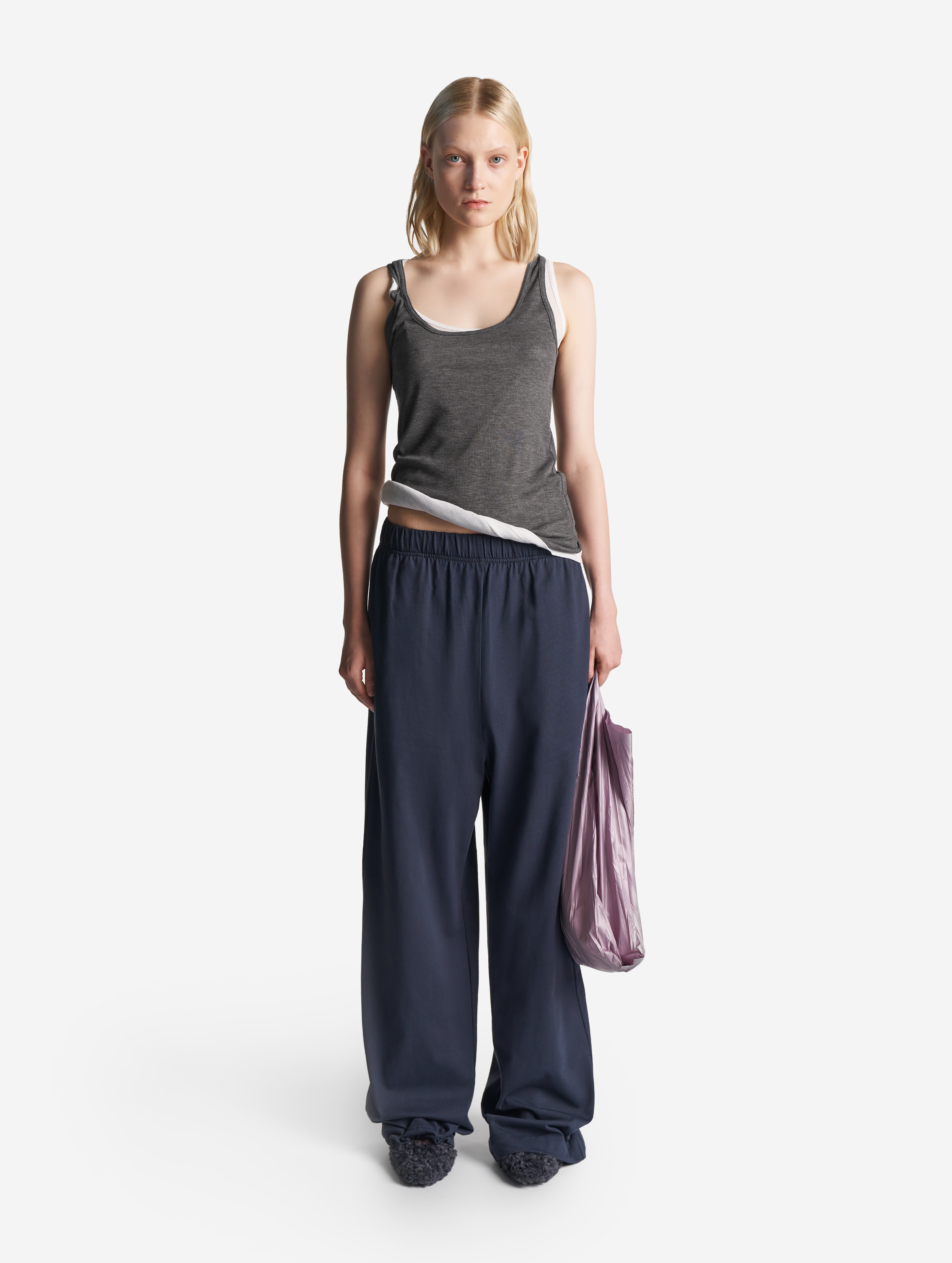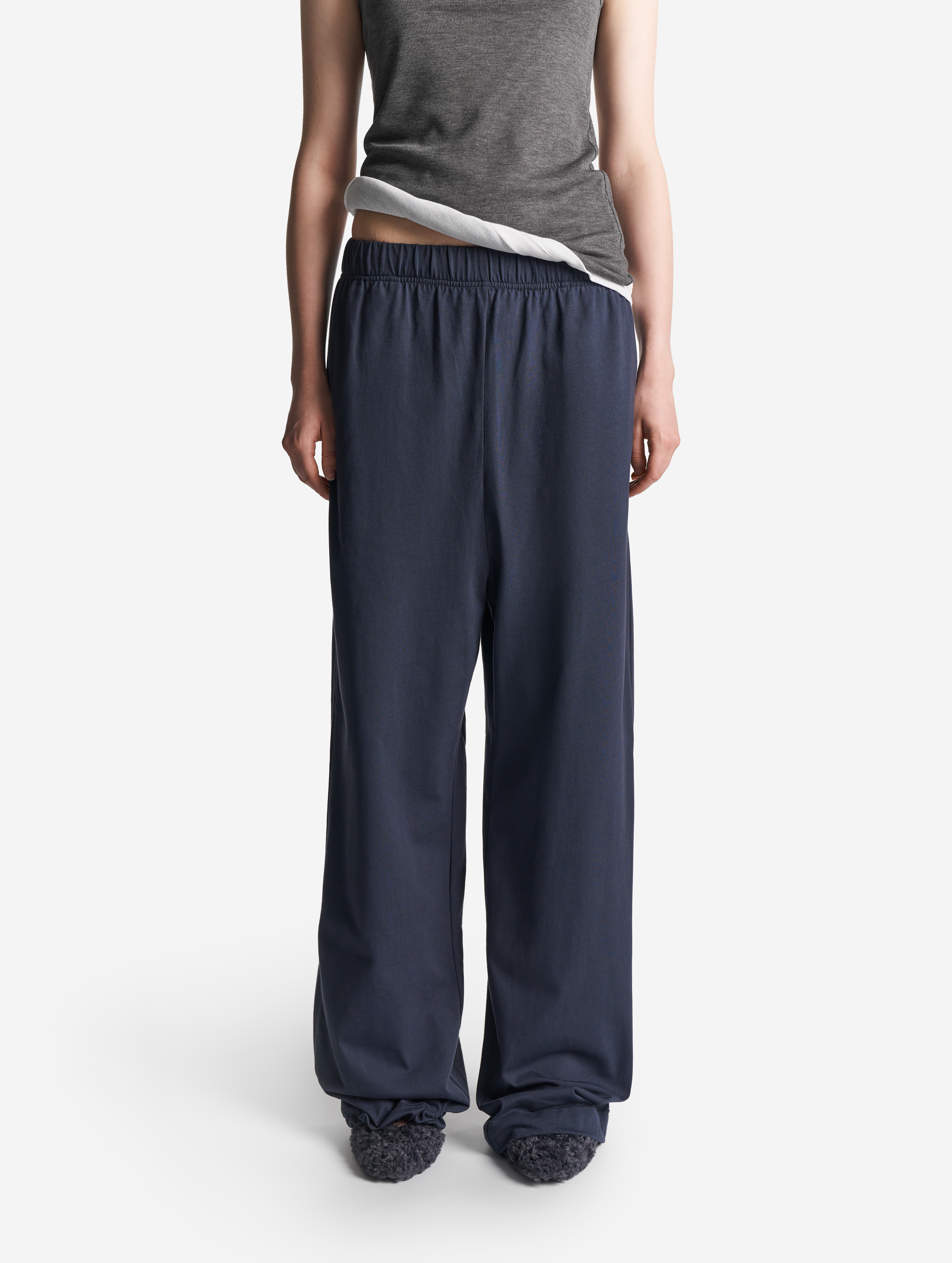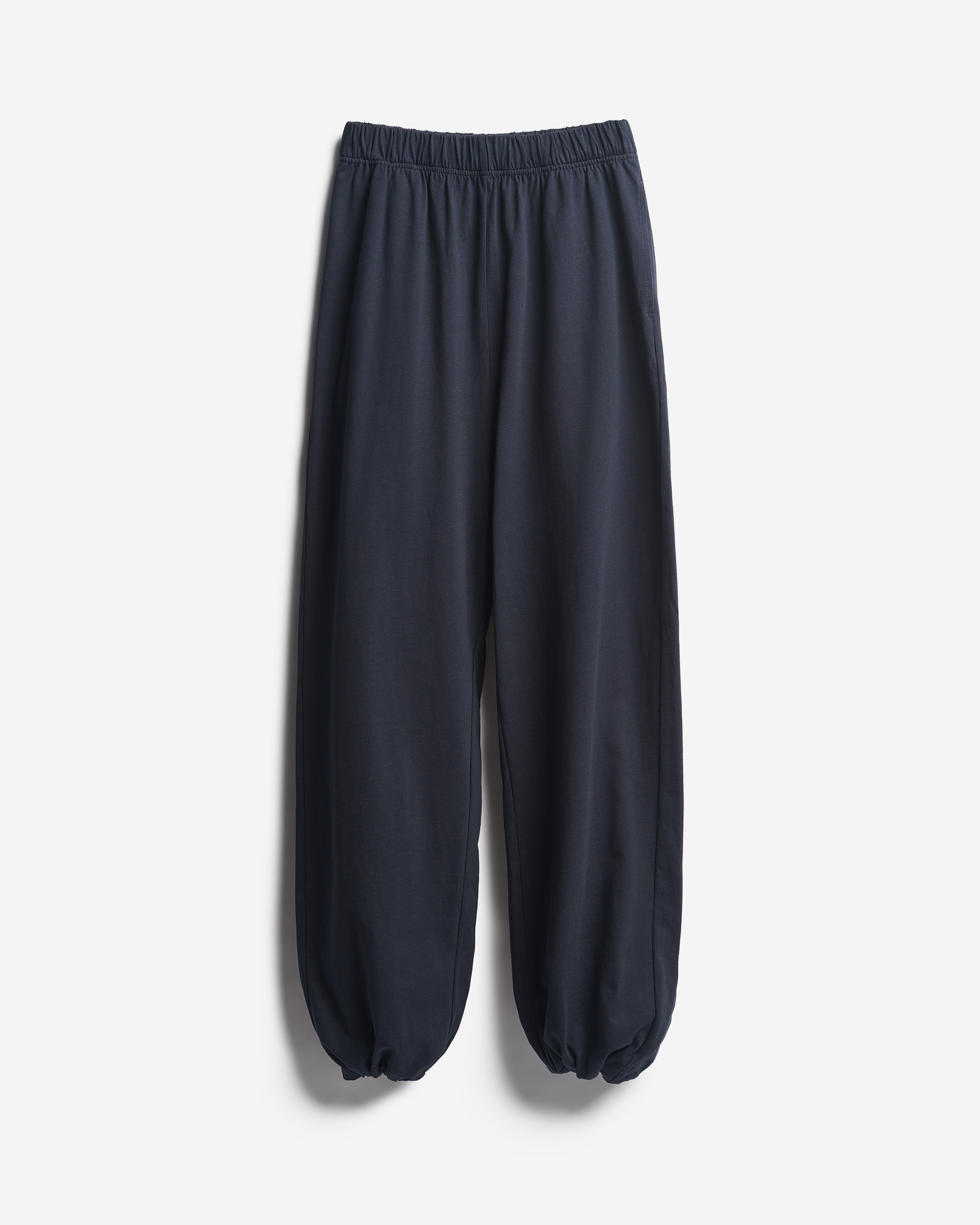 У этих брюк свободная универсальная посадка: они рассчитаны как на женскую, так и на мужскую фигуру. Их длину можно регулировать — для этого низ брючин обработан резинкой со стоппером. Есть два глубоких кармана. Пояс на широкой эластичной резинке, а для дополнительной фиксации посадки предусмотрен шнурок, который завязывается с внутренней стороны.