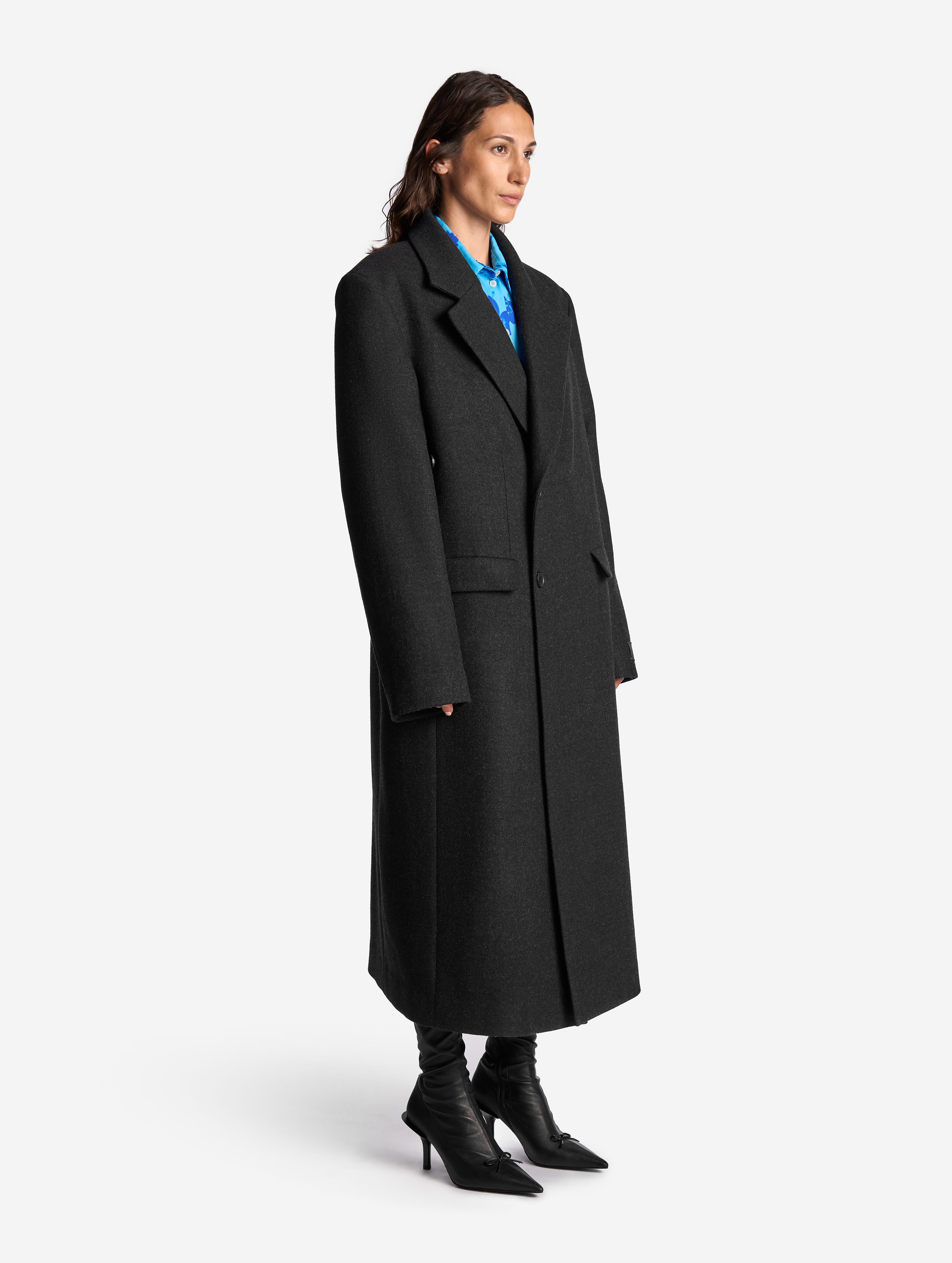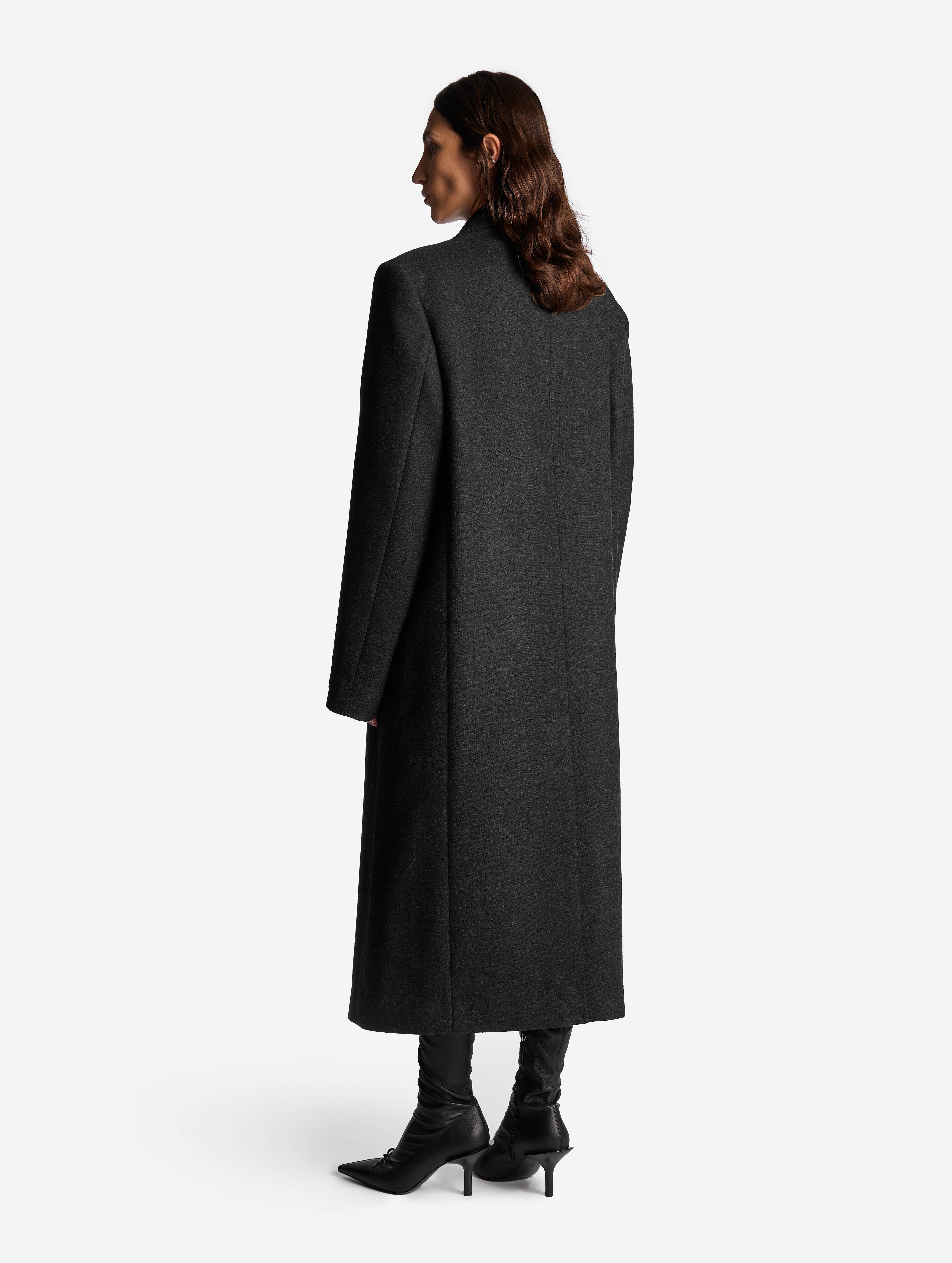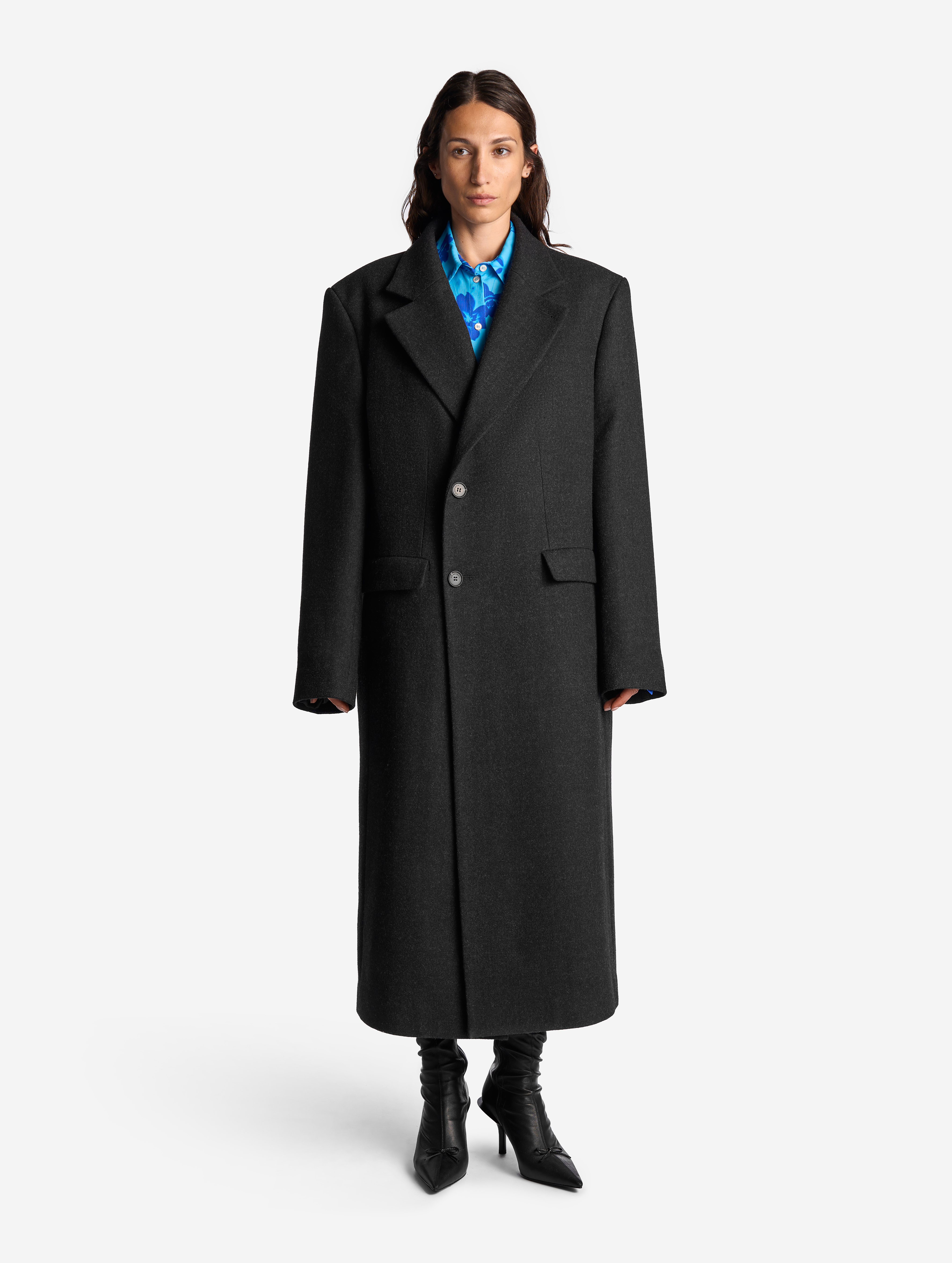 Классическое строгое пальто с английским воротником — знаковая модель Ushatava. Мы выпустили его обновленную версию. Теперь у пальто более универсальная посадка, рассчитанная в том числе на мужскую фигуру. У него прямой оверсайз-силуэт и смещенная застежка. Также у пальто есть дополнительная пуговица, позволяющая приталивать силуэт. Еще одна пуговица пришита к лацкану — теперь воротник можно фиксировать в закрытом положении для защиты от ветра. Изделие полностью обработано подкладом.