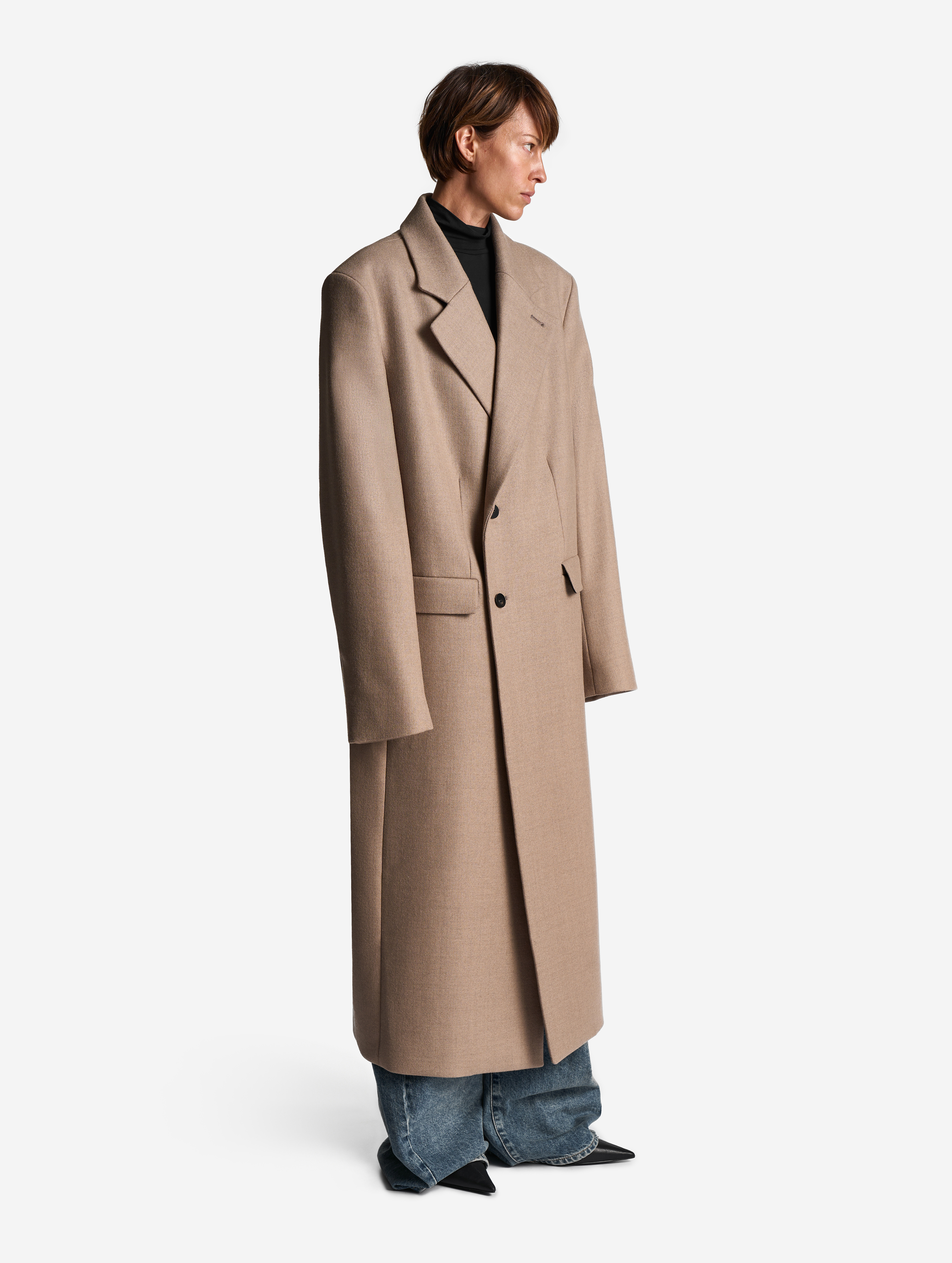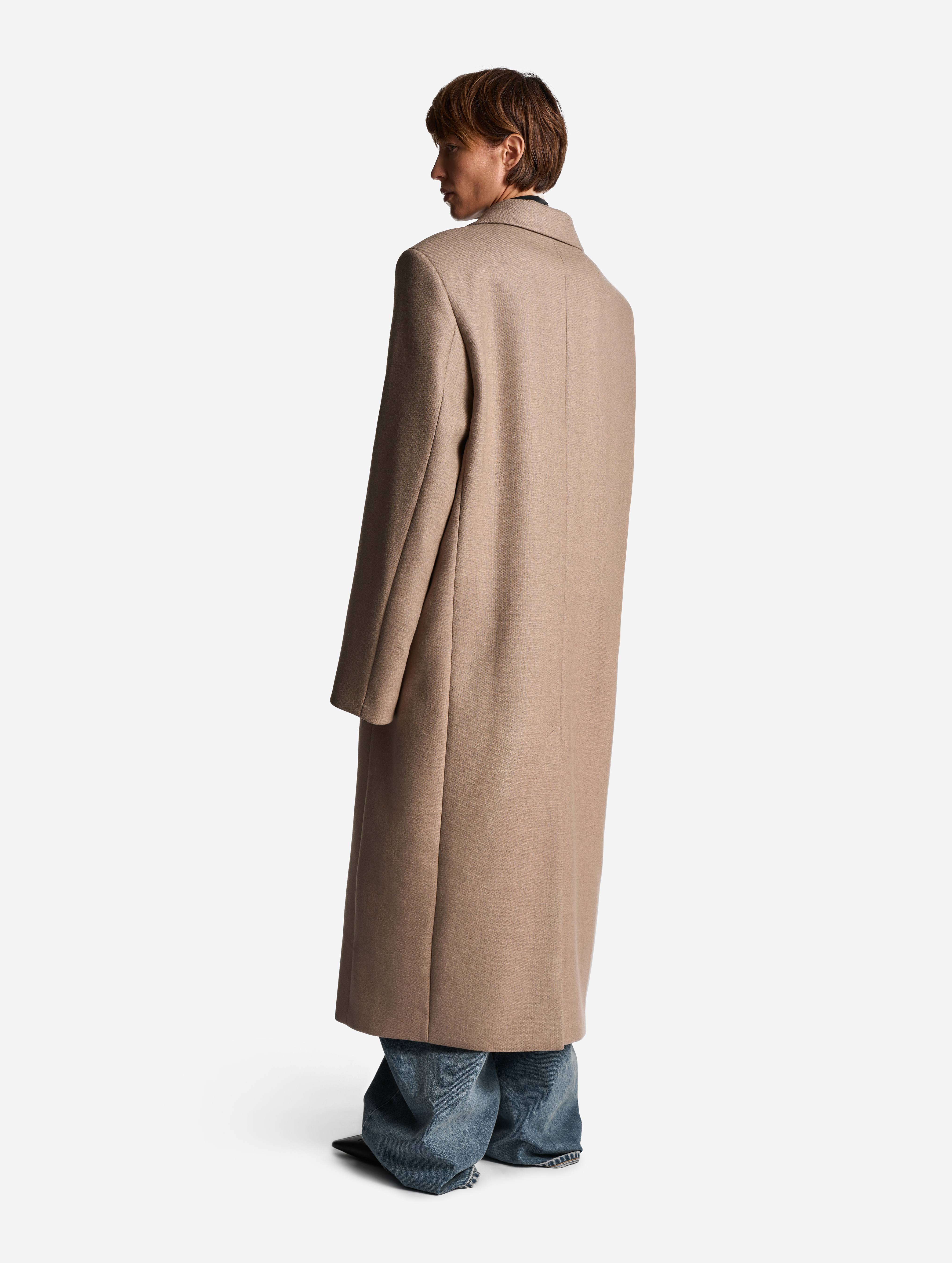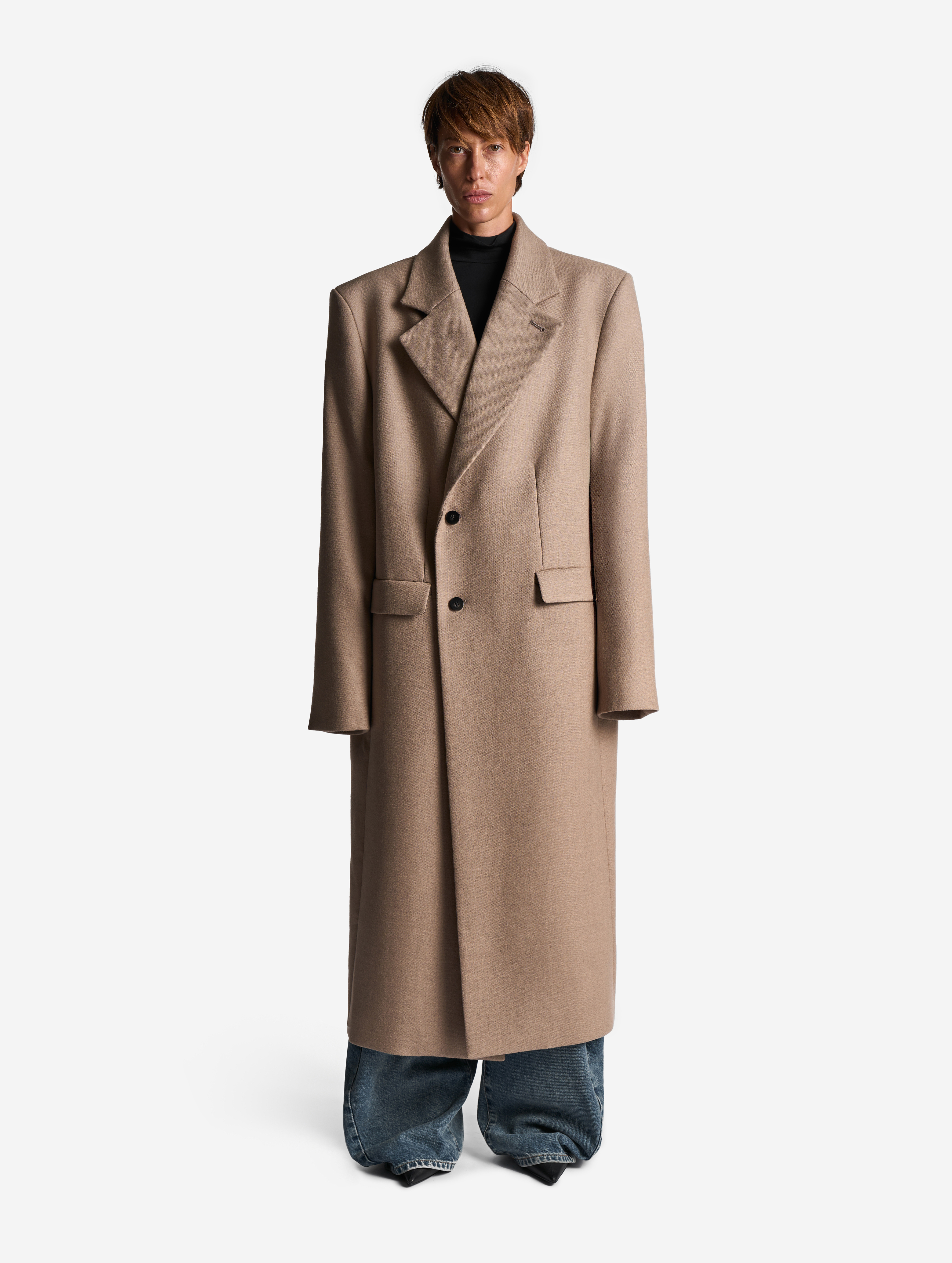 Классическое строгое пальто с английским воротником — знаковая модель Ushatava. Мы выпустили его обновленную версию. Теперь у пальто более универсальная посадка, рассчитанная в том числе на мужскую фигуру. У него прямой оверсайз-силуэт и смещенная застежка. Также у пальто есть дополнительная пуговица, позволяющая приталивать силуэт. Еще одна пуговица пришита к лацкану — теперь воротник можно фиксировать в закрытом положении для защиты от ветра. Изделие полностью обработано подкладом.