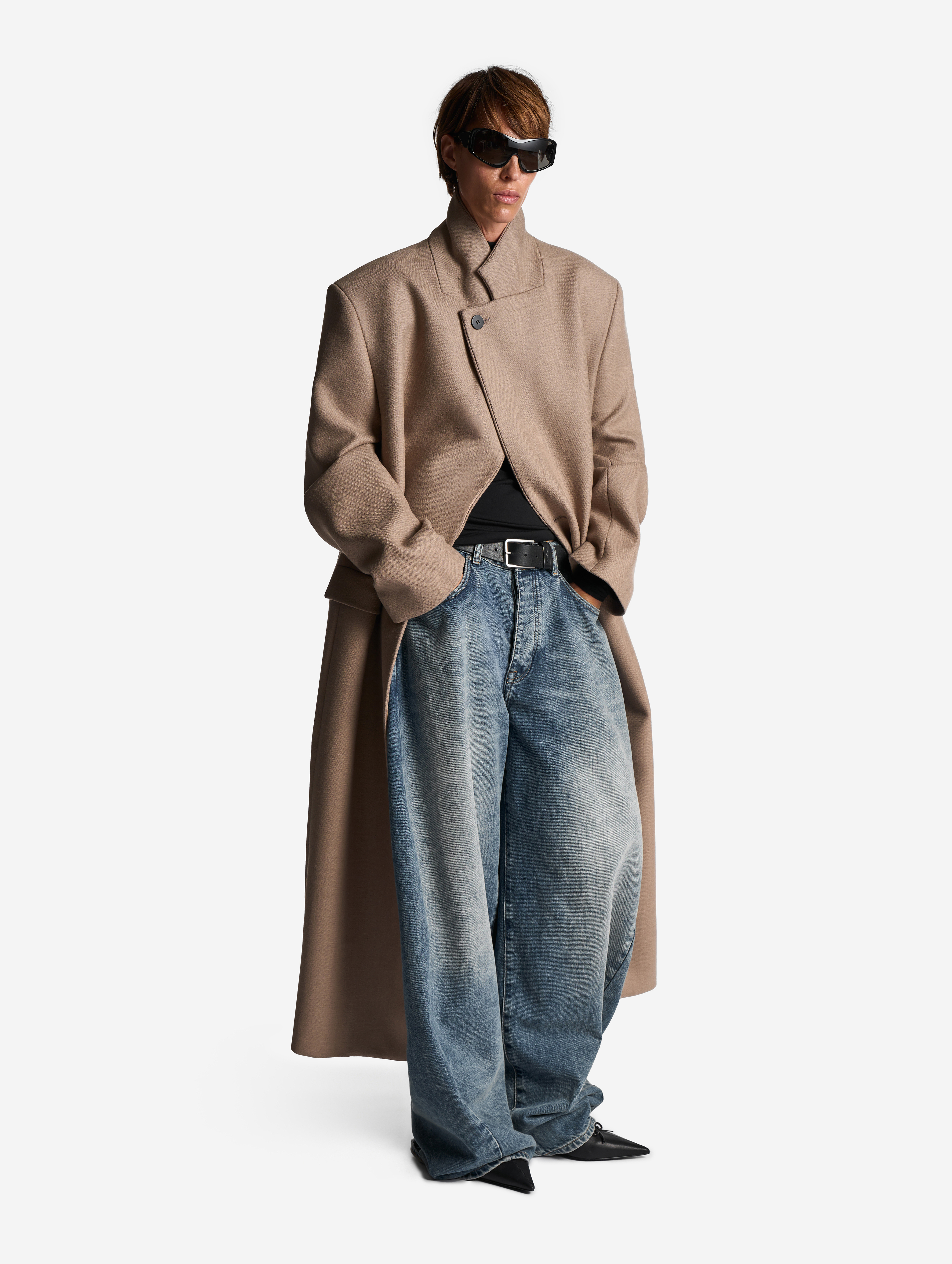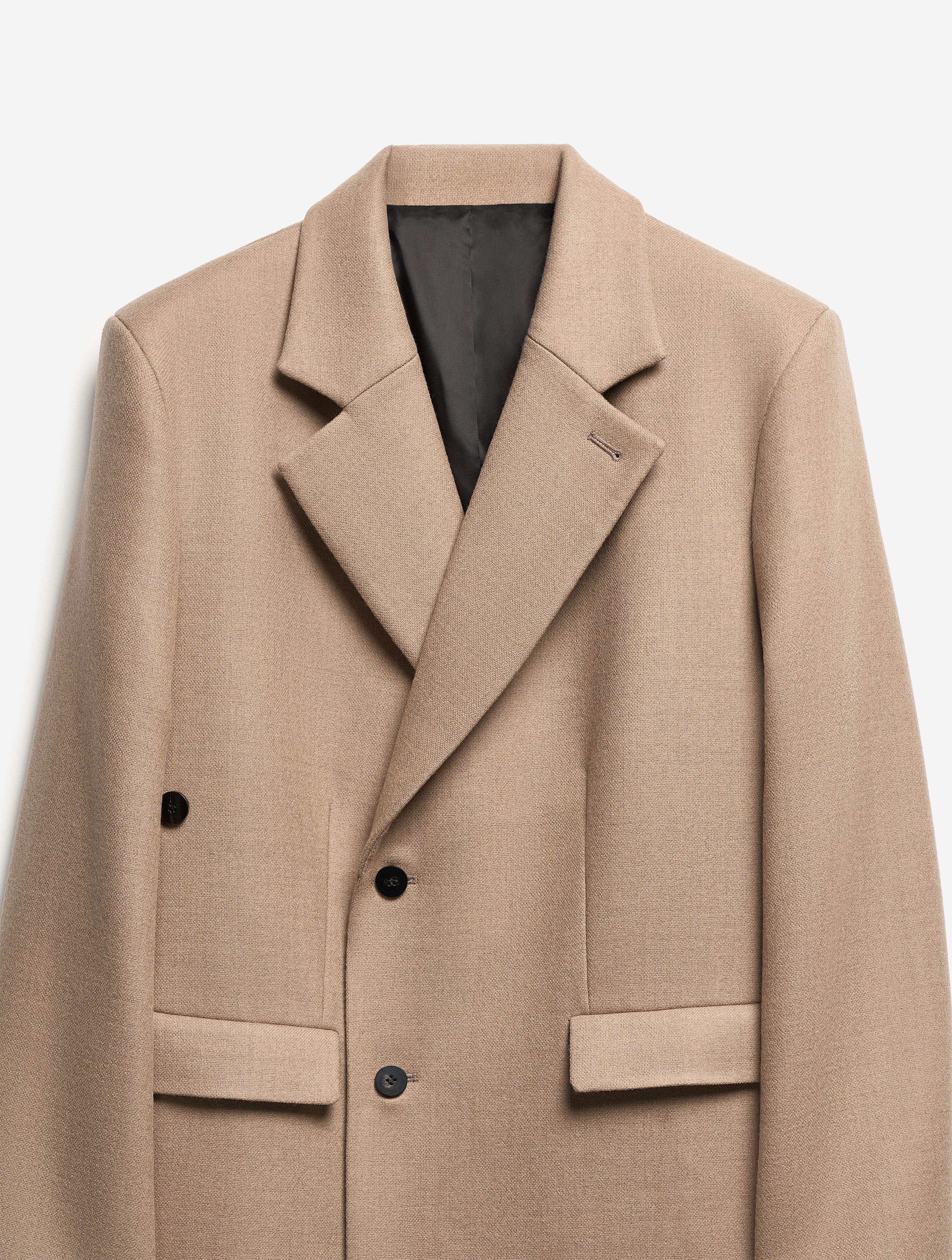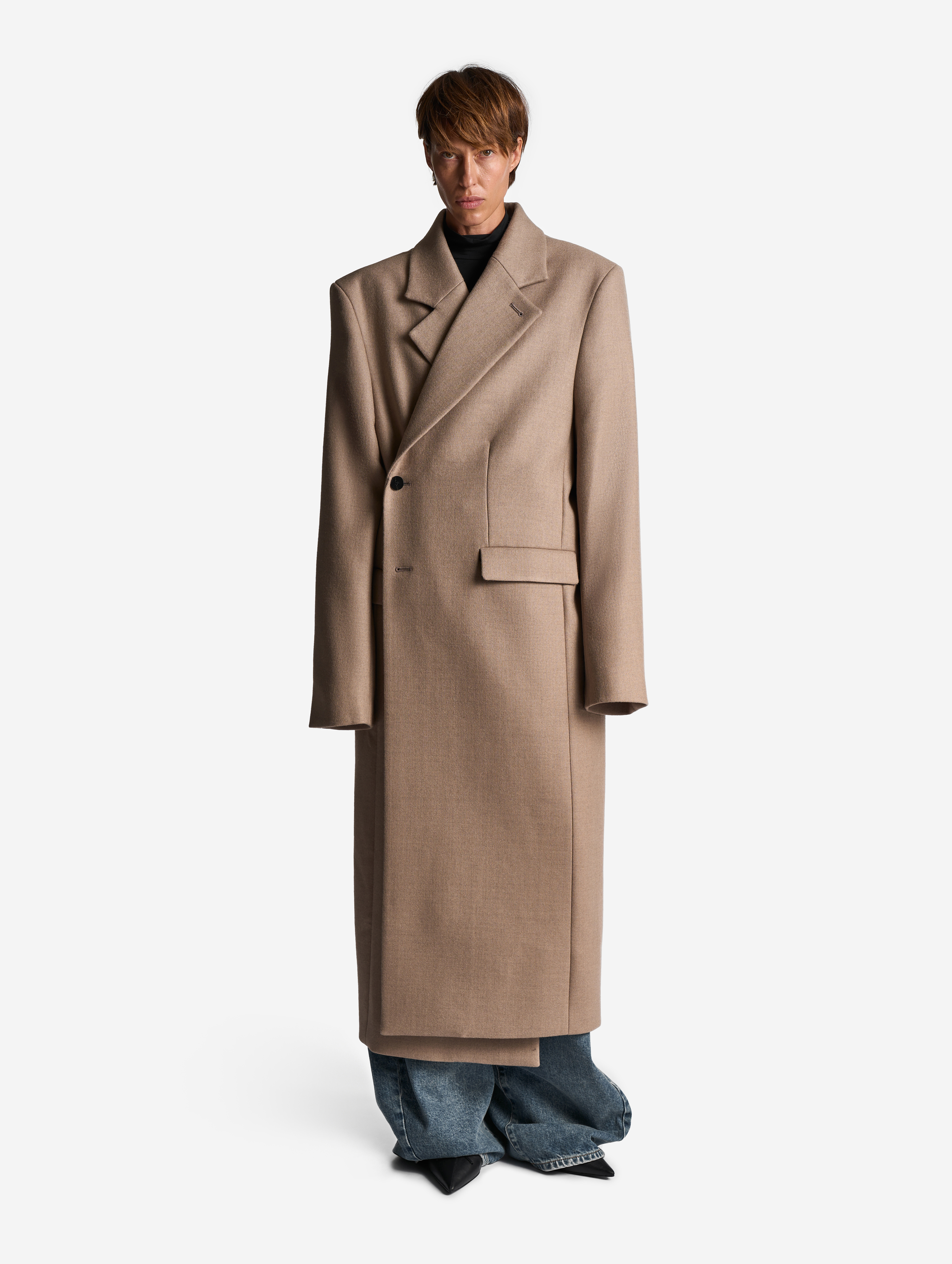 Классическое строгое пальто с английским воротником — знаковая модель Ushatava. Мы выпустили его обновленную версию. Теперь у пальто более универсальная посадка, рассчитанная в том числе на мужскую фигуру. У него прямой оверсайз-силуэт и смещенная застежка. Также у пальто есть дополнительная пуговица, позволяющая приталивать силуэт. Еще одна пуговица пришита к лацкану — теперь воротник можно фиксировать в закрытом положении для защиты от ветра. Изделие полностью обработано подкладом.