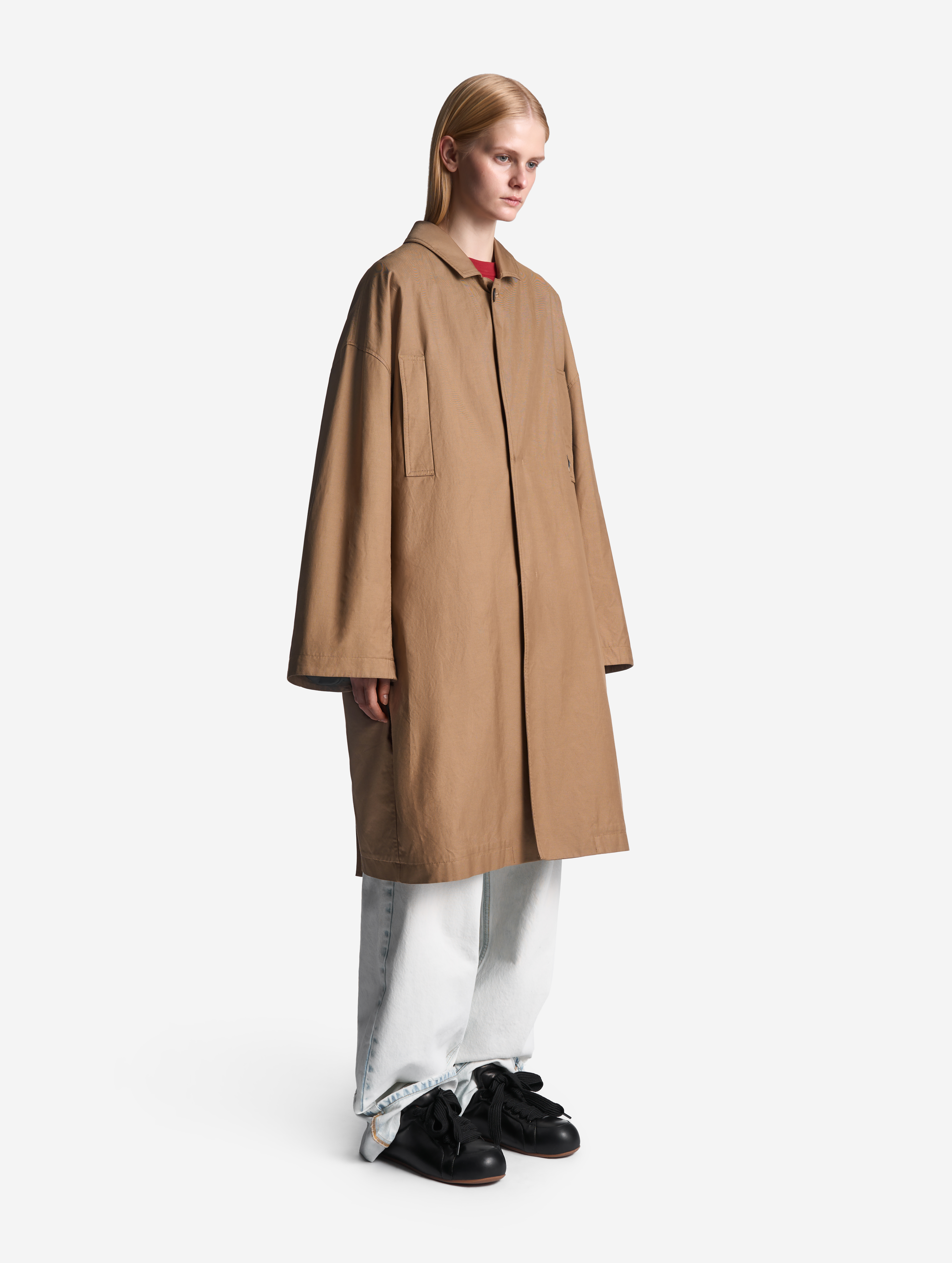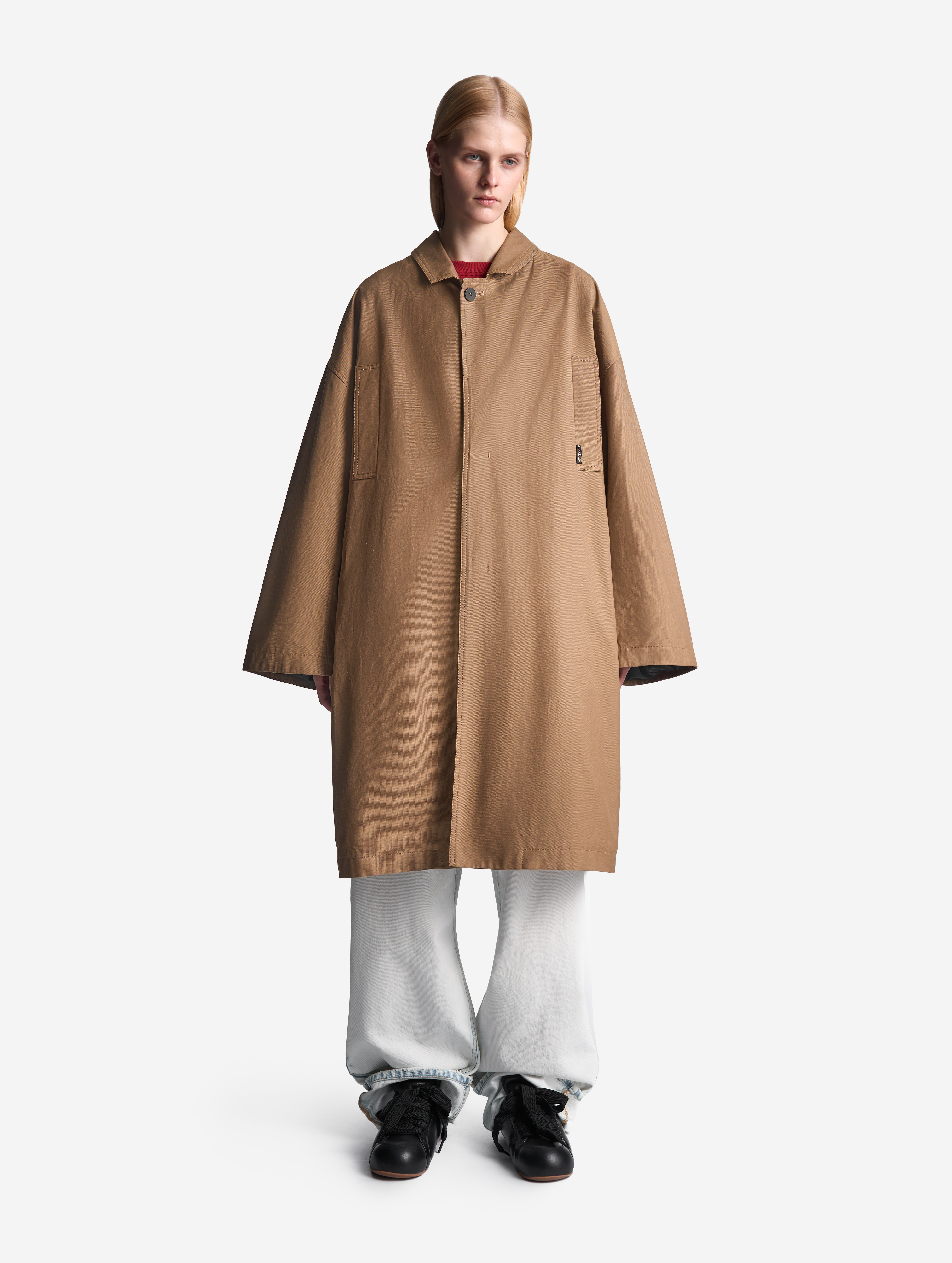 Среди бестселлеров модного Дома встречаются изделия, получившие название за сходство с какой-либо буквой. Силуэт этого двухстороннего тренча в профиль напоминает вид латинской буквы D. У него спущенное, сглаженное плечо и широкие удлиненные рукава. Изделие выполнено из плащевой хлопковой ткани с водоотталкивающей пропиткой. Внутри тренч обработан частичной подкладкой из мягкой фланели, которая почти не мнется.