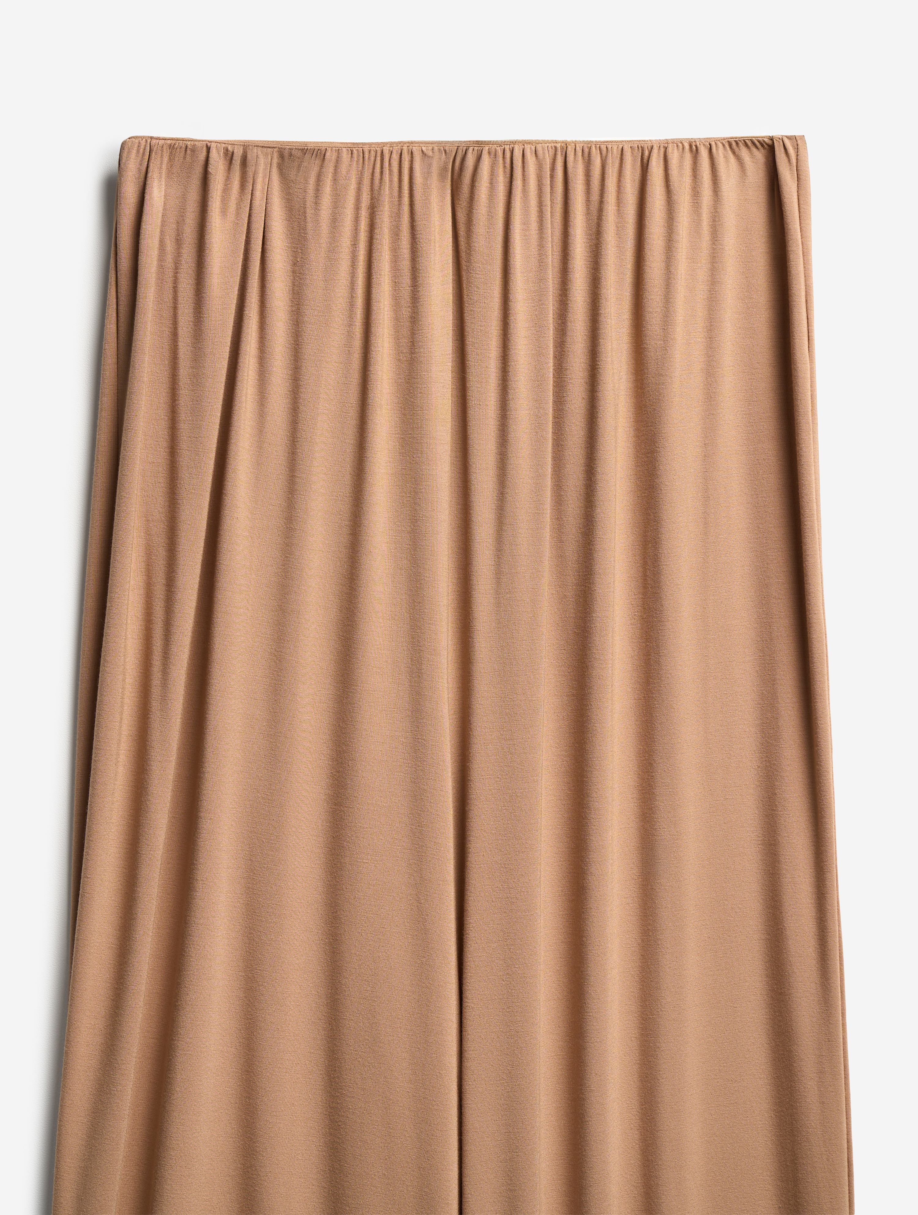Прямые широкие брюки — классический силуэт модного Дома. У этих брюк свободная универсальная посадка: они рассчитаны как на женскую, так и на мужскую фигуру. Изделие выполнено из вискозного трикотажа: он мягкий, гладкий, приятен для тела, хорошо тянется и не мнется. Пояс на широкой эластичной резинке.