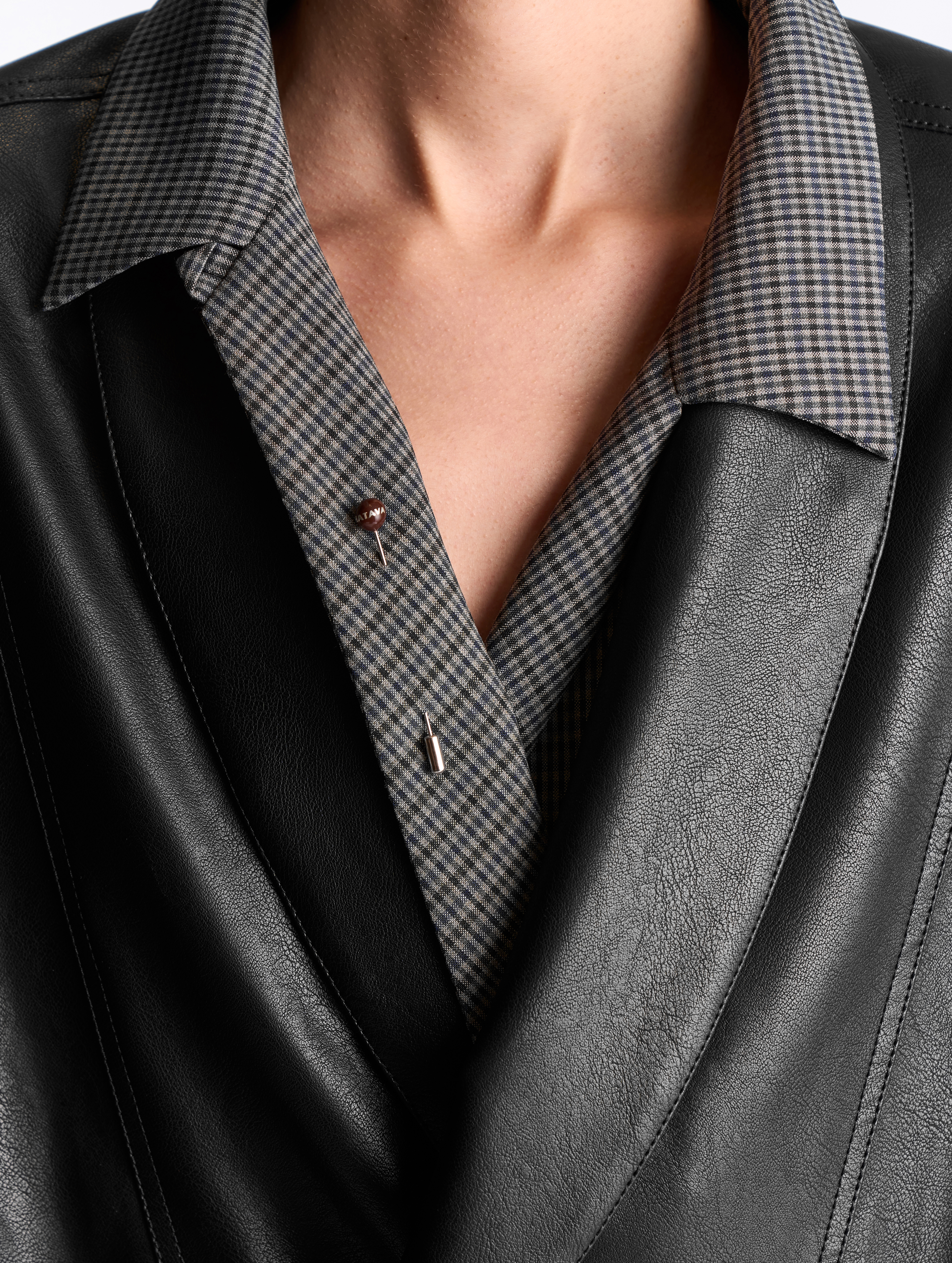 Булавка — это простейший портновский инструмент. С ее помощью можно соединить фрагменты ткани, образовать складку, обездвижить материю или просто украсить образ. В коллекции Garderobe SS25 булавка состоит из стальной иглы и цветного наконечника с контрастным тиснением Ushatava. Мы позиционируем это изделие как украшение, которое не теряет своей функциональности.