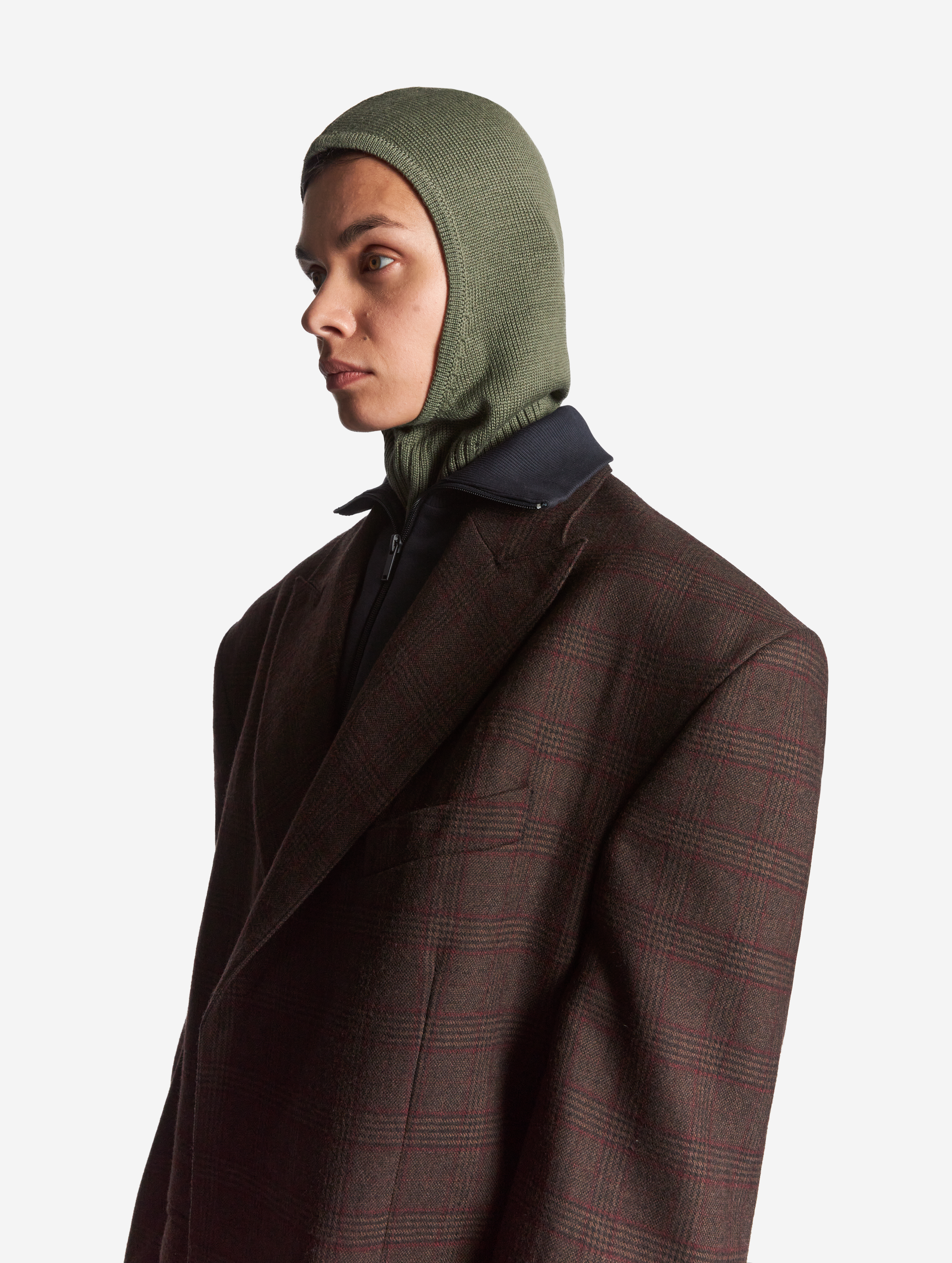 Знаковая модель Ushatava. Капор был разработан как альтернатива шапкам и шарфам. Также он выполняет функцию теплого аксессуара для верхней одежды без воротника и капюшона. Надевается через голову.