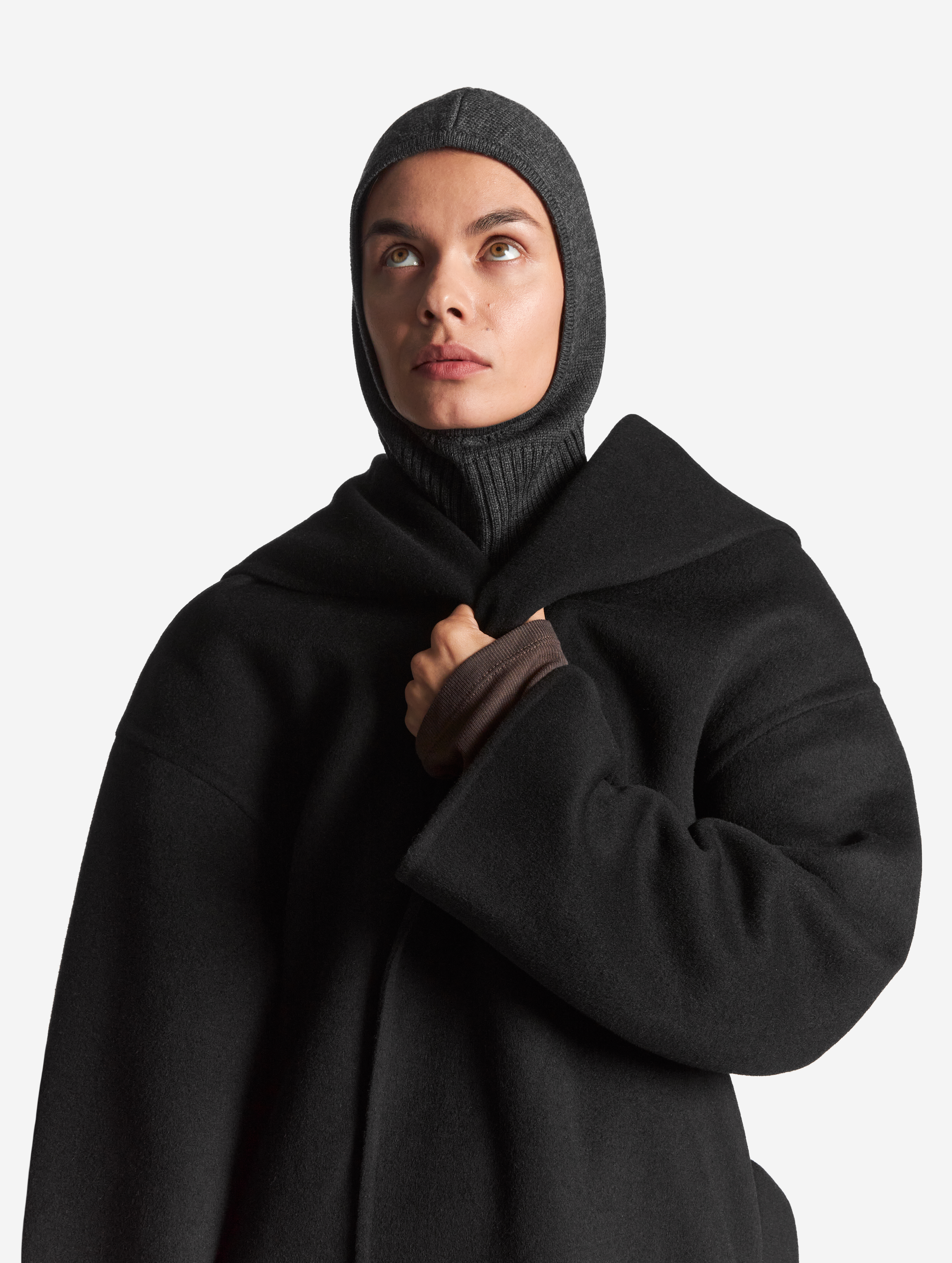 Знаковая модель Ushatava. Капор был разработан как альтернатива шапкам и шарфам. Также он выполняет функцию теплого аксессуара для верхней одежды без воротника и капюшона. Надевается через голову.
