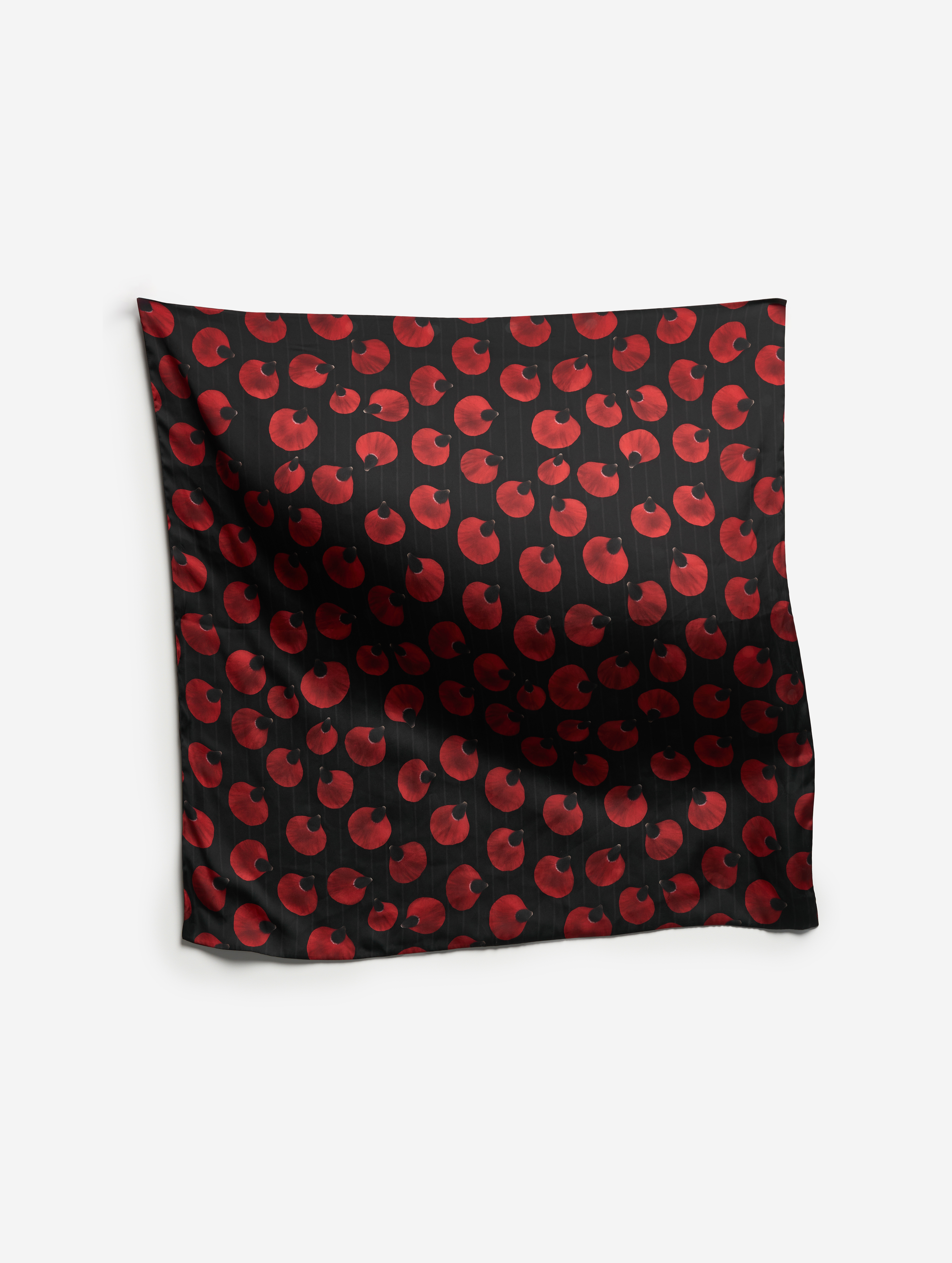 У платка нет изнанки — на обороте другой принт. Стороны легко менять по настроению или складывать, показывая обе расцветки сразу. Это не двухсторонняя печать, а сшитые вместе отрезы атласа, поэтому платок получился плотным и прочным.
