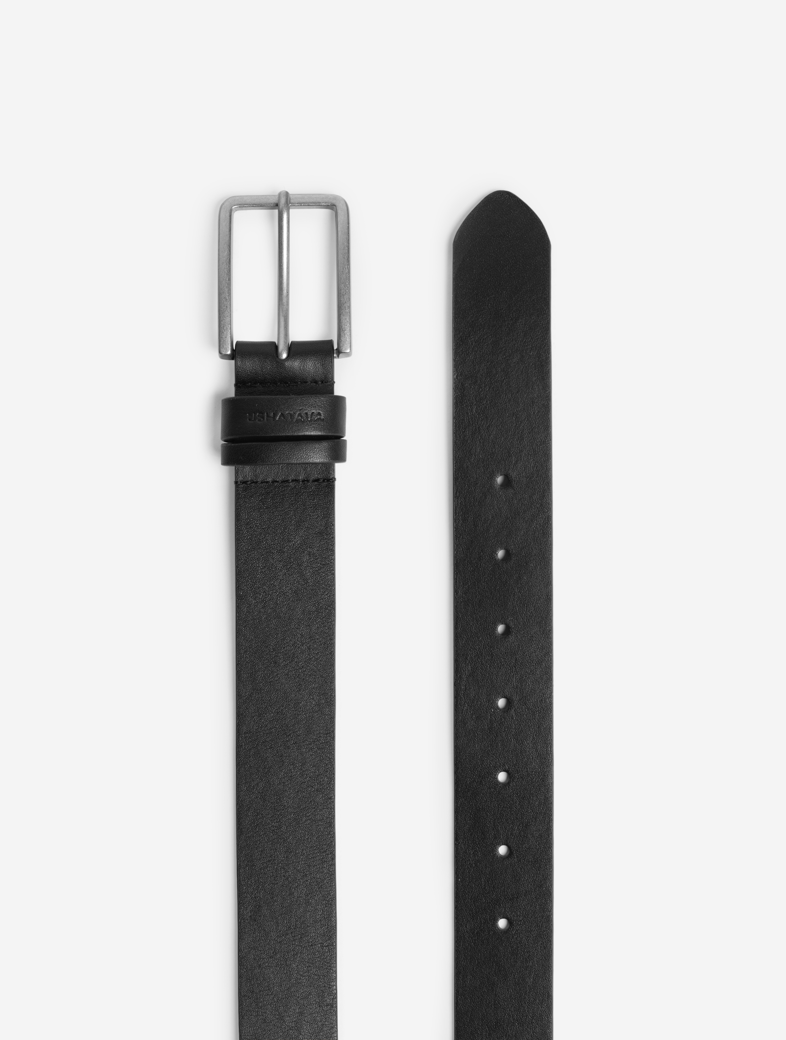 Ремень Ushatava выполнен из натуральной гладкой кожи. Застегивается на металлическую пряжку — минималистичную, со стальным отблеском. Для ремня также была разработана упаковка, в которой его можно презентовать как подарок.