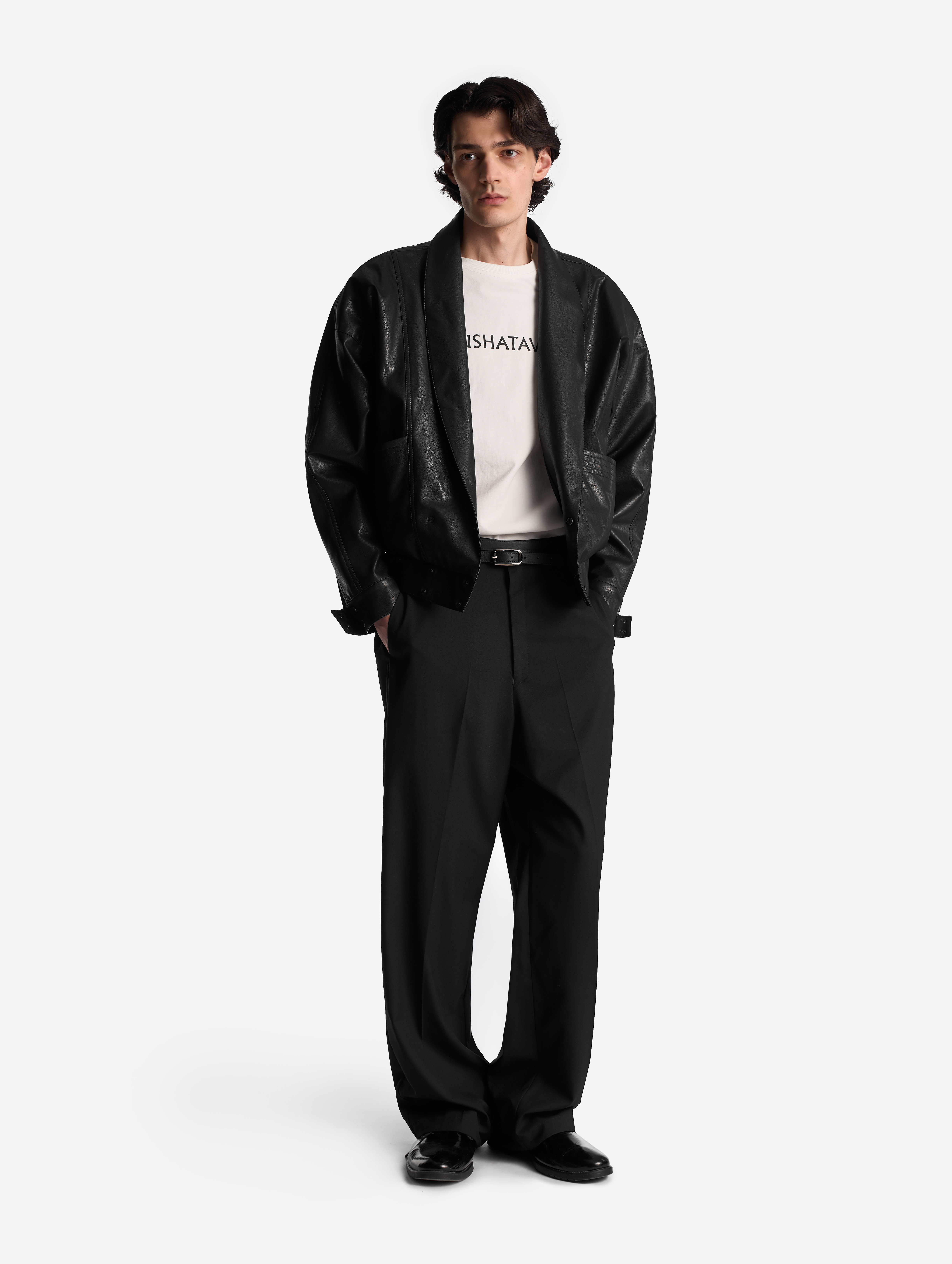 Этот силуэт вдохновлен воспоминаниями дизайн-команды Ushatava о гардеробе родителей. Бомбер Dad's Fit наследует ключевые черты мужской куртки с винтажным характером: укороченный фасон, скатное плечо, утрированно широкие присборенные рукава, шалевый воротник, накладные карманы с декоративными отстрочками. У бомбера универсальная посадка, поэтому его могут носить не только женщины, но и мужчины. Внутри модель обработана подкладкой, присутствует карман. Застегивается на кнопки.