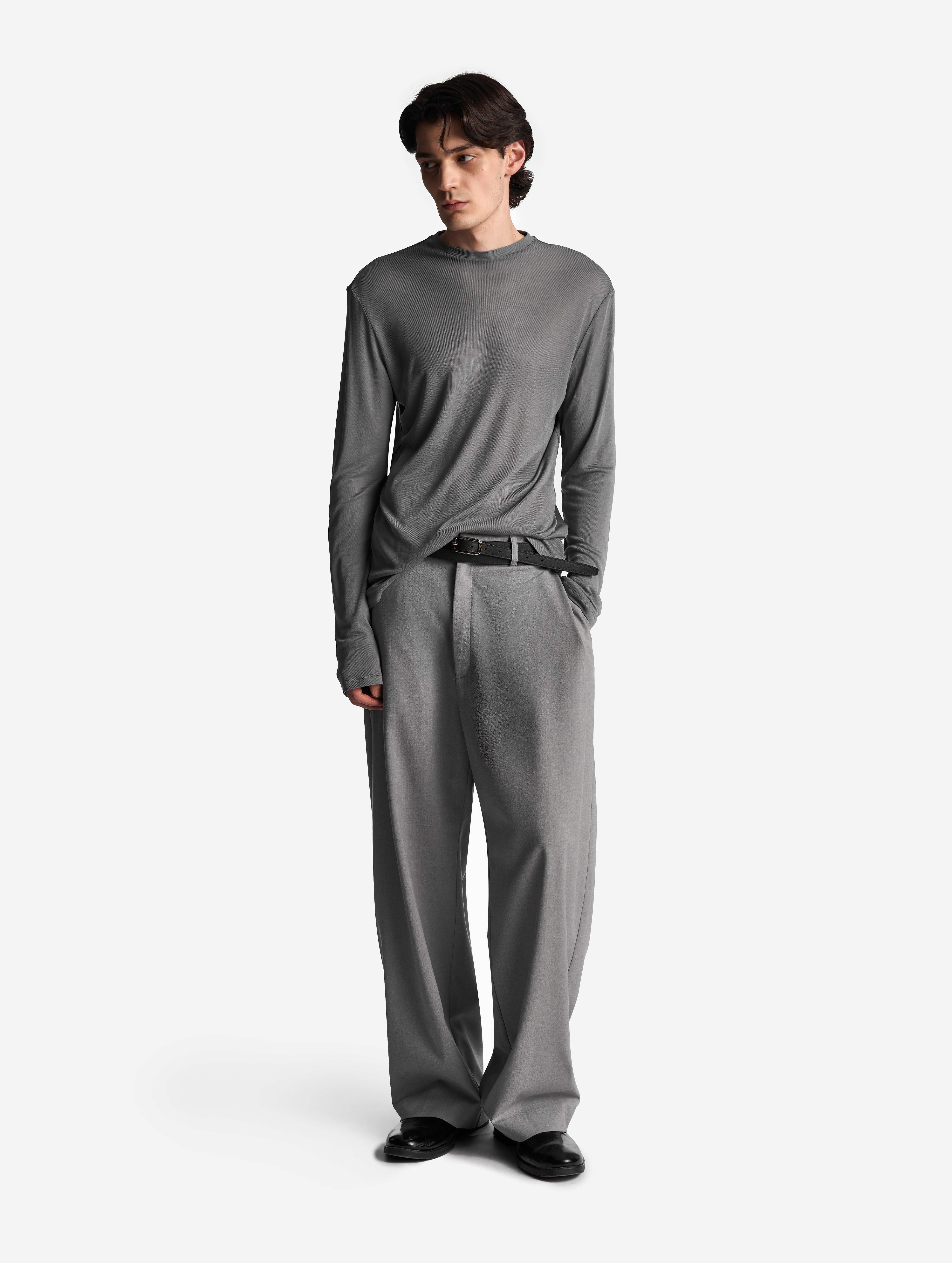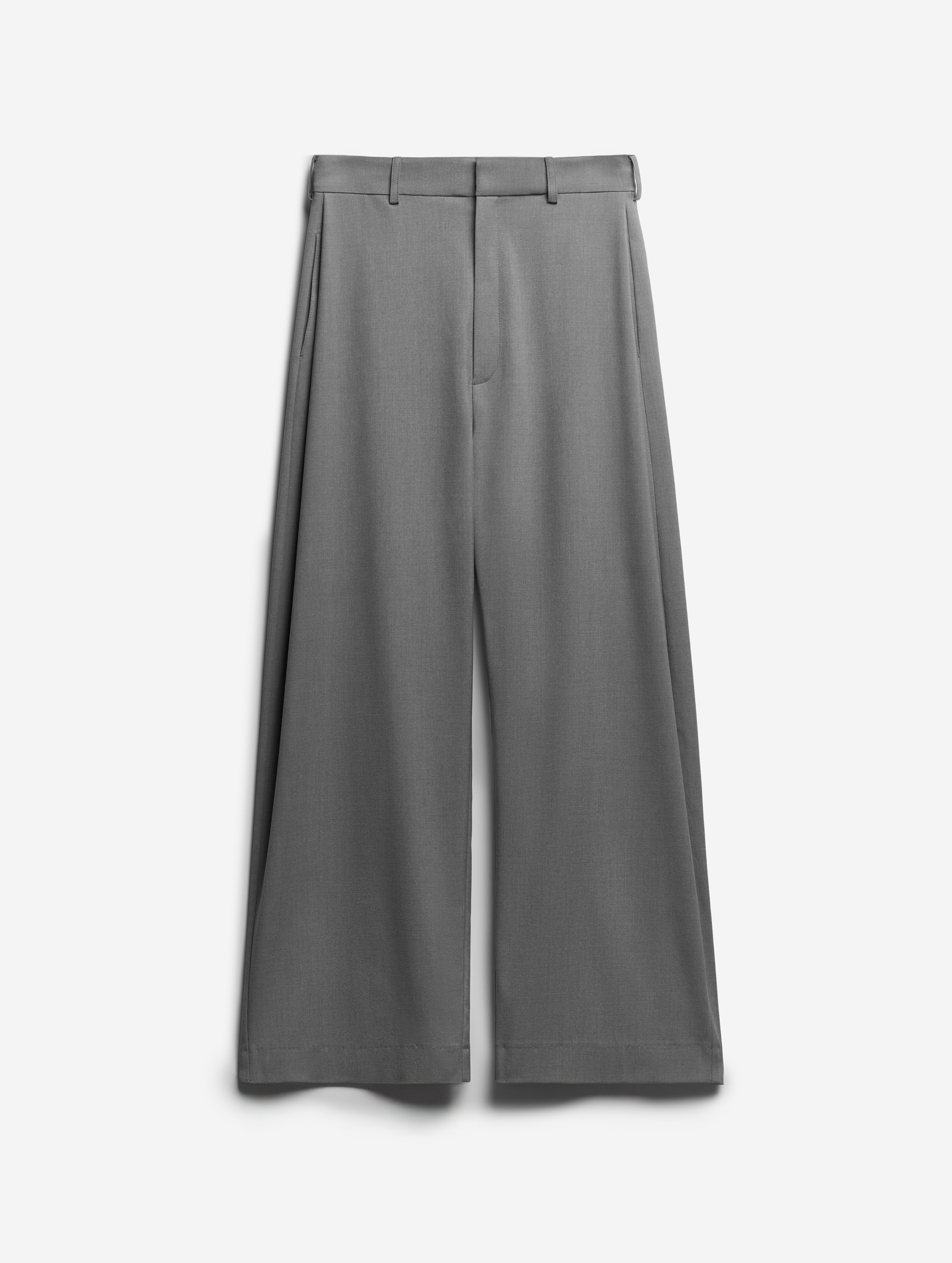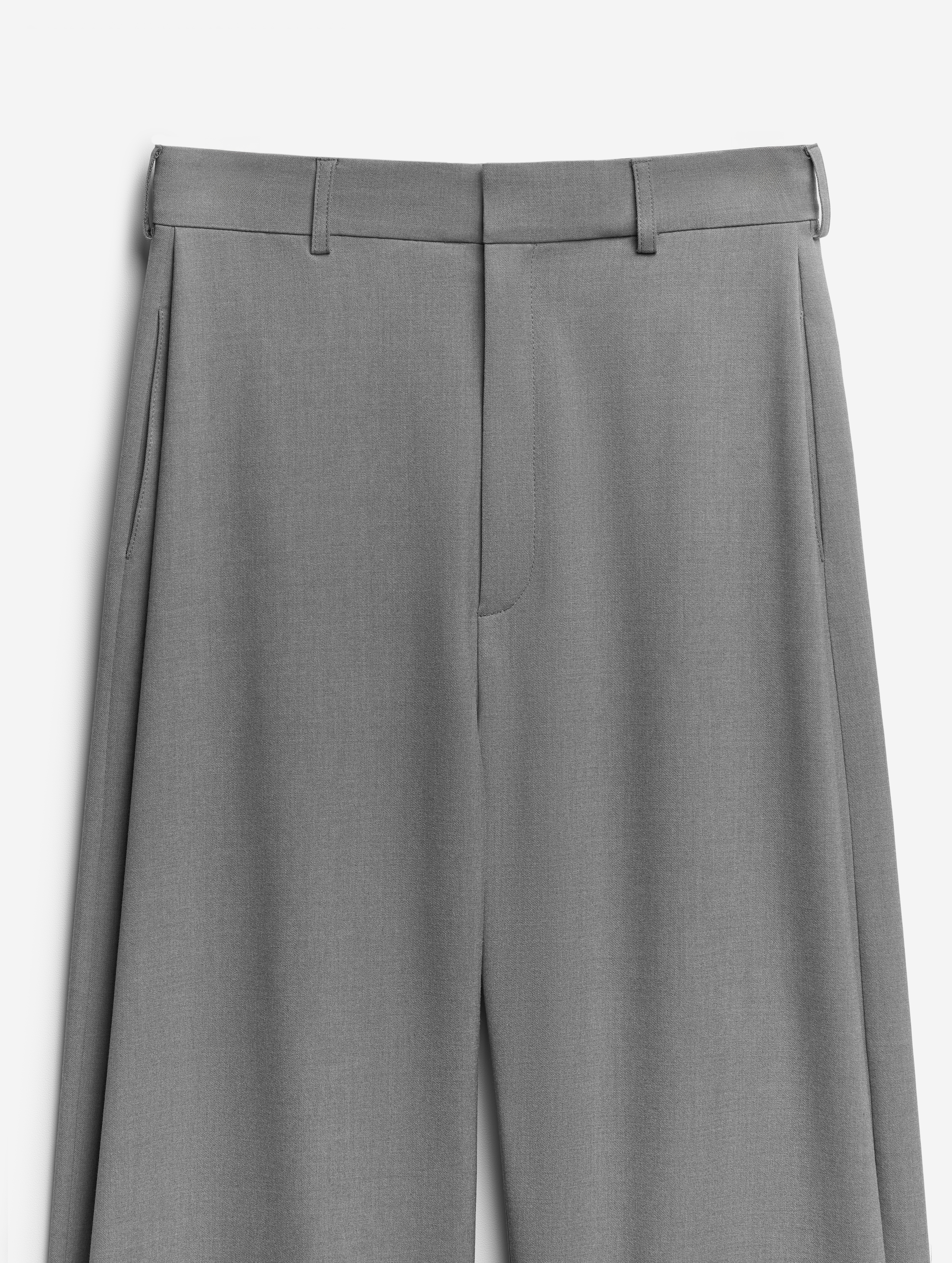 Новая версия широких брюк-бананов, давно ставших классикой модного Дома. Брюки сохранили характерный силуэт: они заужены книзу, но стали более объемными. У изделия есть два кармана, спрятанных в объеме боковых складок. Брюки застегиваются на молнию и брючный крючок.
