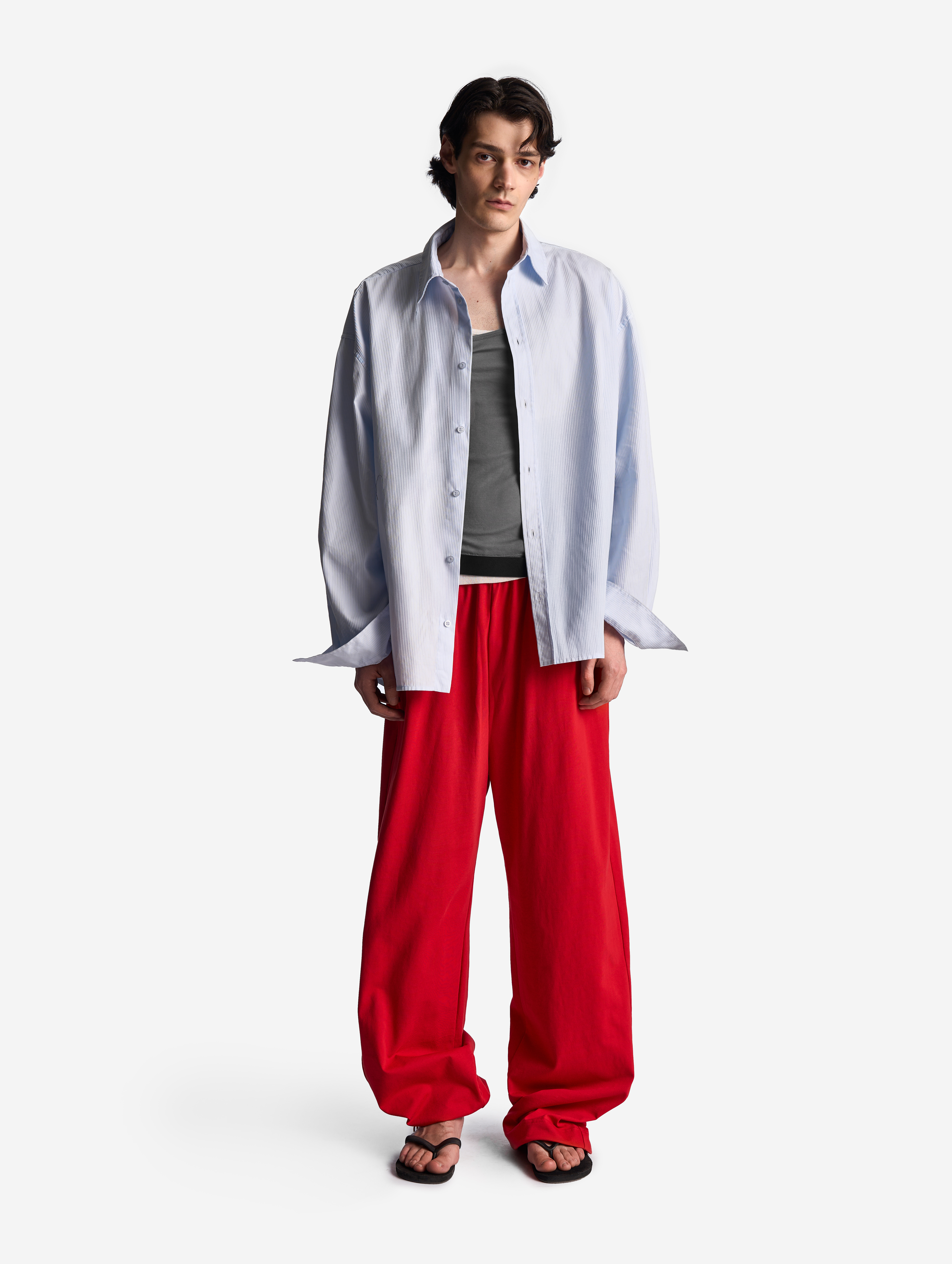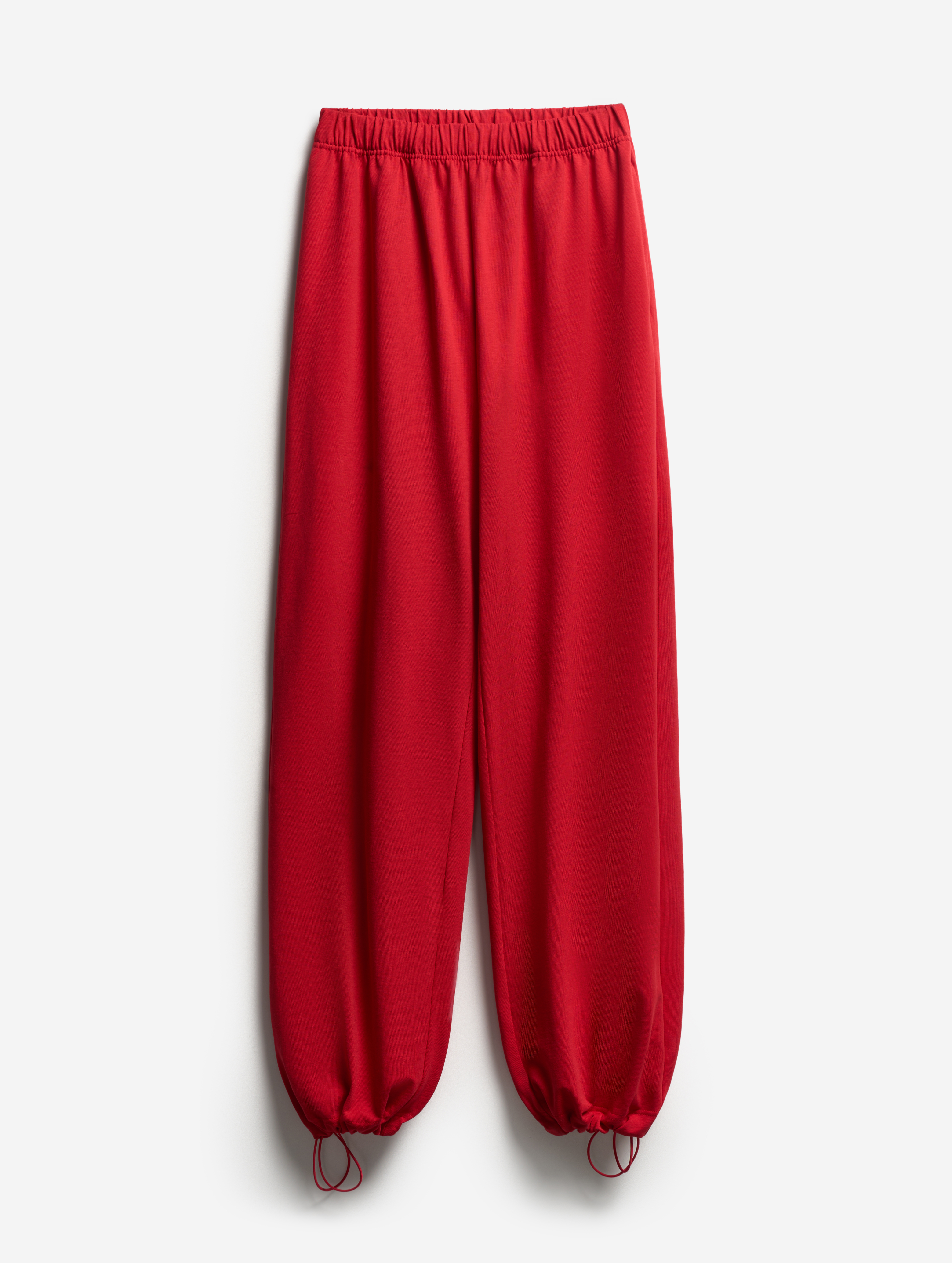 У этих брюк свободная универсальная посадка: они рассчитаны как на женскую, так и на мужскую фигуру. Их длину можно регулировать — для этого низ брючин обработан резинкой со стоппером. Есть два глубоких кармана. Пояс на широкой эластичной резинке, а для дополнительной фиксации посадки предусмотрен шнурок, который завязывается с внутренней стороны.