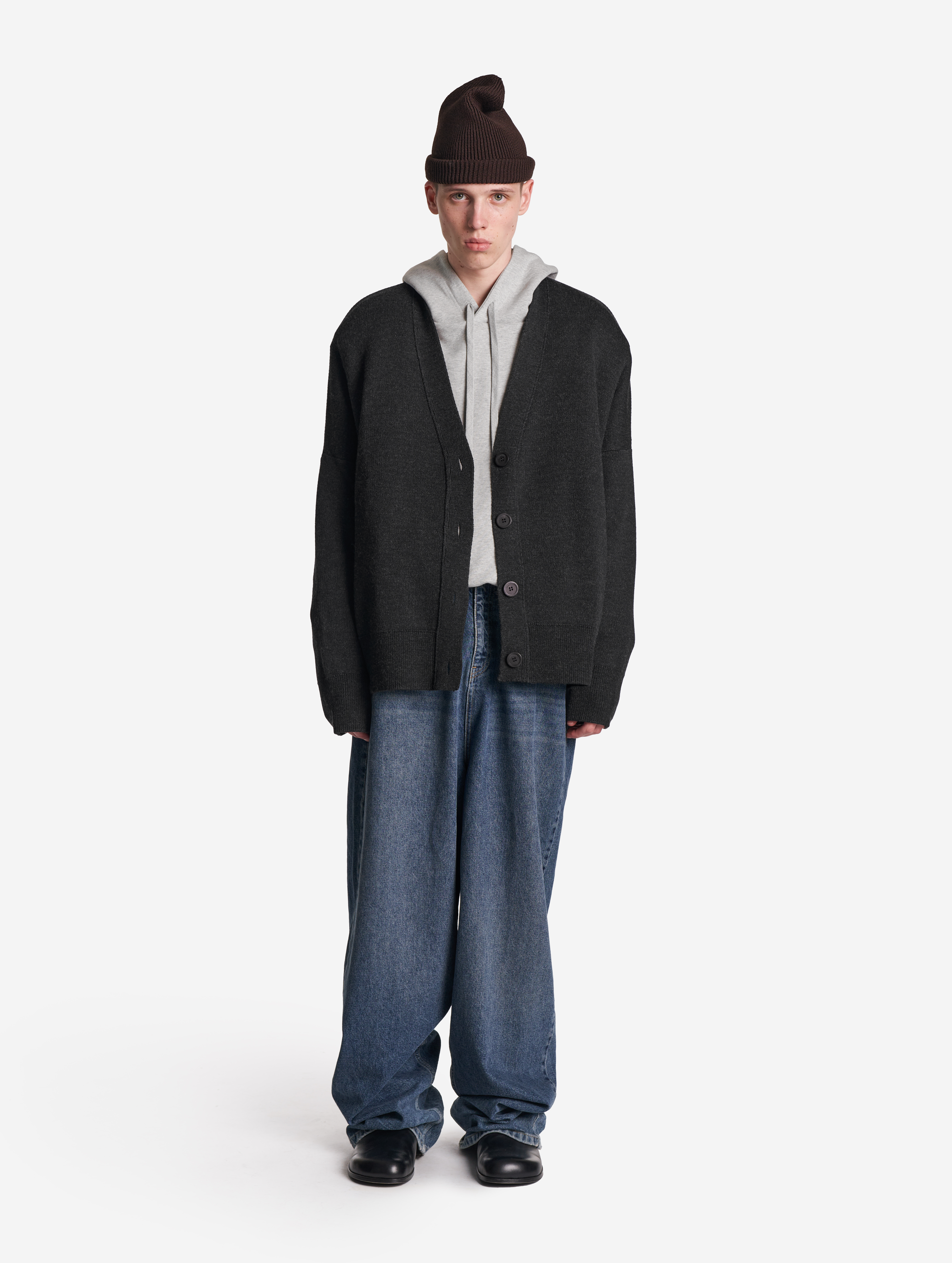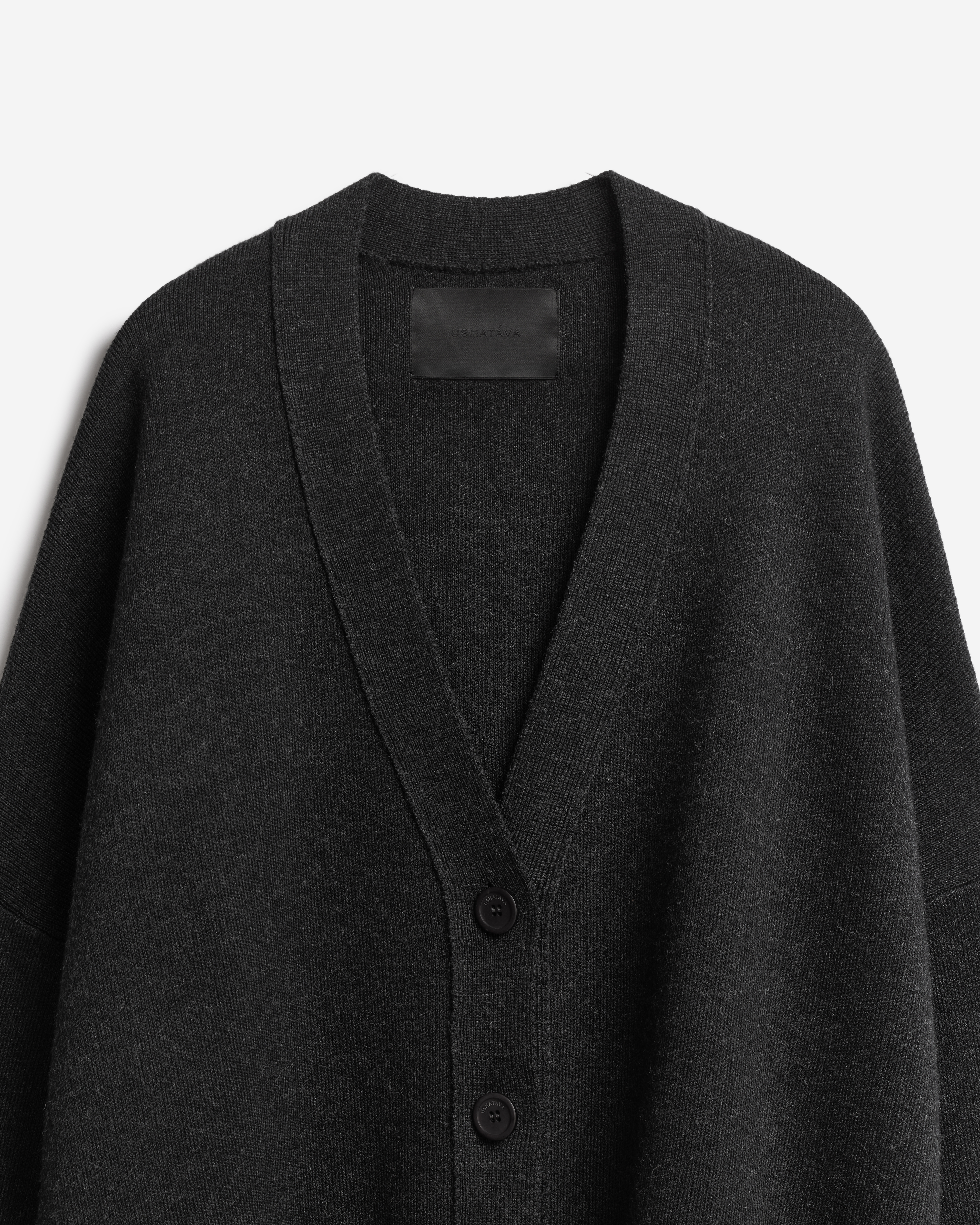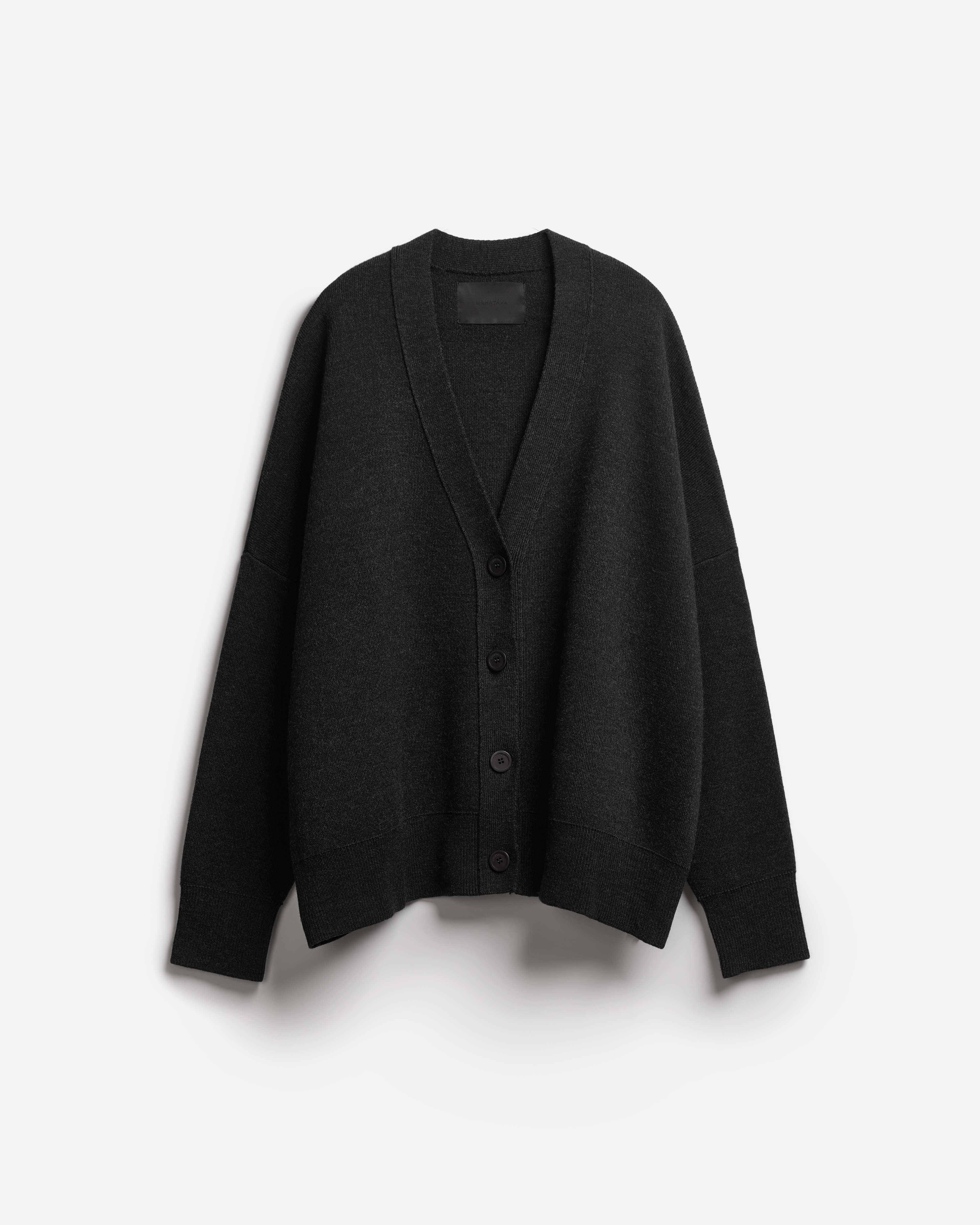 Вязаный кардиган удлиненного оверсайз-силуэта. Одинаково хорошо сидит на мужской и женской фигуре. Застегивается на роговые брендированные пуговицы. Благодаря наличию в составе акрила кардиган не пиллингуется и не деформируется со временем.