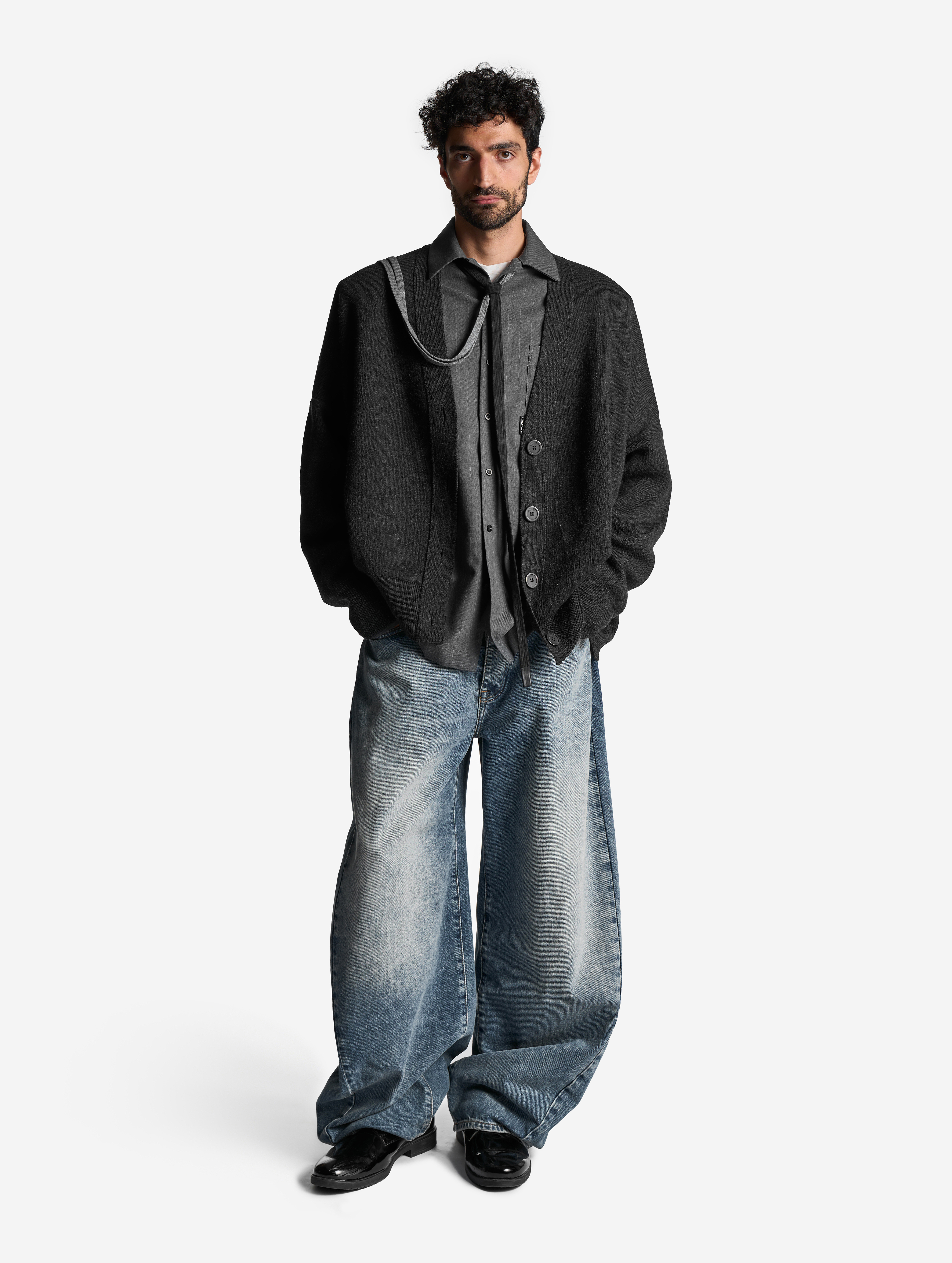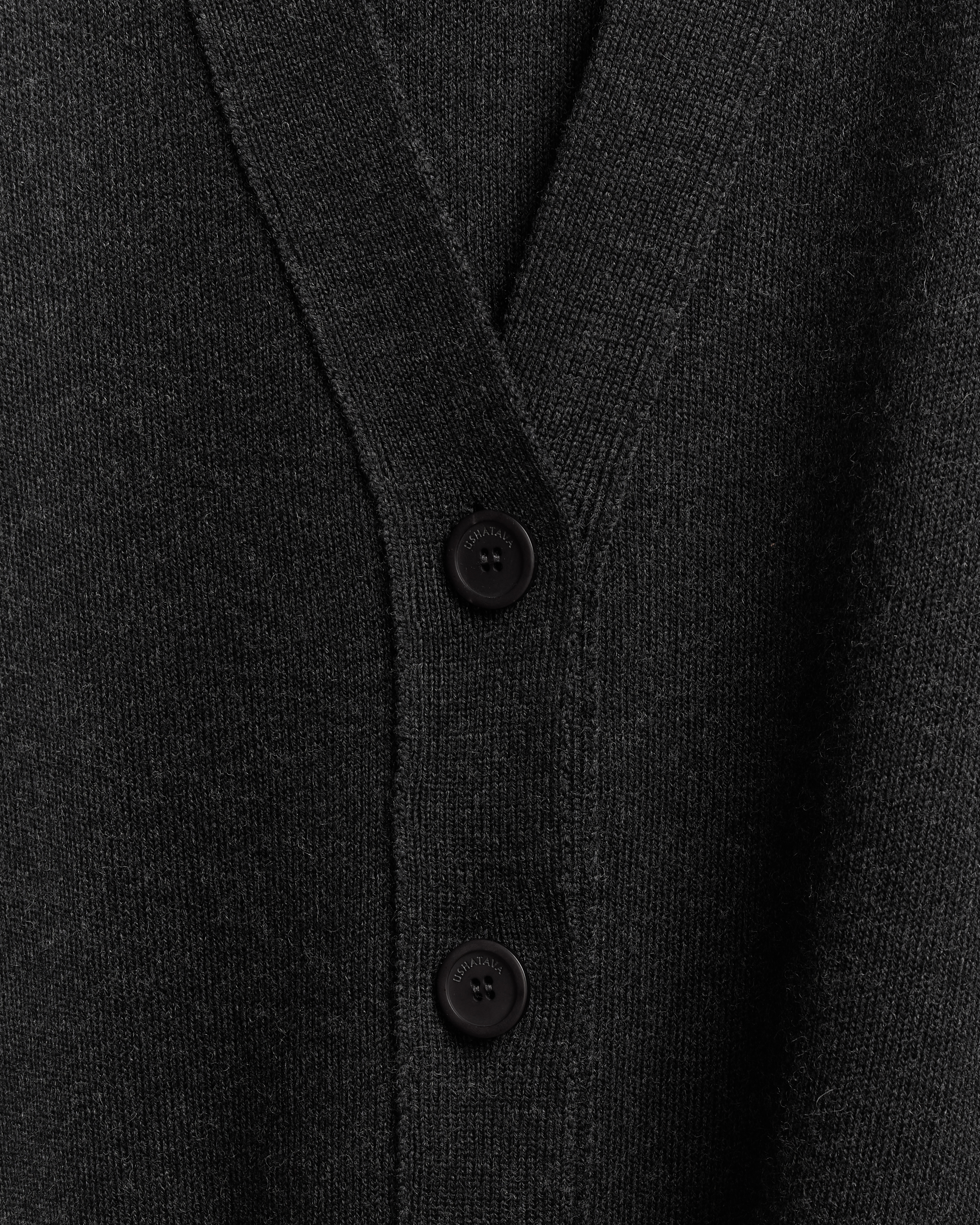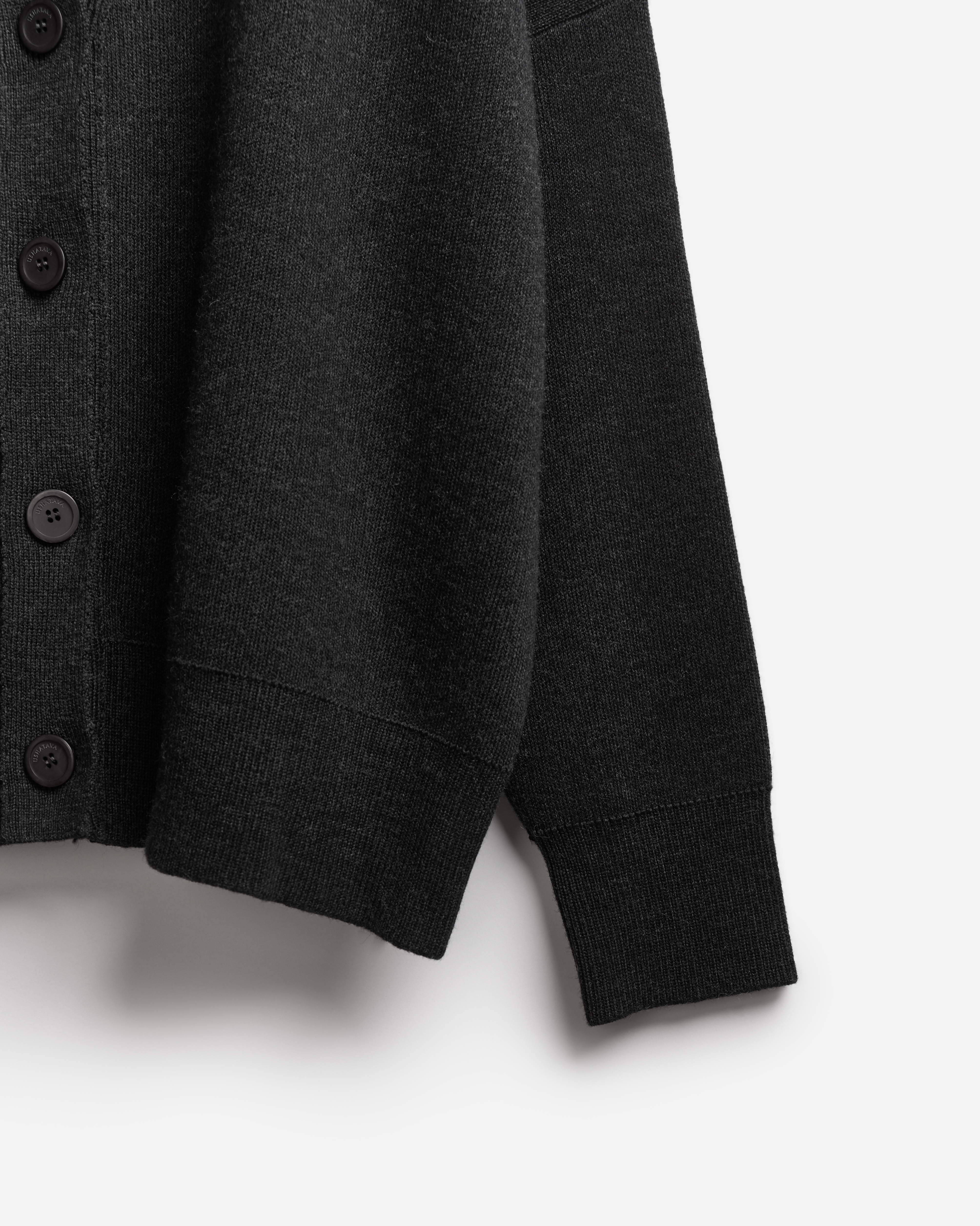 Вязаный кардиган удлиненного оверсайз-силуэта. Одинаково хорошо сидит на мужской и женской фигуре. Застегивается на роговые брендированные пуговицы. Благодаря наличию в составе акрила кардиган не пиллингуется и не деформируется со временем.