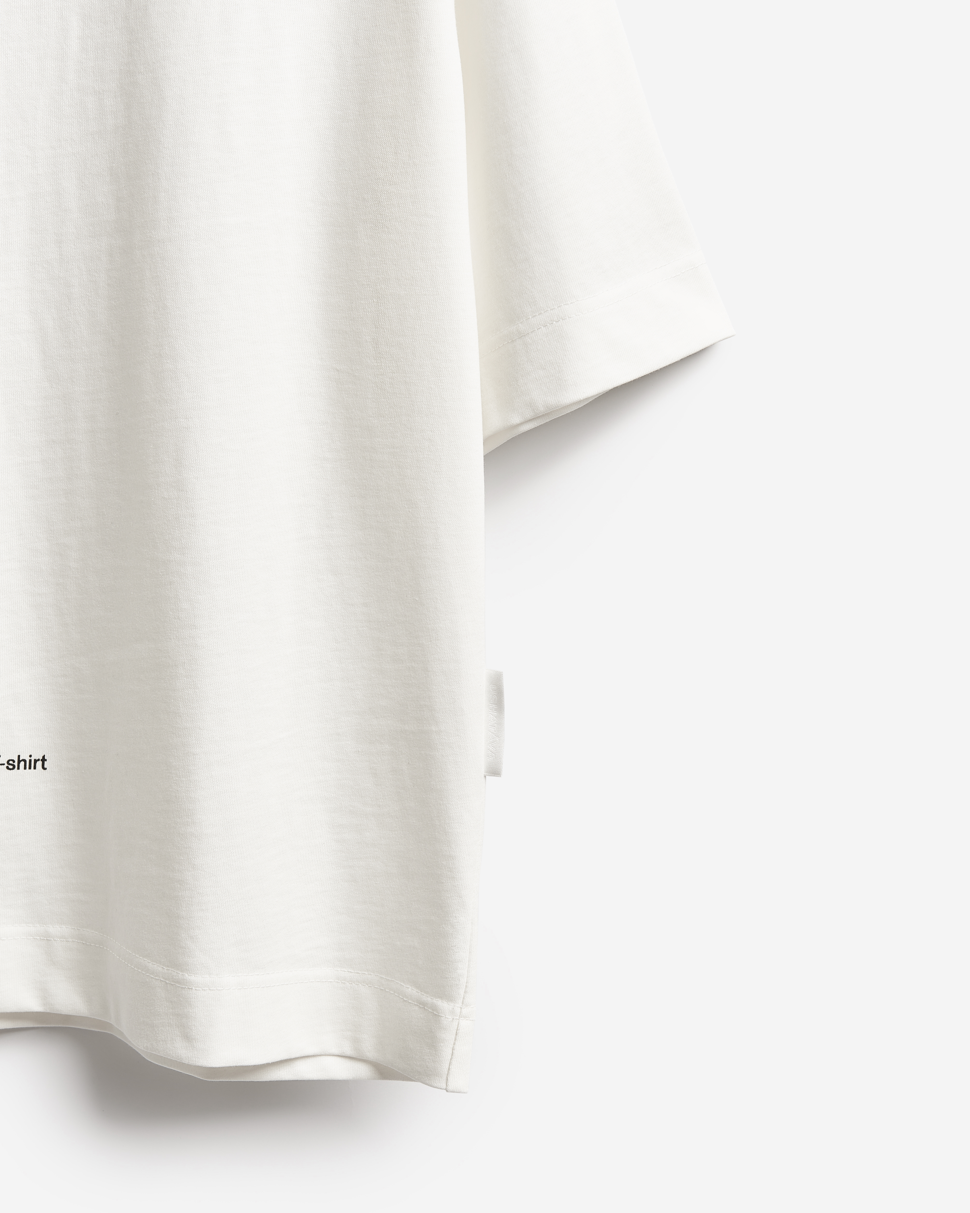 Как утверждает принт на поверхности изделия, Regular Fit T-shirt — это футболка умеренной посадки, один из ключевых силуэтов линии Garderobe. Местоположение принта выбрано с точным расчетом, что надпись останется видна из-под верхней одежды. Наименование вещи будет выступать за нижний край худи или пуловера. Еще один принт — с названием модного Дома — расположен на груди. У модели вытянутый силуэт и рукав средней длины. Футболка выполнена из плотного формоустойчивого трикотажа.