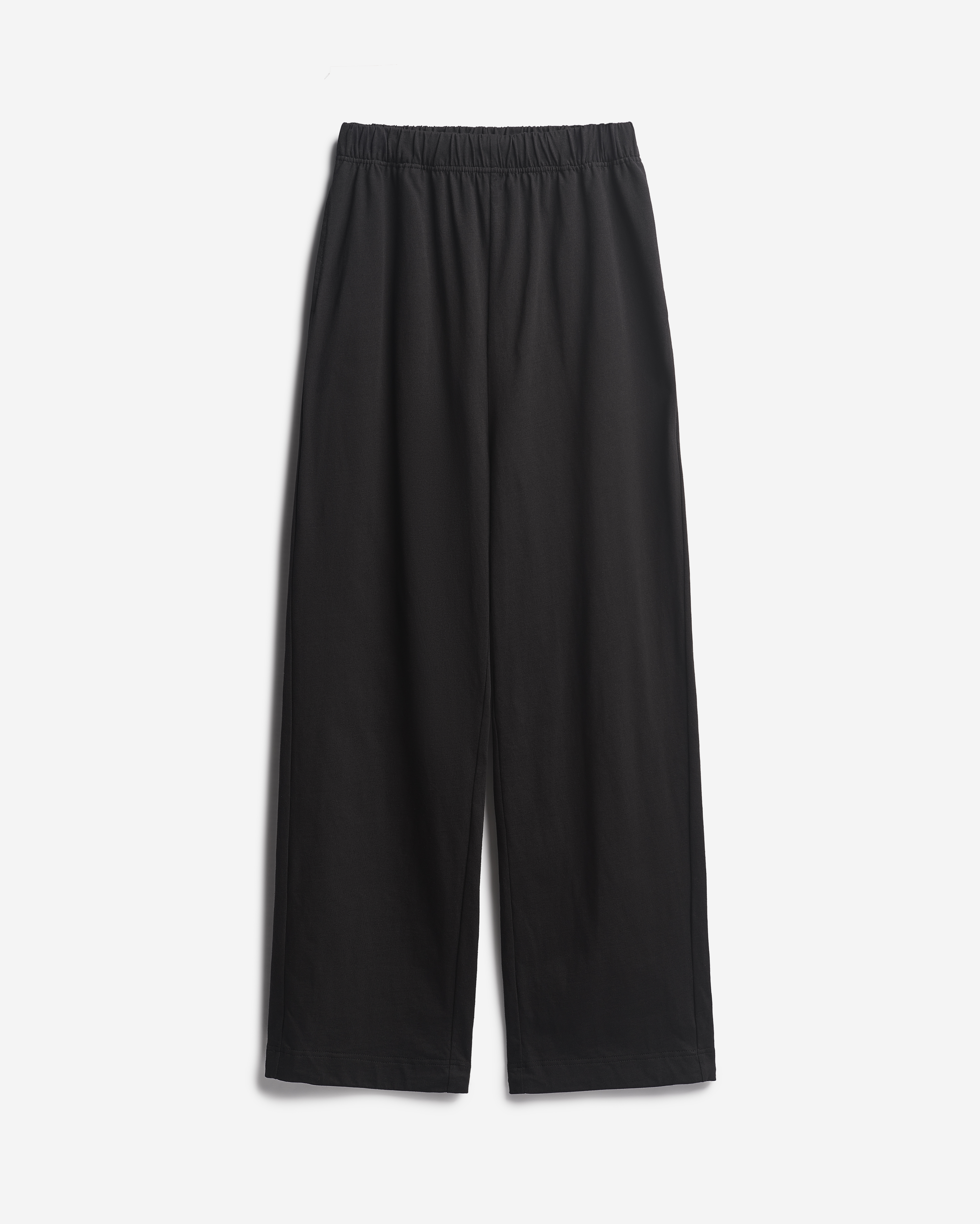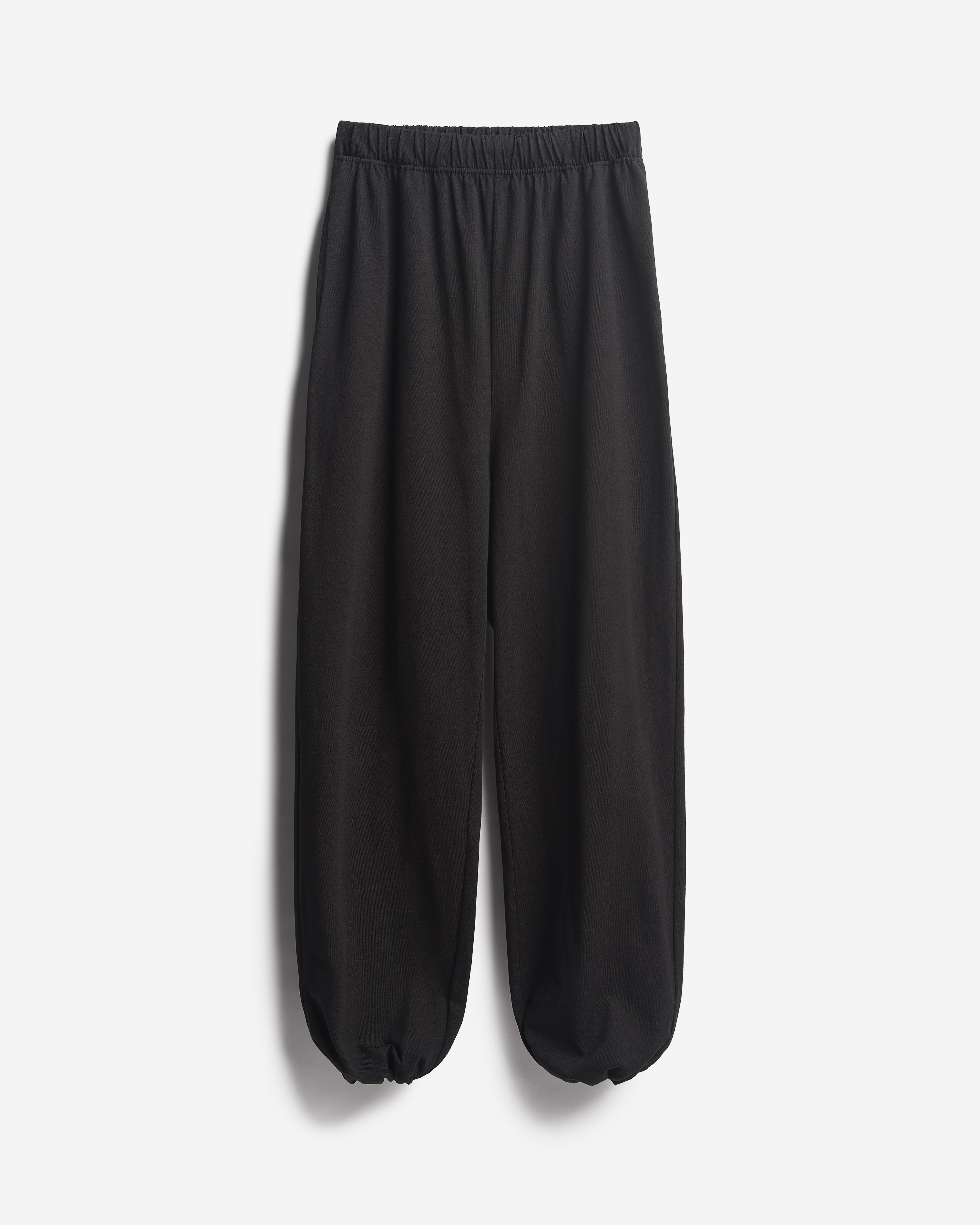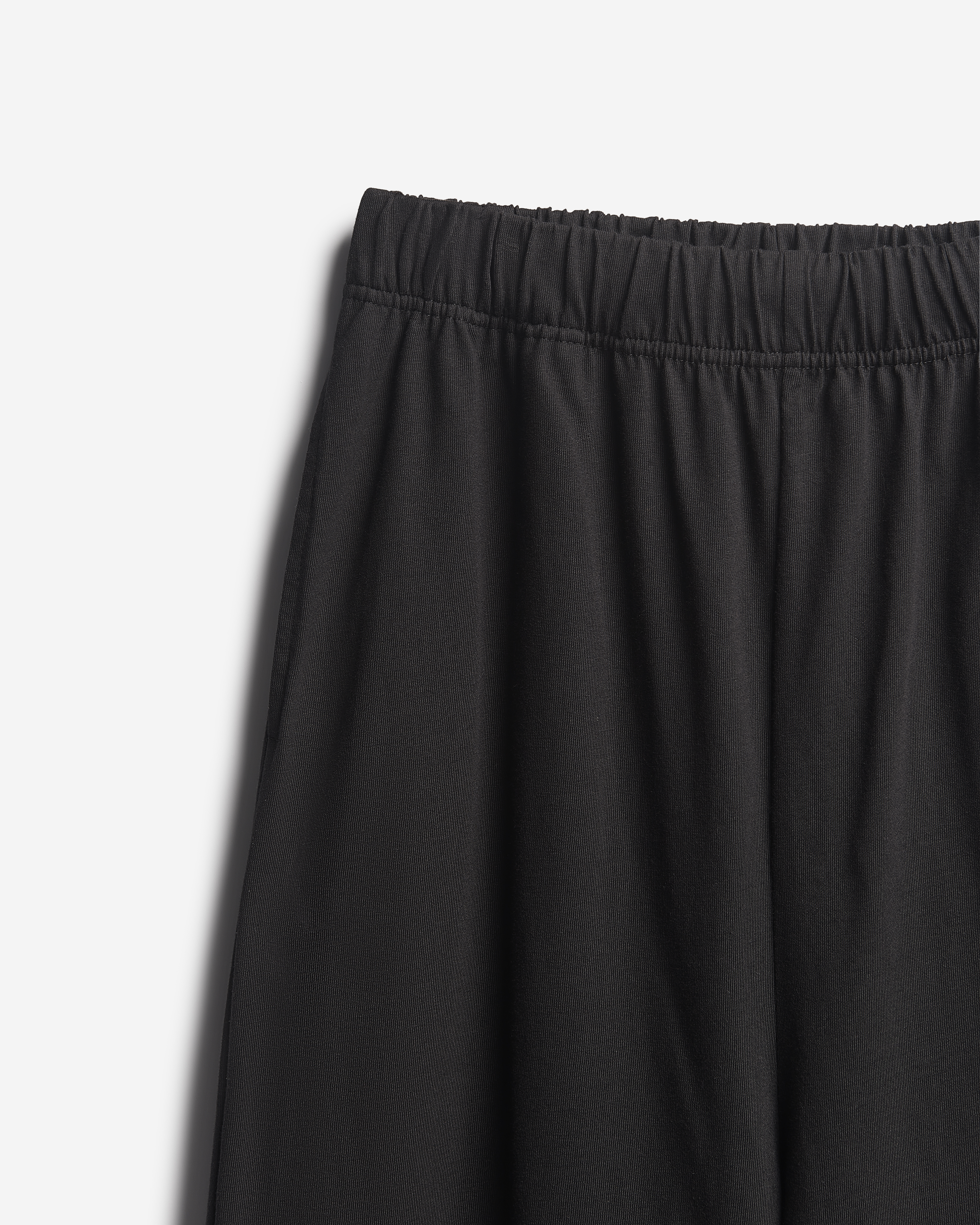 У этих брюк свободная универсальная посадка: они рассчитаны как на женскую, так и на мужскую фигуру. Их длину можно регулировать — для этого низ брючин обработан резинкой со стоппером. Есть два глубоких кармана. Пояс на широкой эластичной резинке, а для дополнительной фиксации посадки предусмотрен шнурок, который завязывается с внутренней стороны.