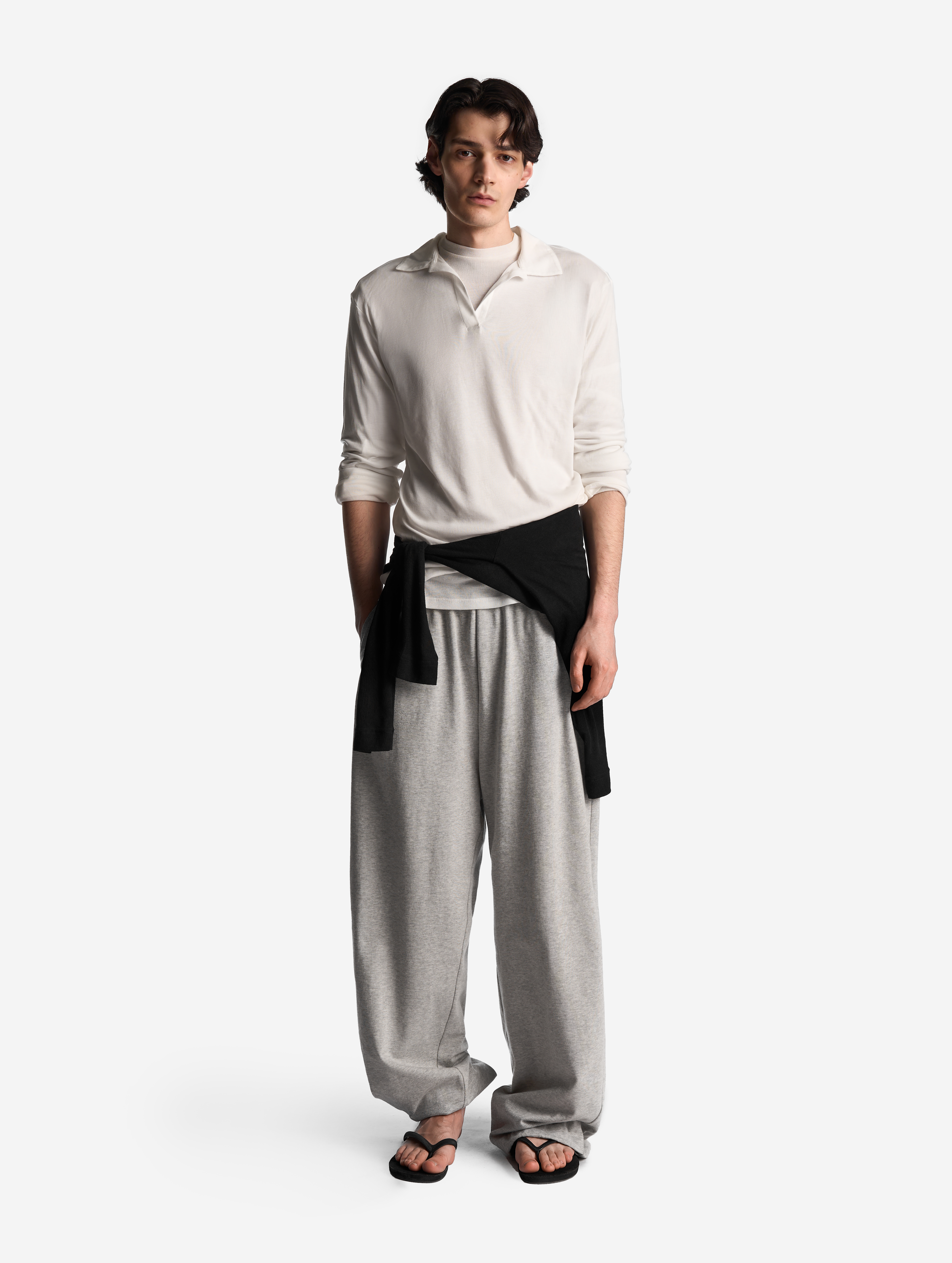 У этих брюк свободная универсальная посадка: они рассчитаны как на женскую, так и на мужскую фигуру. Их длину можно регулировать — для этого низ брючин обработан резинкой со стоппером. Есть два глубоких кармана. Пояс на широкой эластичной резинке, а для дополнительной фиксации посадки предусмотрен шнурок, который завязывается с внутренней стороны.