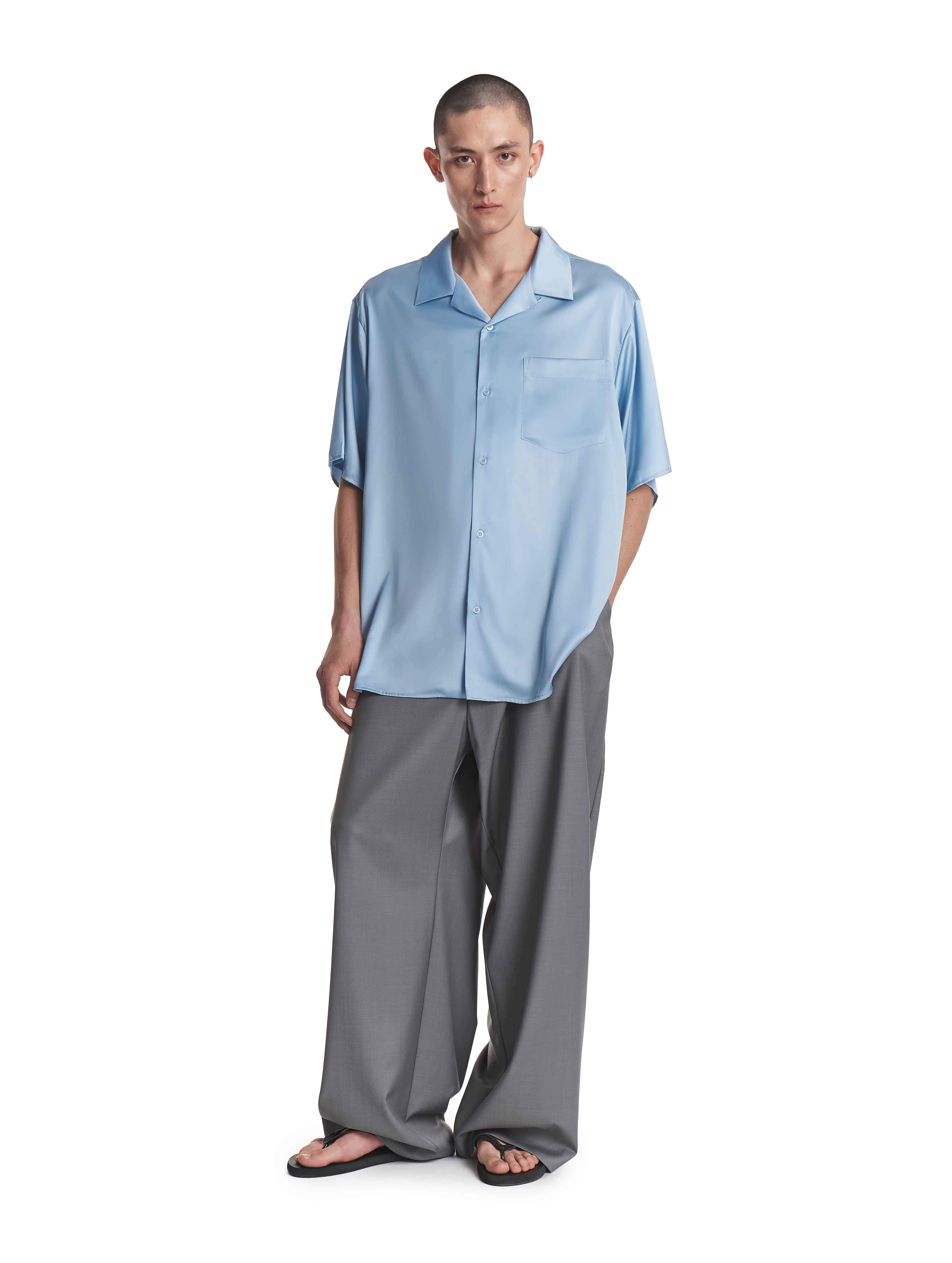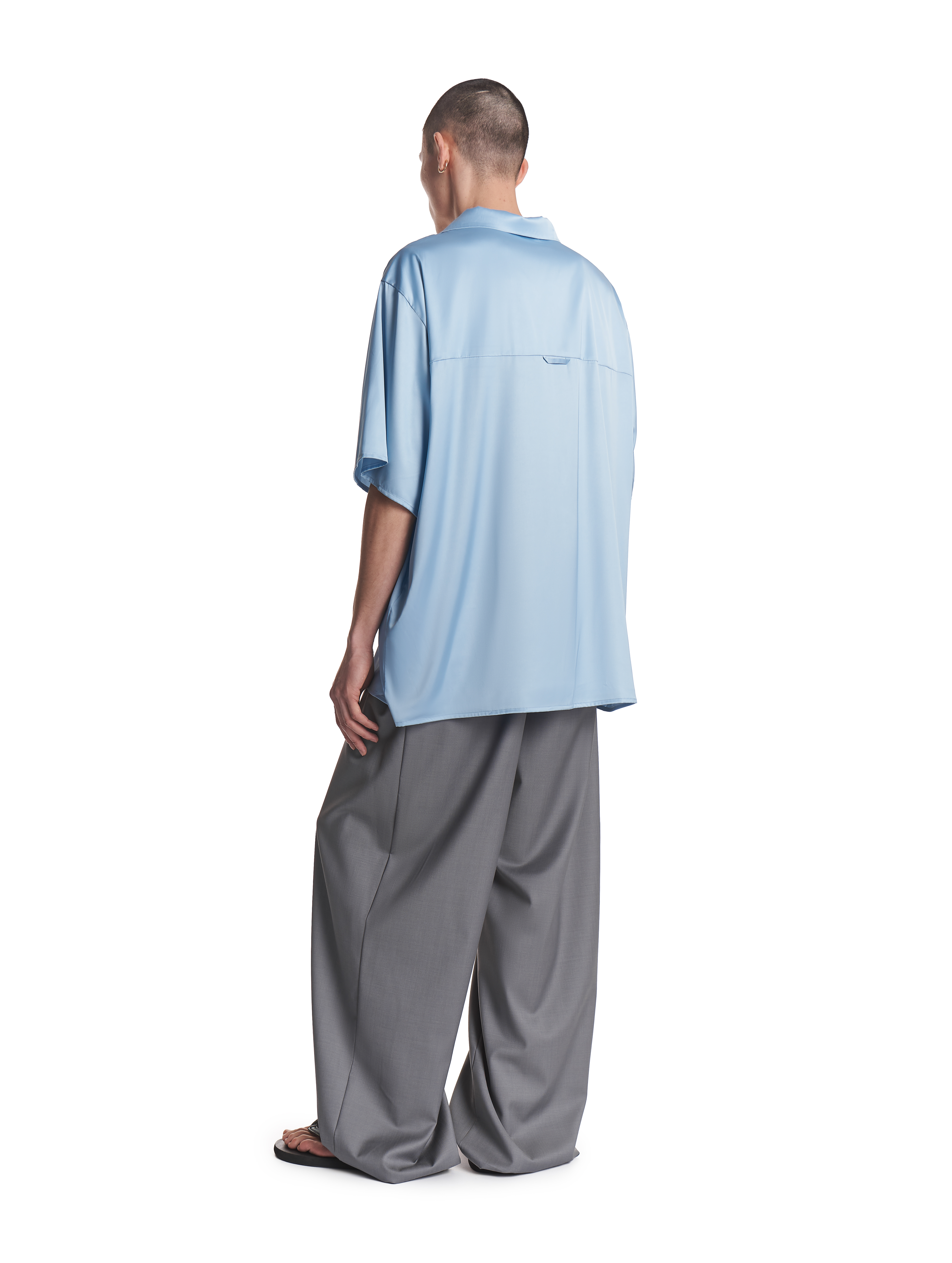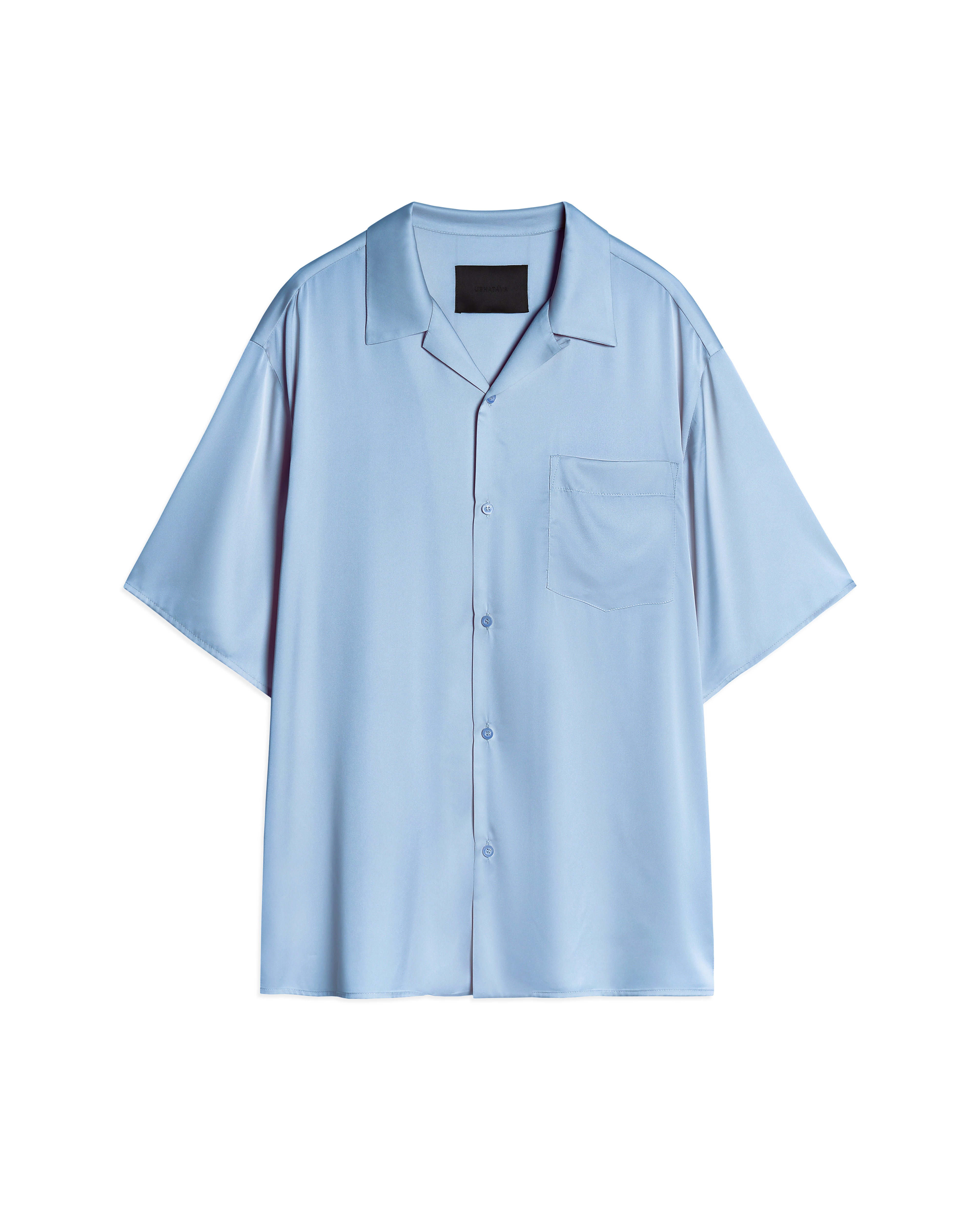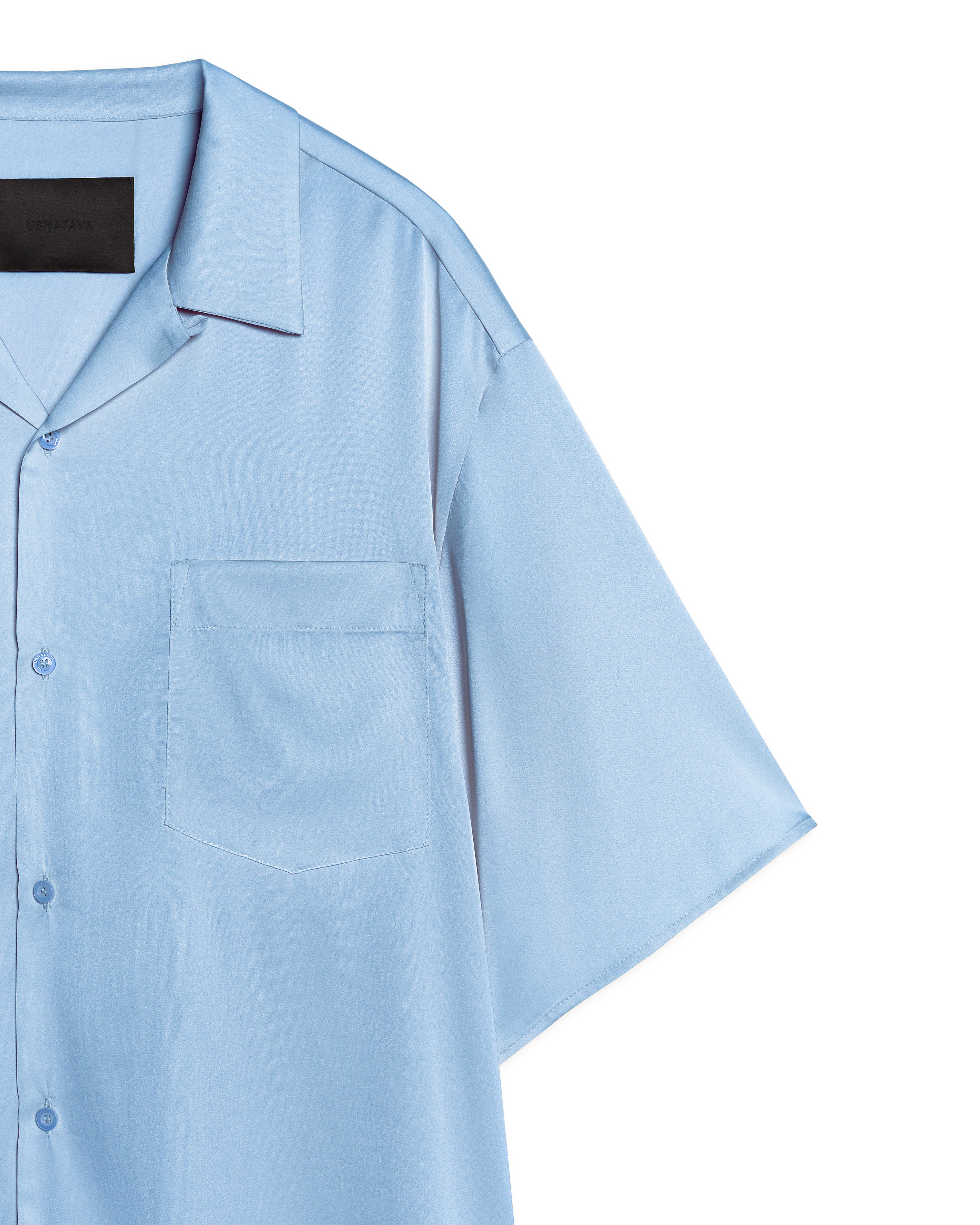 У этой рубашки прямой удлиненный силуэт. Свободная универсальная посадка позволяет носить ее не только женщинам, но и мужчинам. Изделие выполнено из тонкого струящегося сатина. Рубашка застегивается на пуговицы.