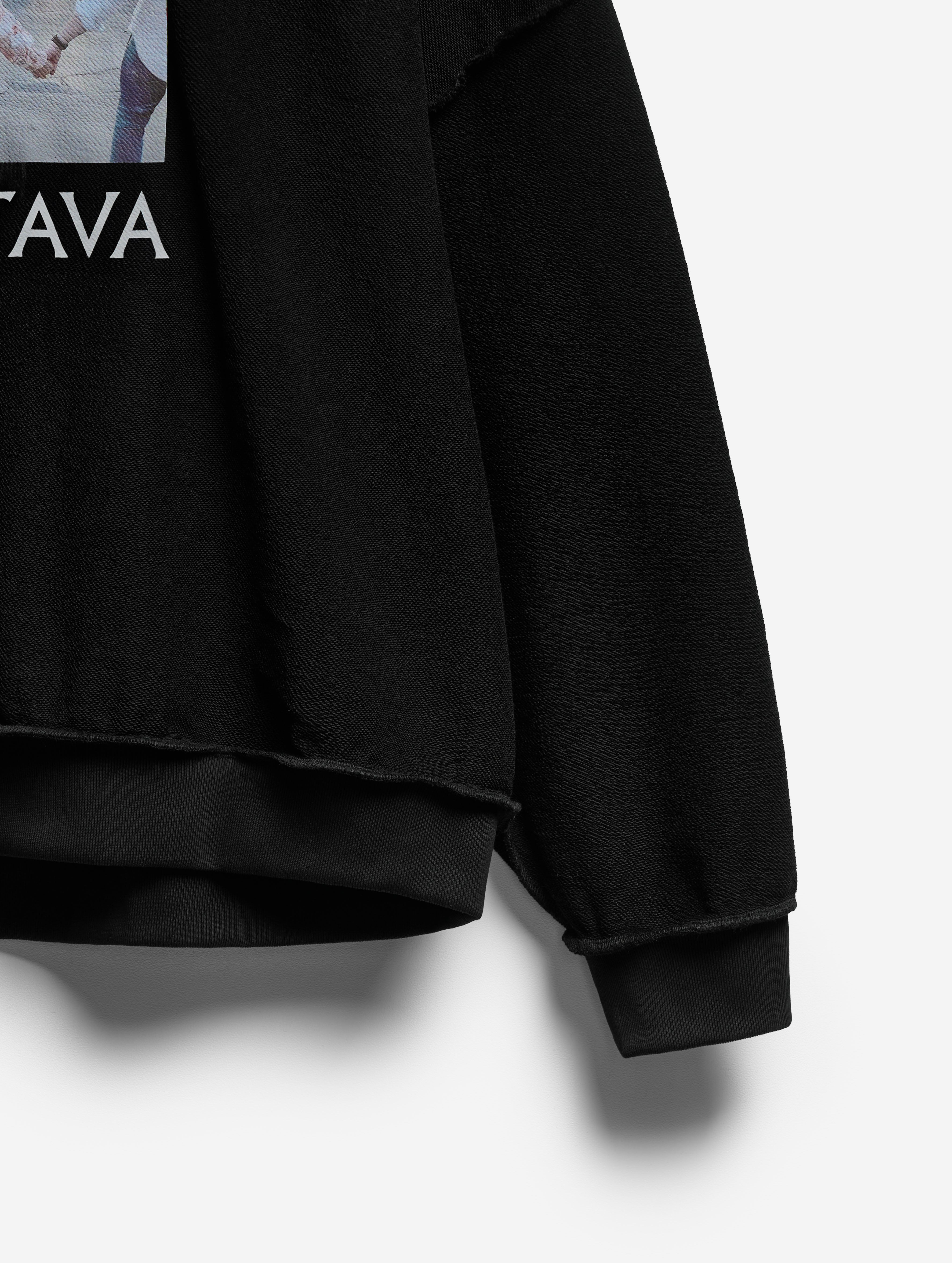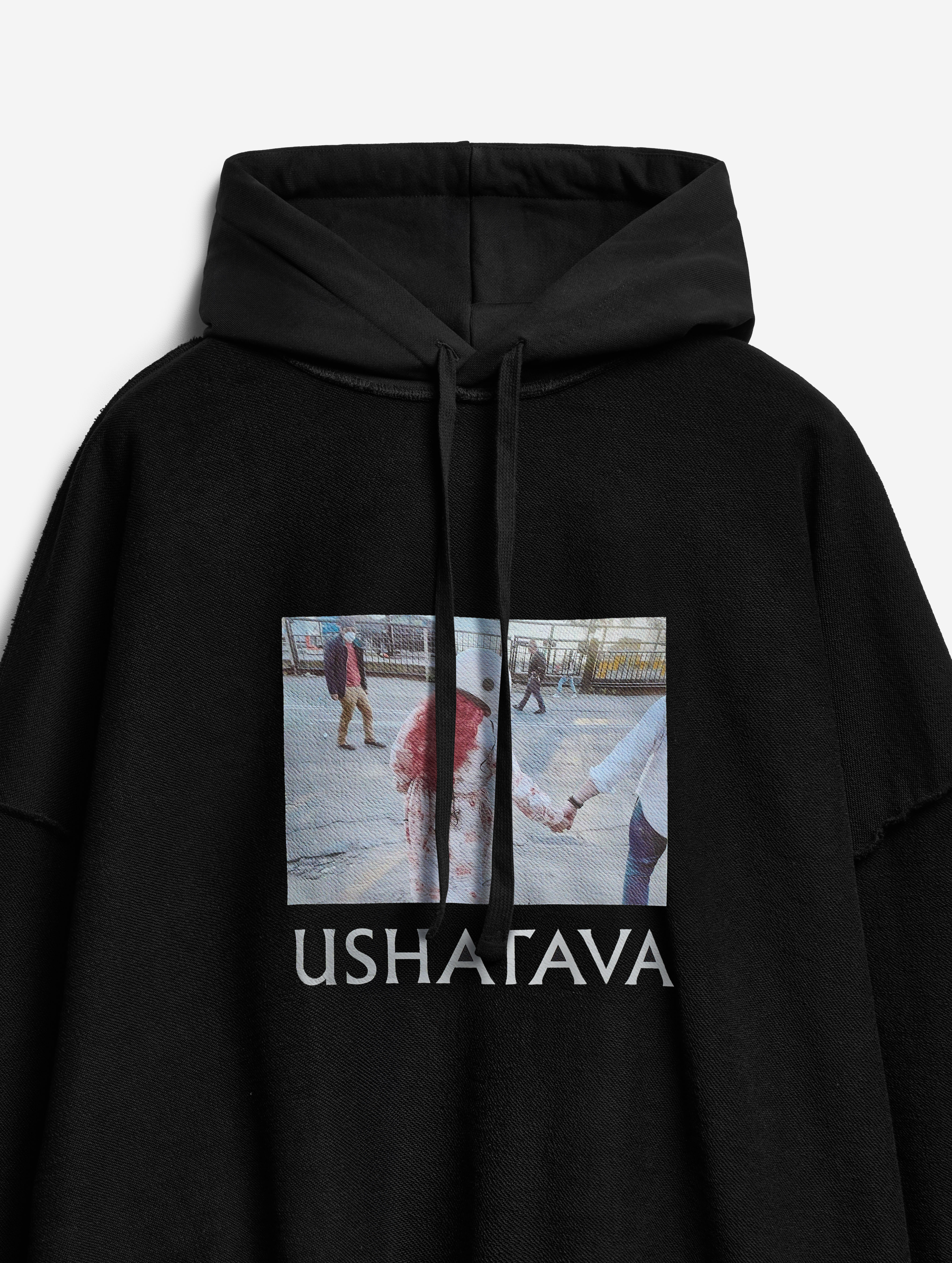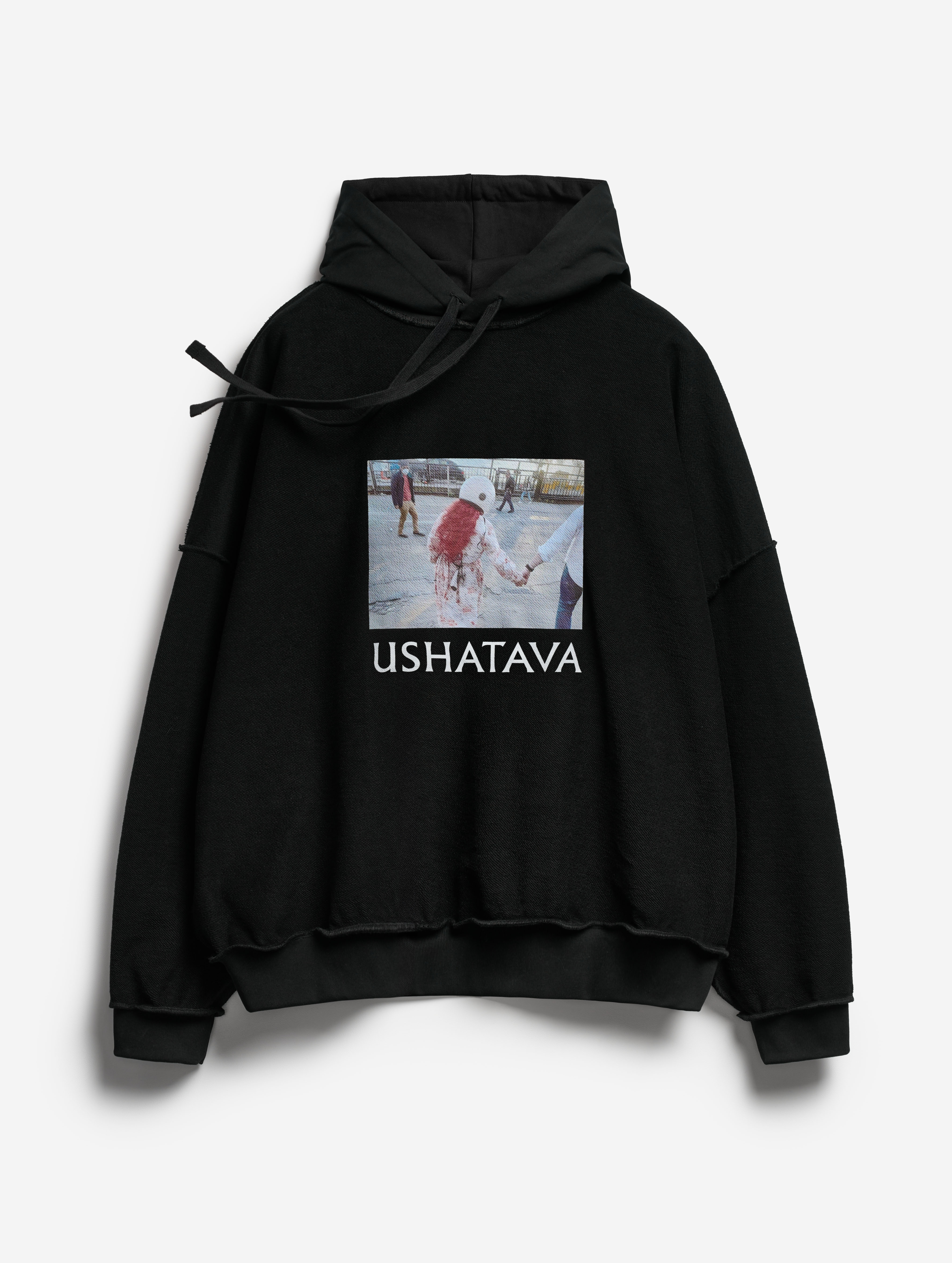 Худи Inside Out — новая модель в списке изделий-перевертышей Ushatava, причем его лицевая сторона — это изнанка. Ее отличают открытые швы, фактура переплетения нитей, лейблы и принт, возникший как фантазия искусственного интеллекта на тему архетипов. «Я искренне верю, что в случайных прохожих, которых можно встретить на улицах, сосредоточена масса вдохновения и свежих идей», — рассказывает Нино Шаматава, креативный директор Ushatava. Вокруг этой темы выстраивается вся линия Garderobe.