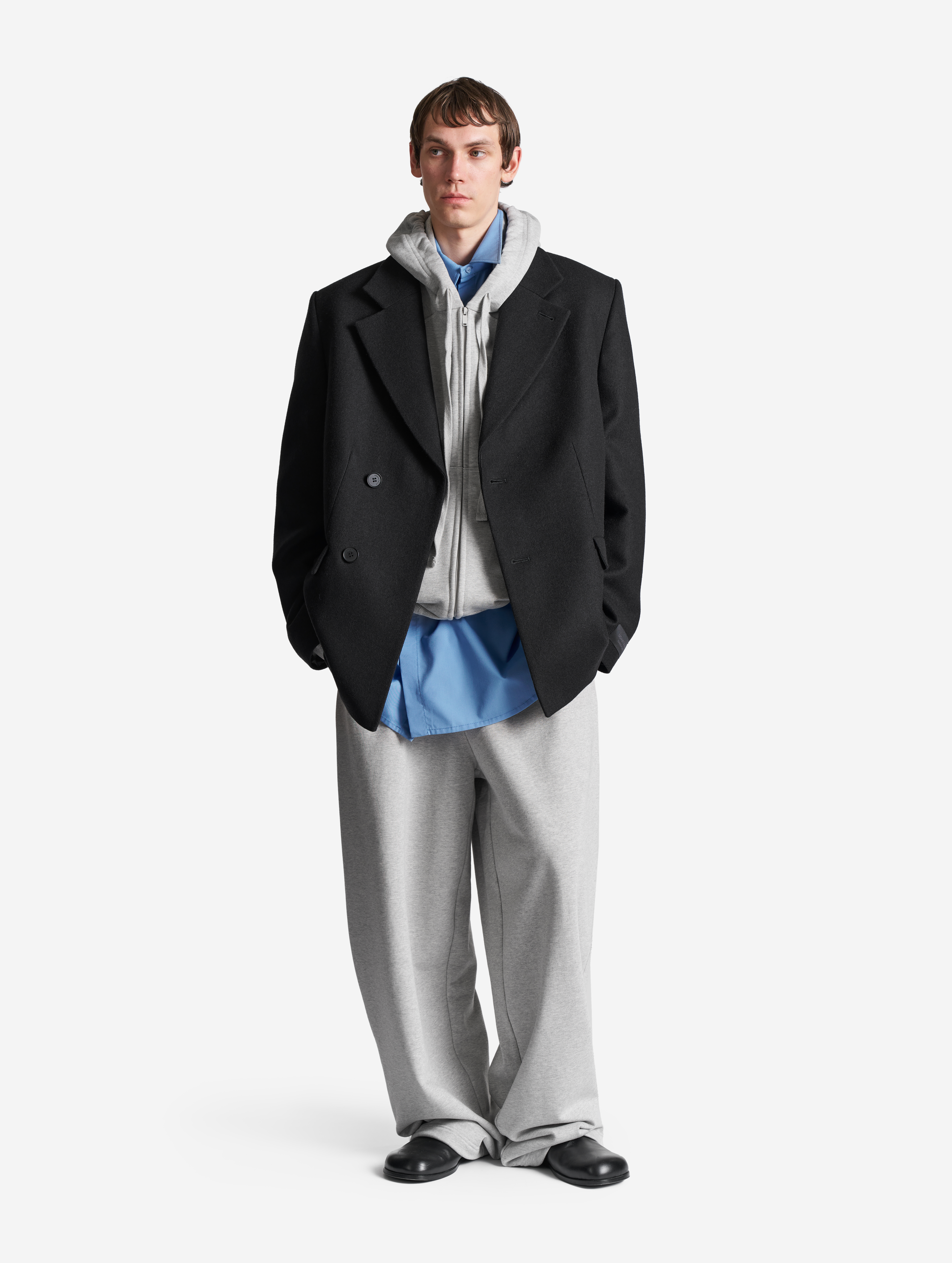 Новая вариация знаковой модели Ushatava — классическое строгое пальто с английским воротником в длине мини. Универсальная посадка позволяет носить изделие не только женщинам, но и мужчинам. У пальто прямой оверсайз-силуэт и смещенная застежка. Также у модели есть дополнительная пуговица, благодаря которой можно приталивать силуэт. Еще одна пуговица пришита к лацкану — так воротник фиксируется в закрытом положении для защиты от ветра. Изделие полностью обработано подкладом. Есть два кармана с клапанами.
