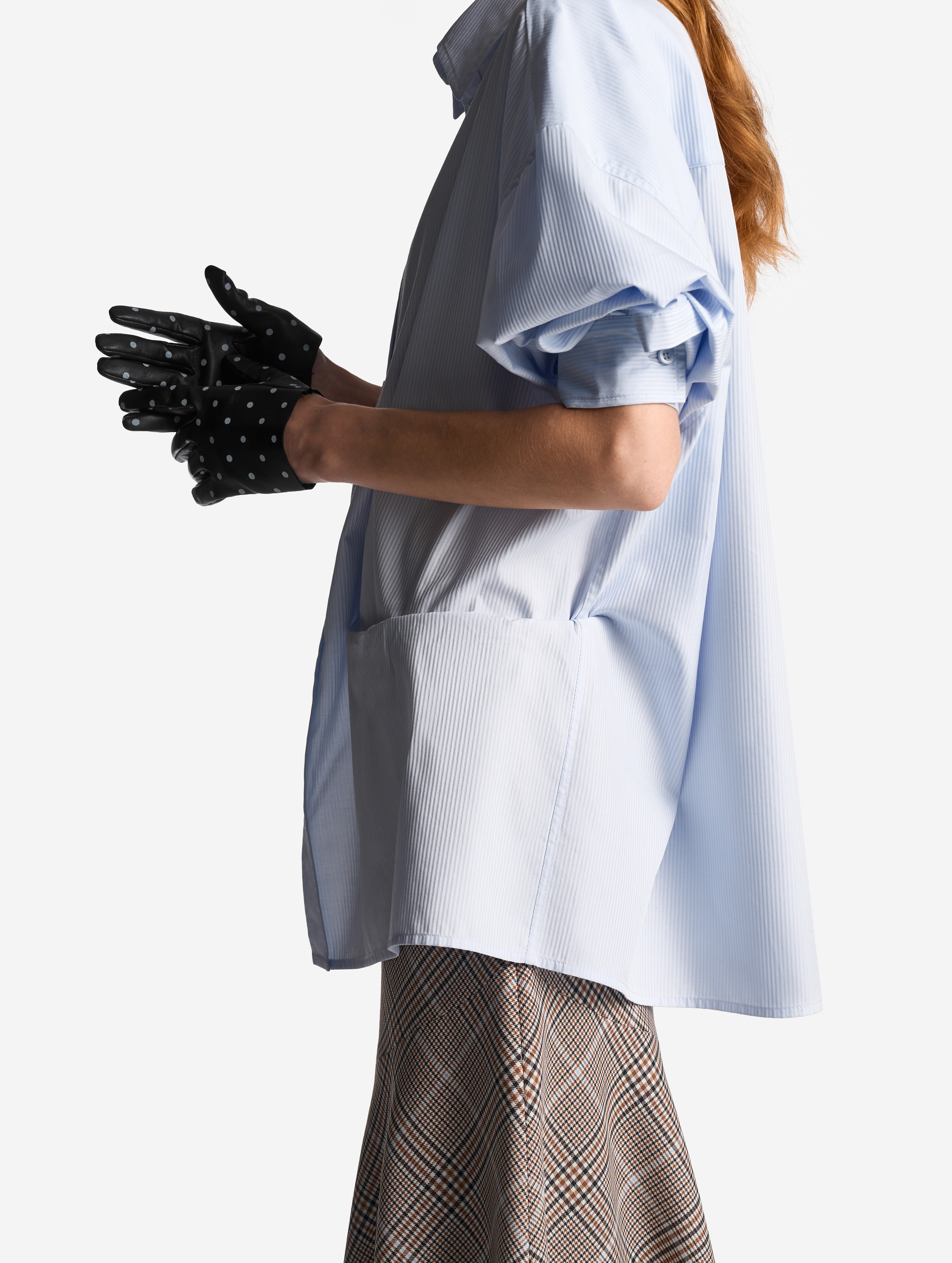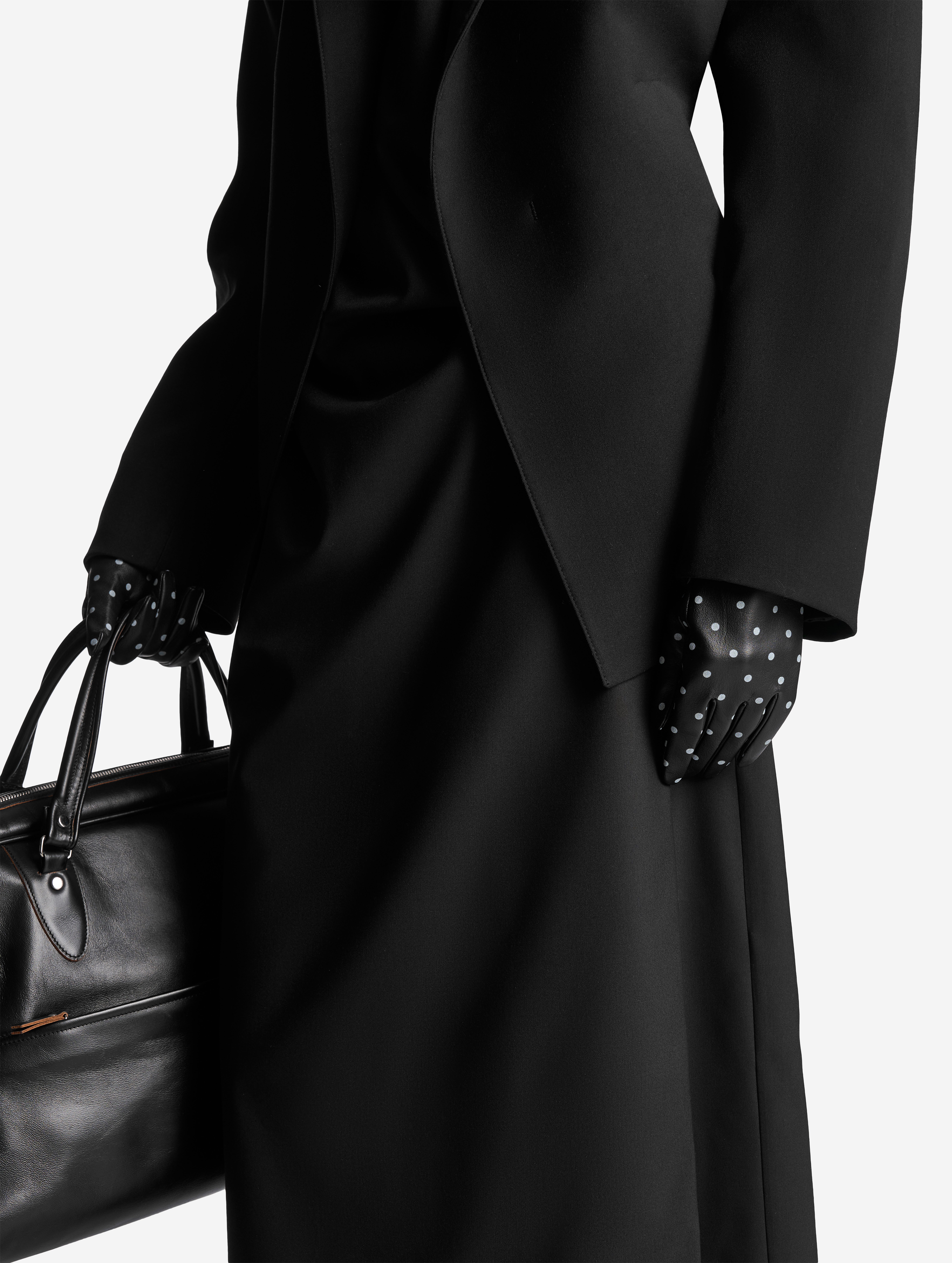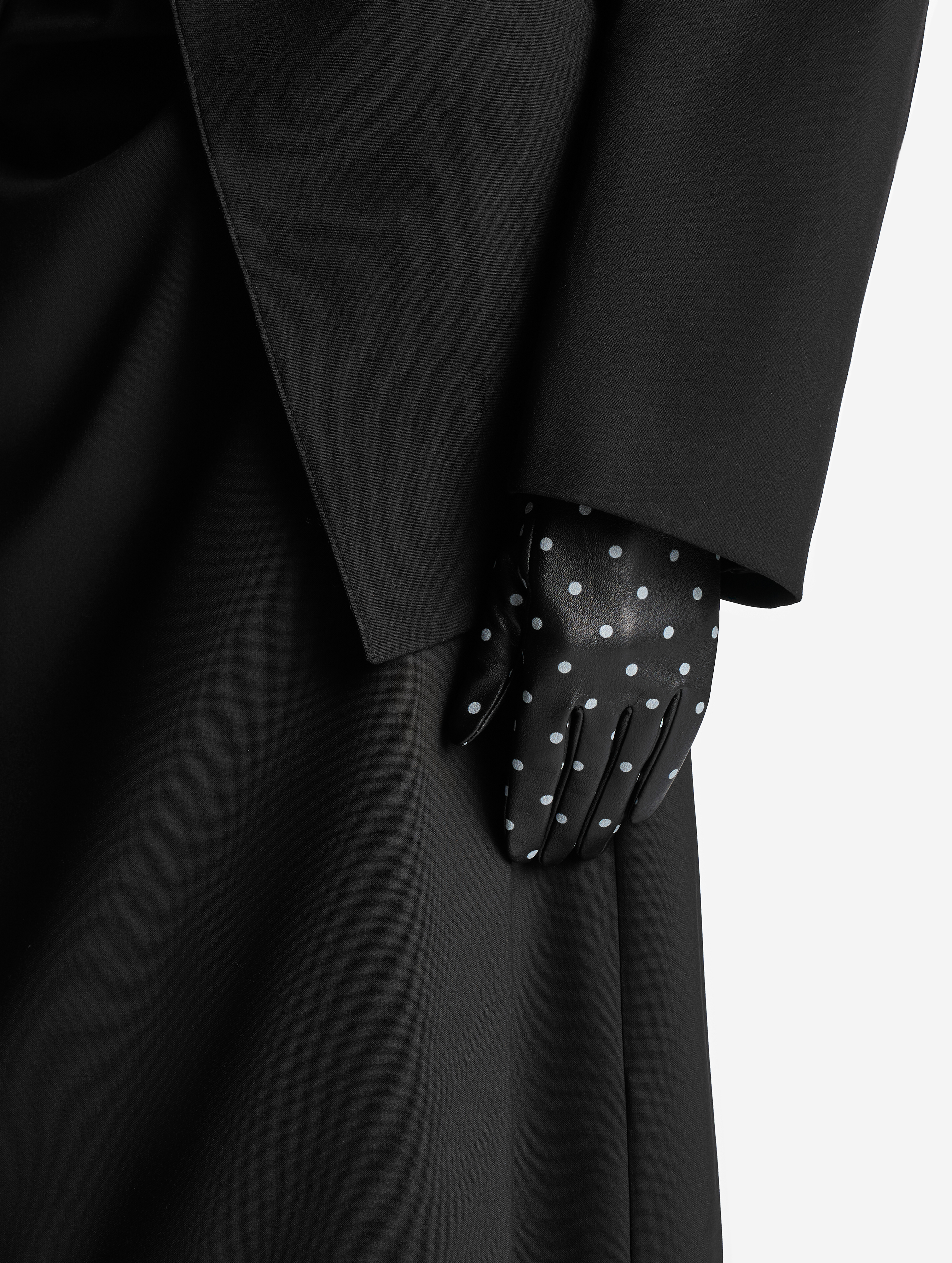 Перчатки выполнены из натуральной кожи. Благодаря анатомическому крою и эластичности материала они комфортно облегают кисть и не стесняют движения пальцев. Укороченная длина создает выразительный акцент и позволяет сочетать аксессуар с рукавами любого фасона.