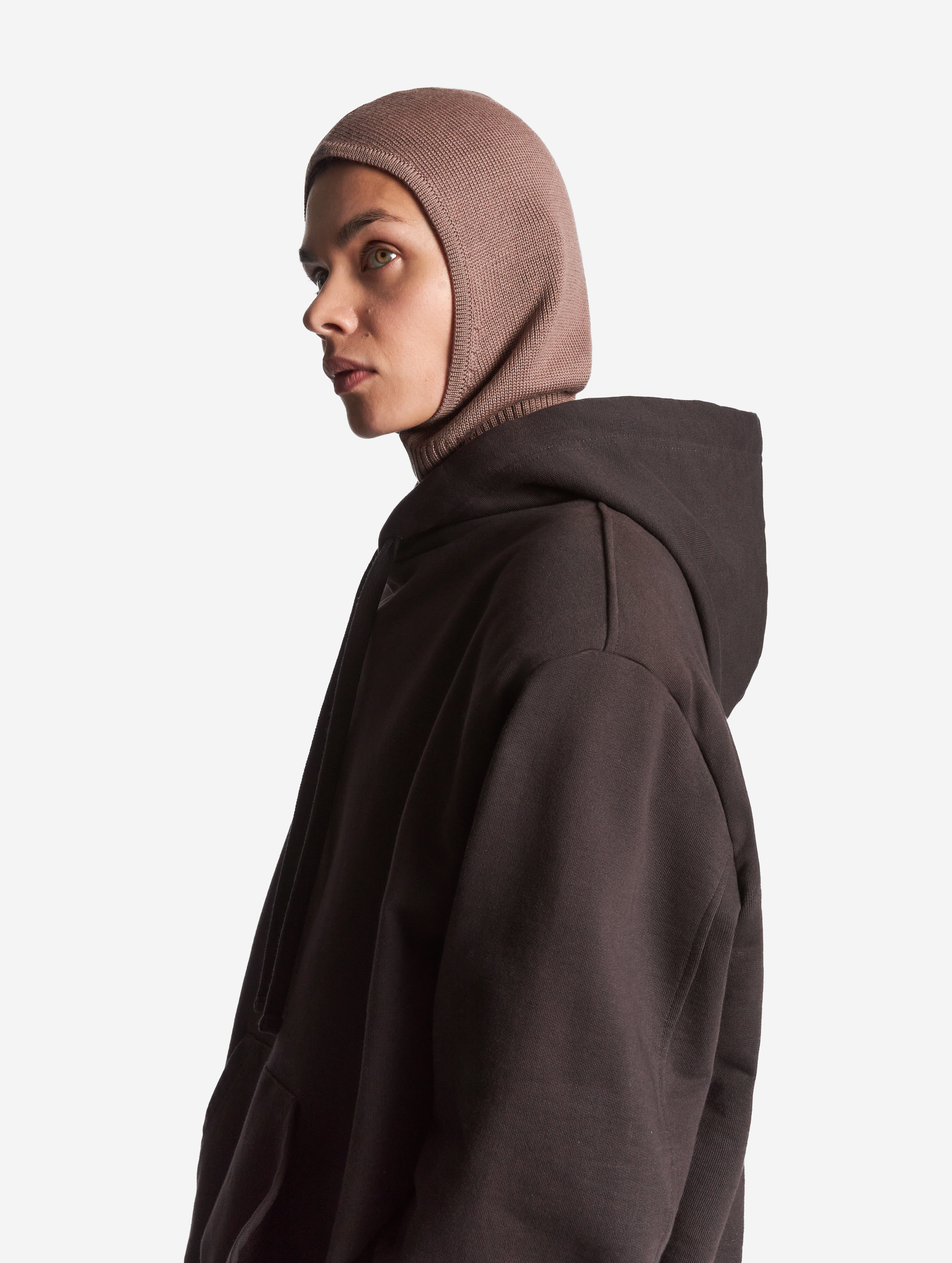 Знаковая модель Ushatava. Капор был разработан как альтернатива шапкам и шарфам. Также он выполняет функцию теплого аксессуара для верхней одежды без воротника и капюшона. Надевается через голову.